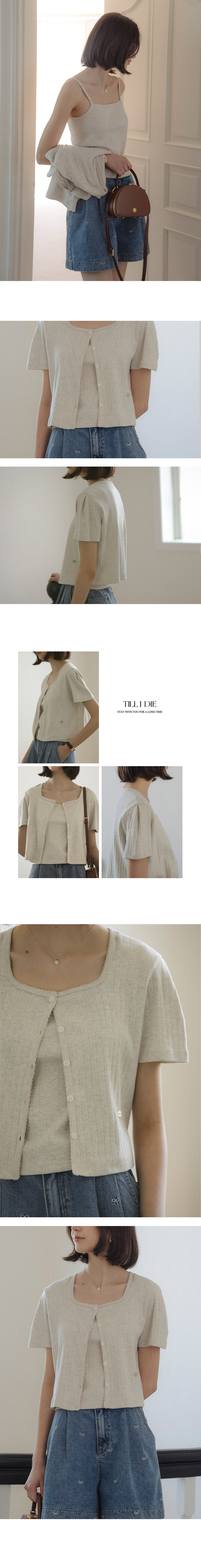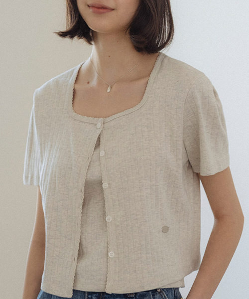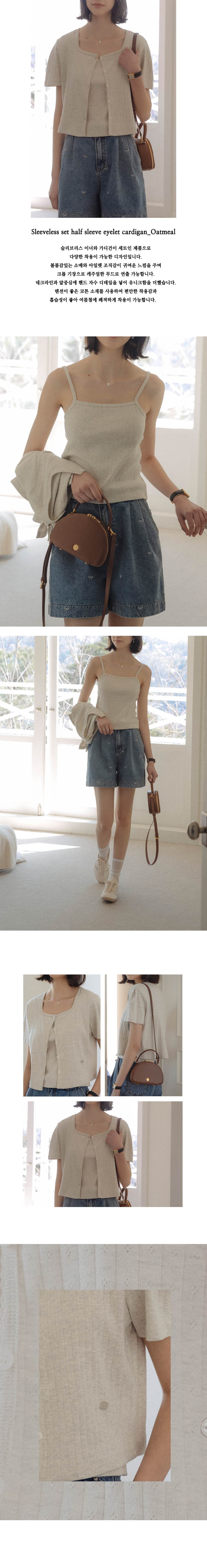 Sleeveless set half sleeve eyelet cardigan_Oatmeal