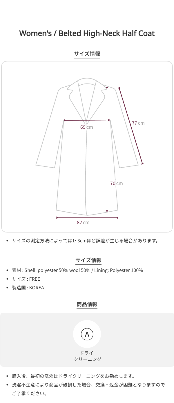Belted High-Neck Half Coat [Charcoal]