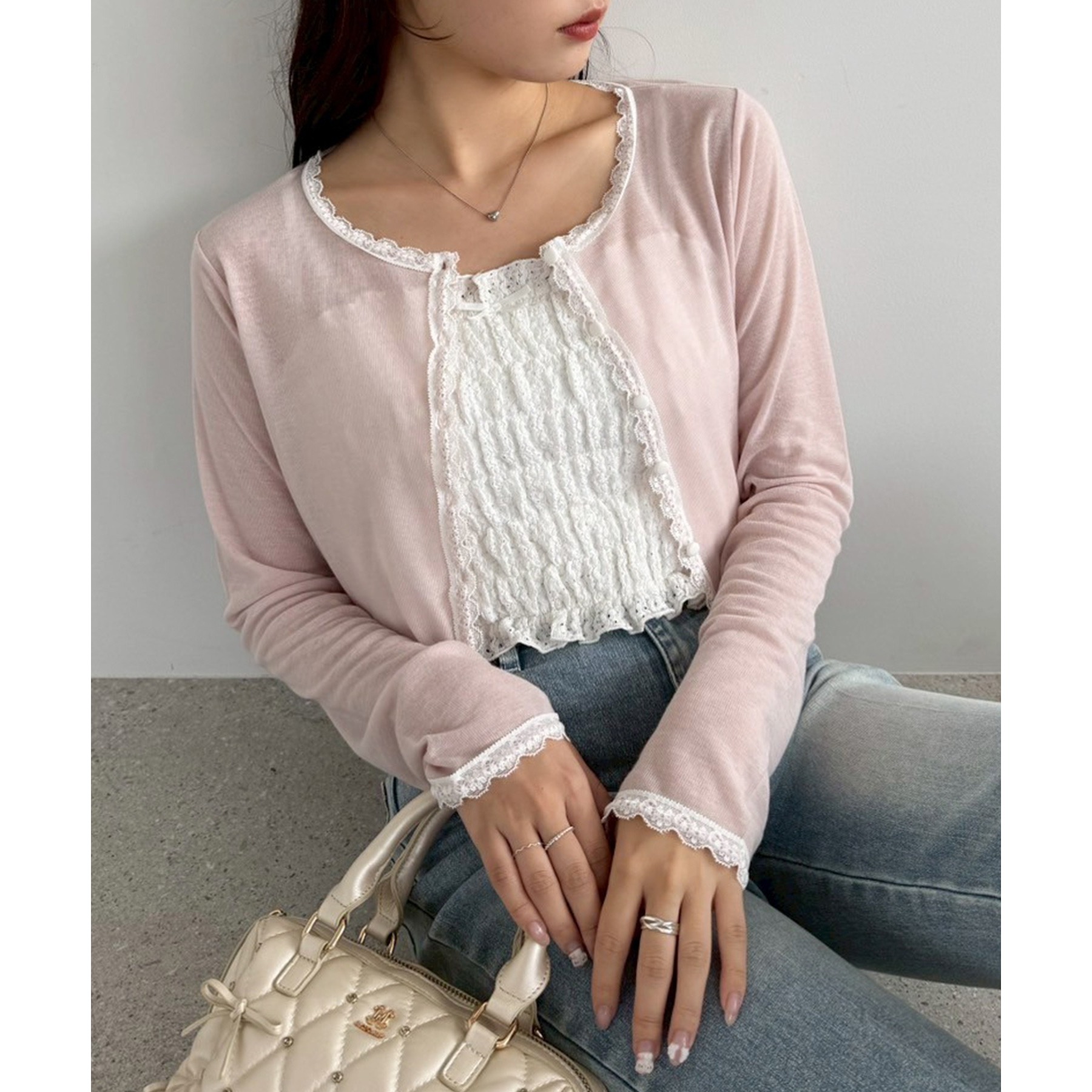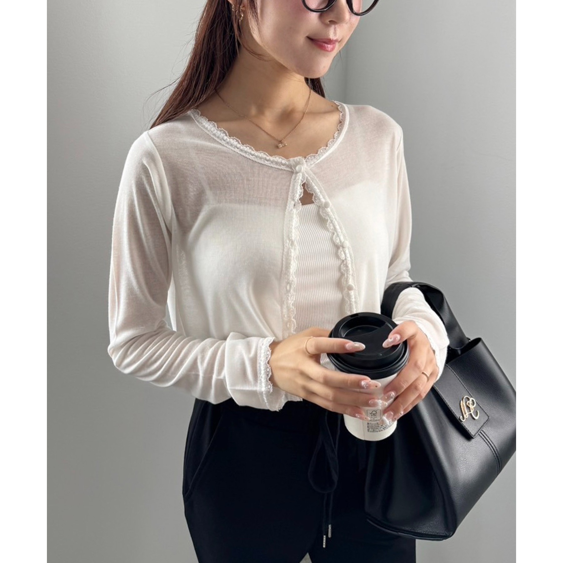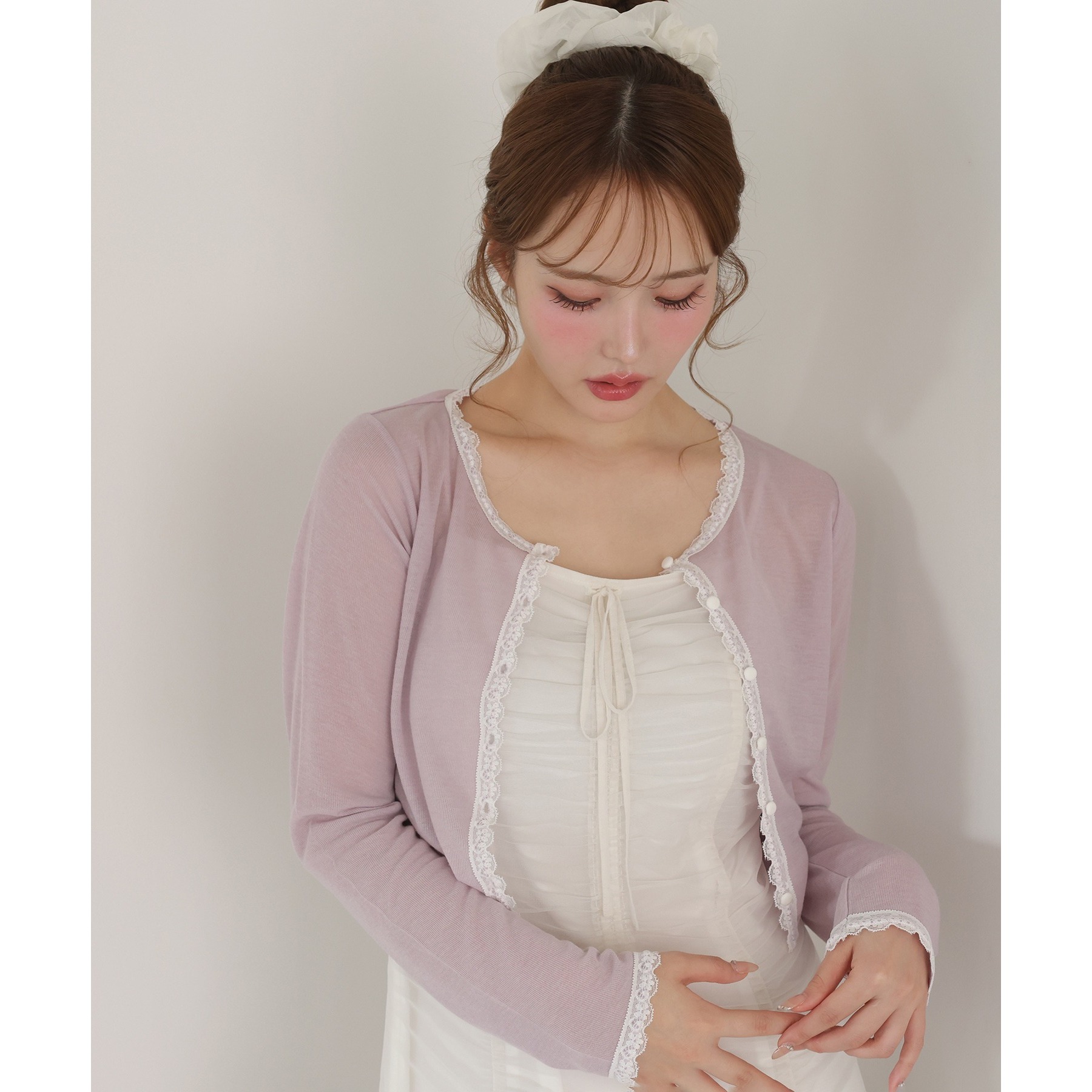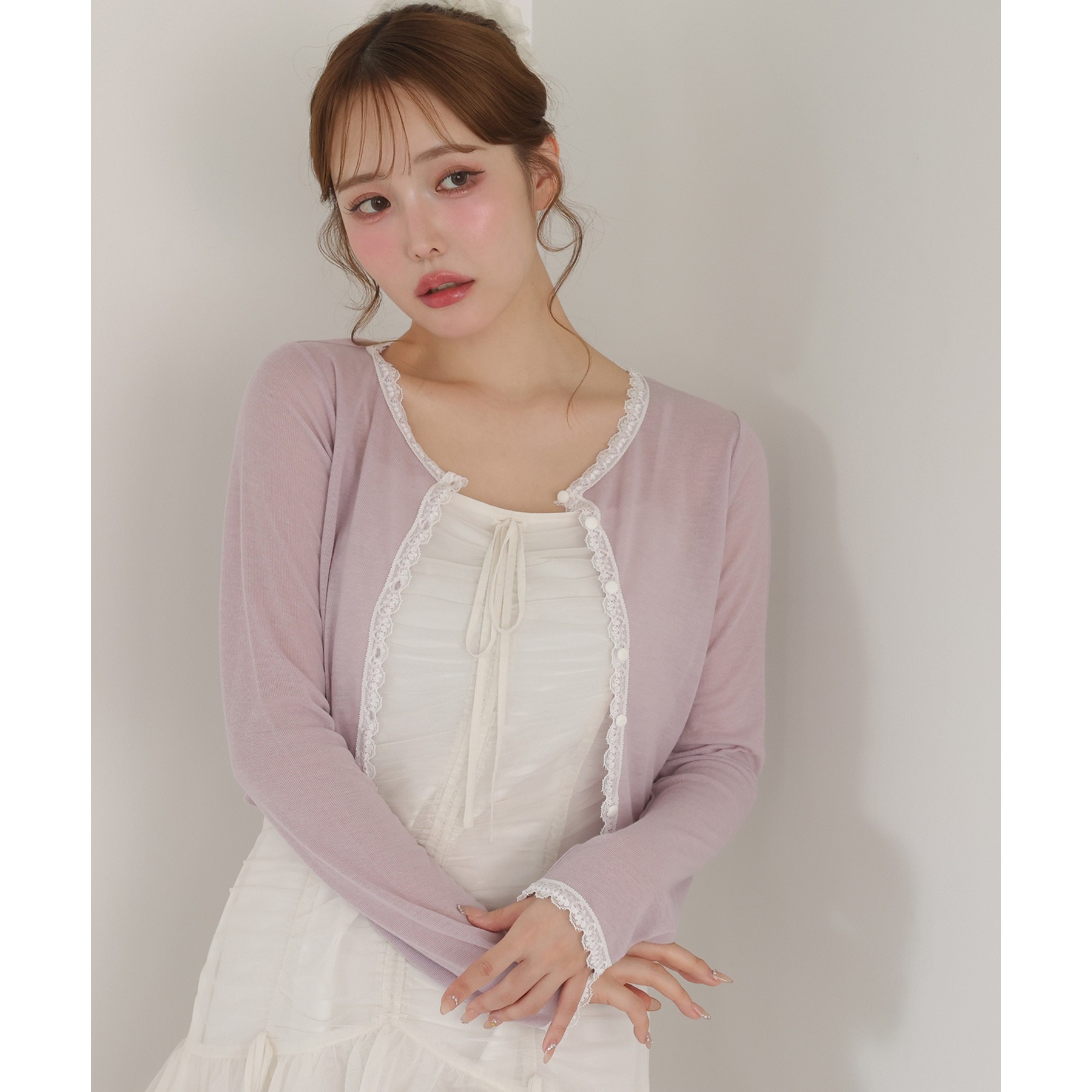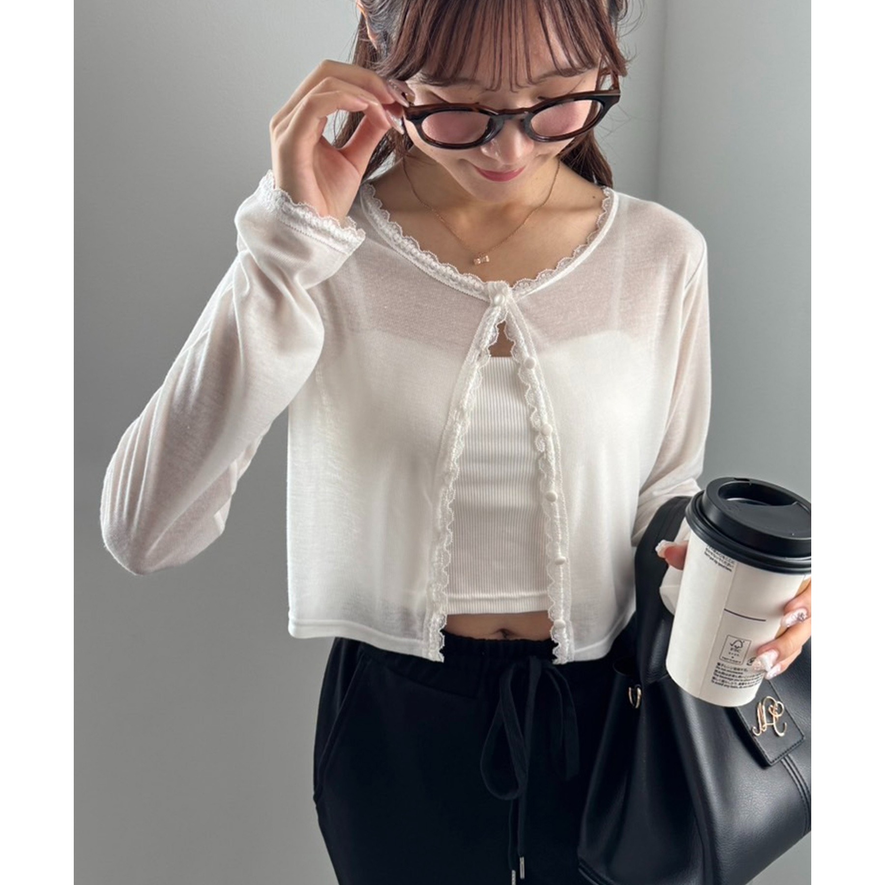 ショート丈でこなれ感があり、レースが華やかさをプラスしてくれるカット素材のカーディガン