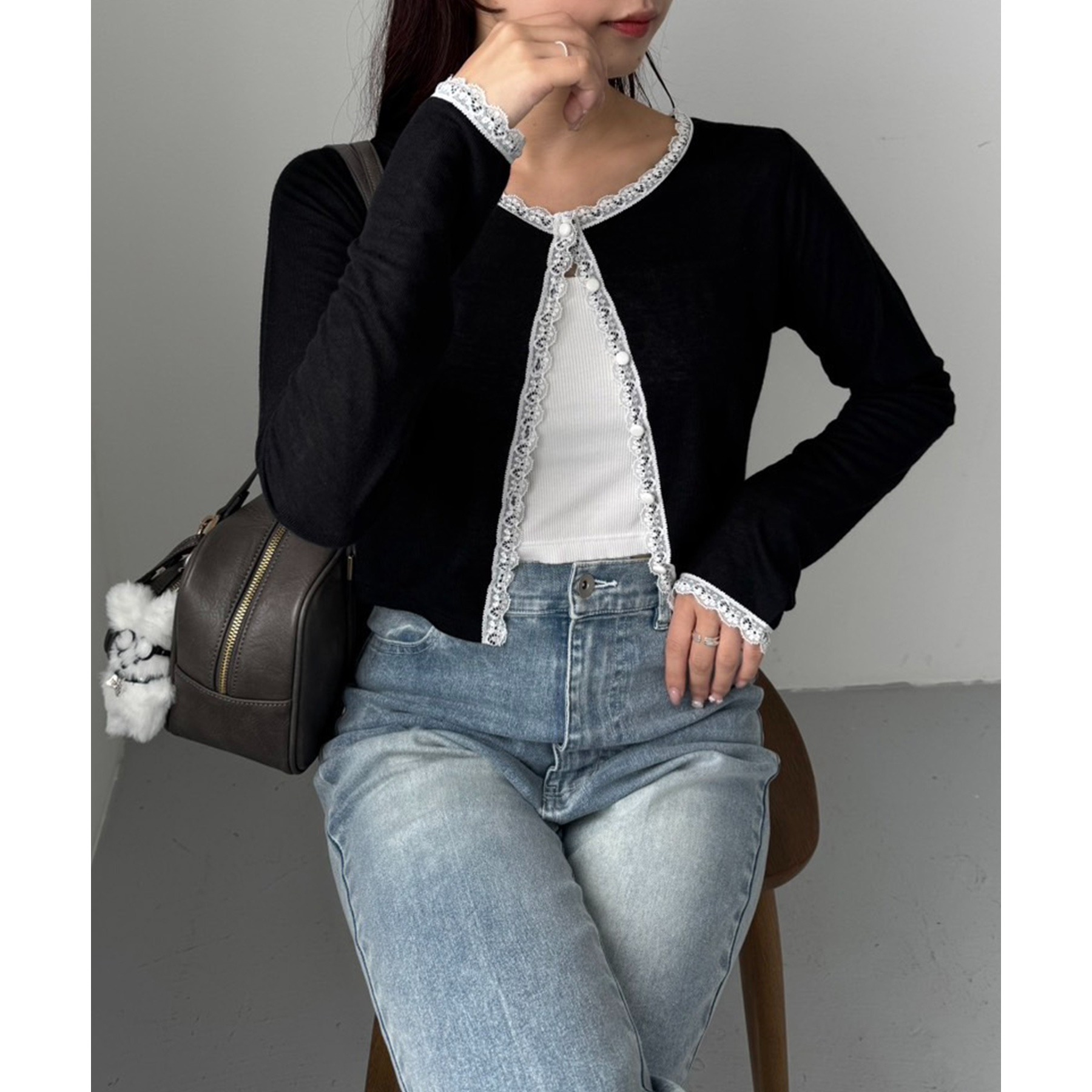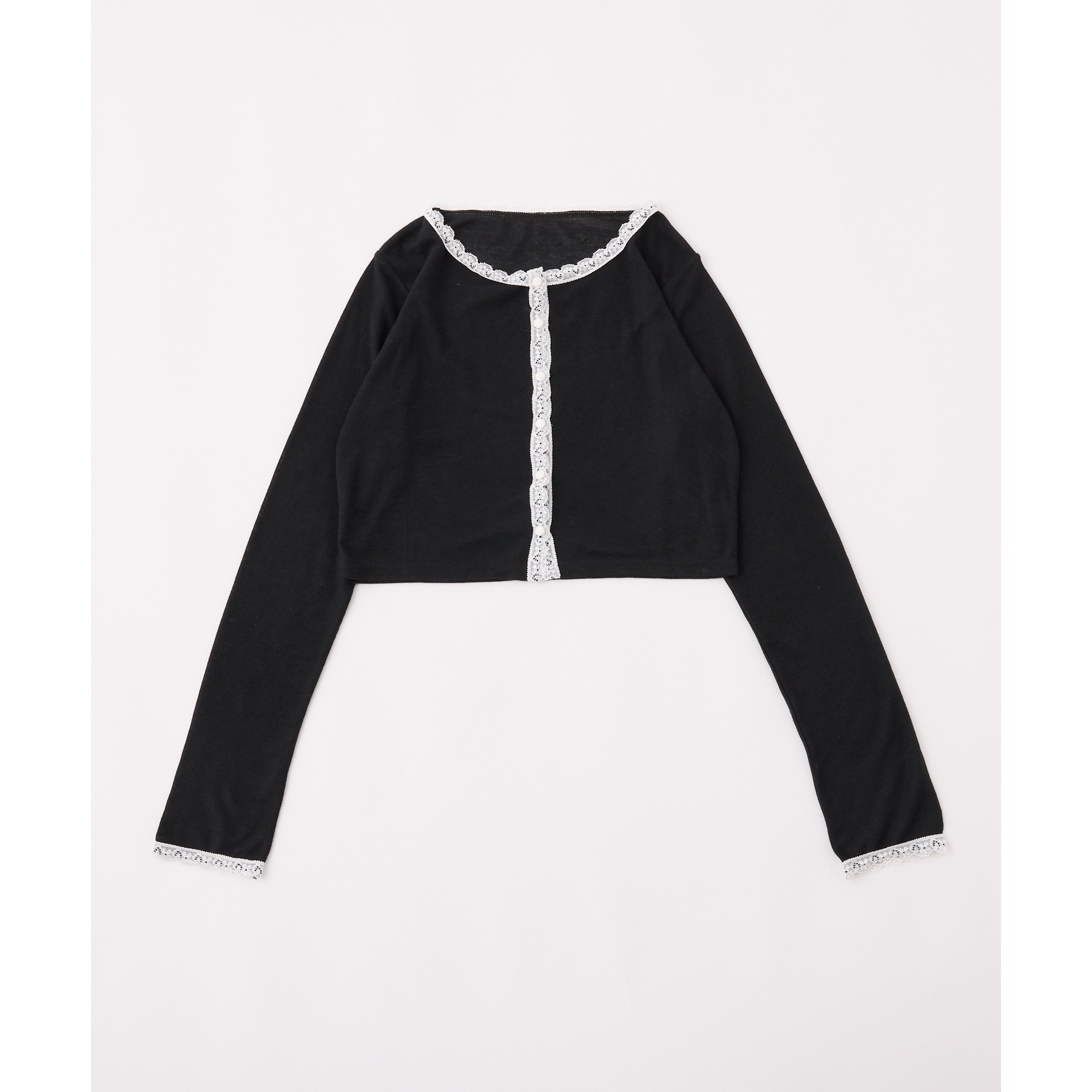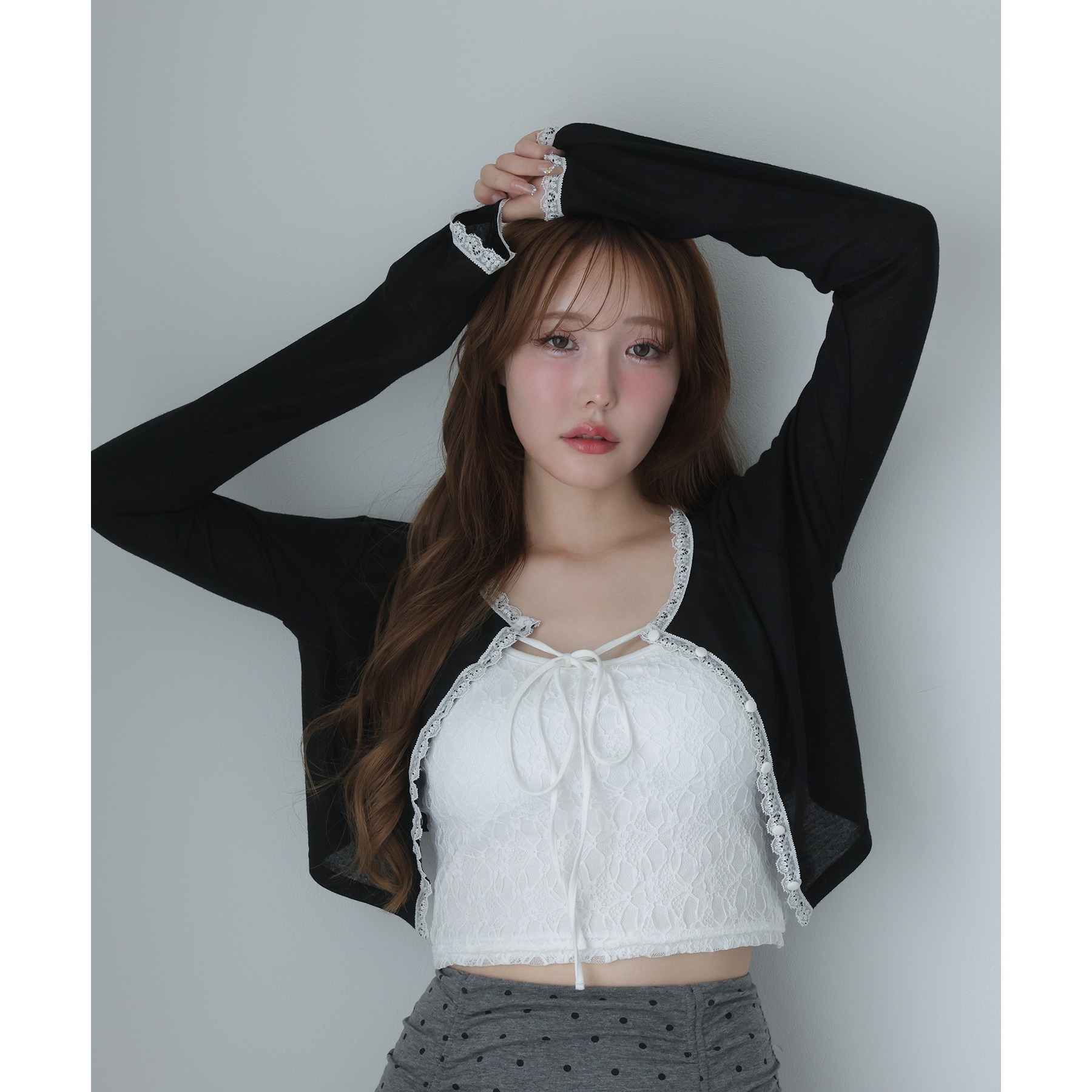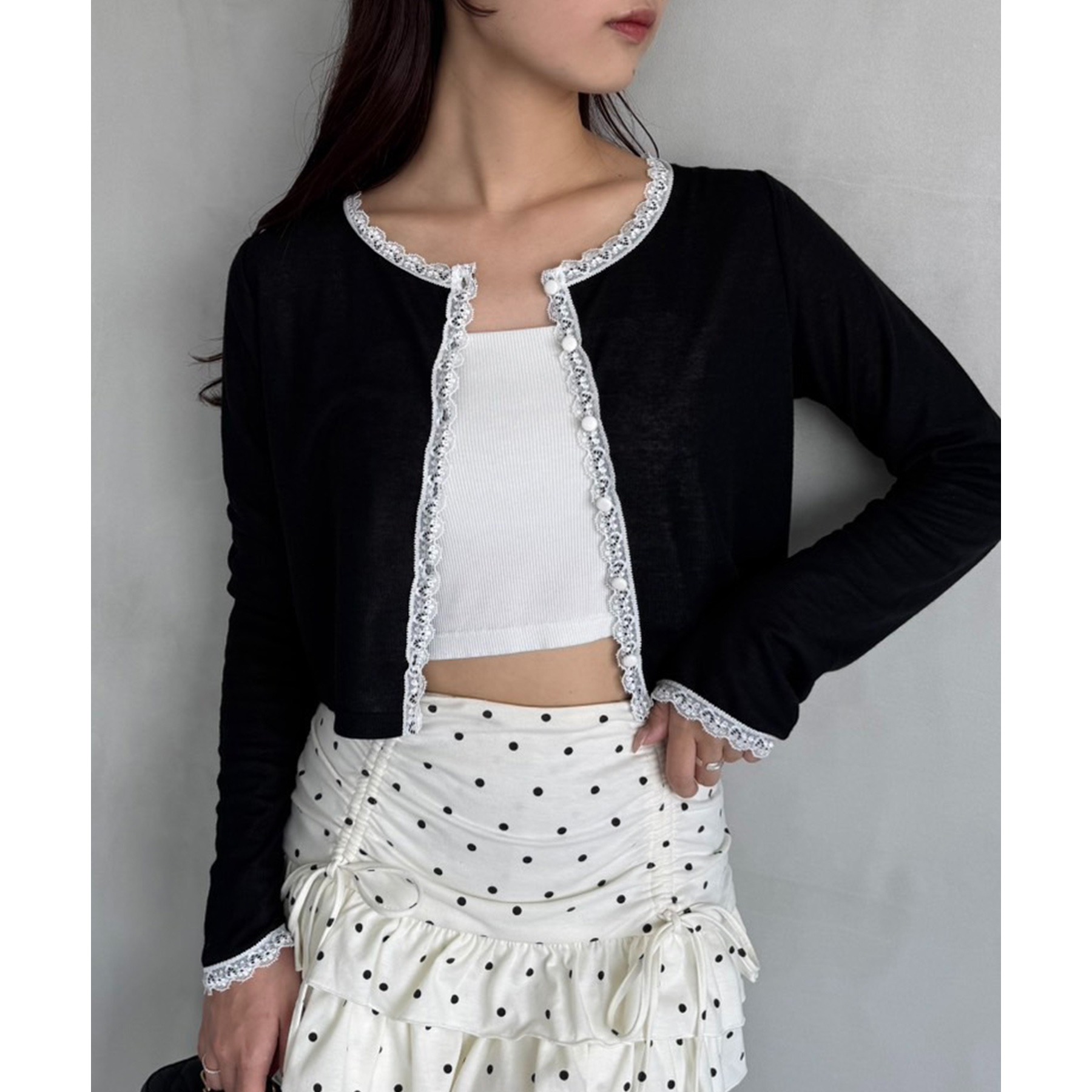 ショート丈でこなれ感があり、レースが華やかさをプラスしてくれるカット素材のカーディガン