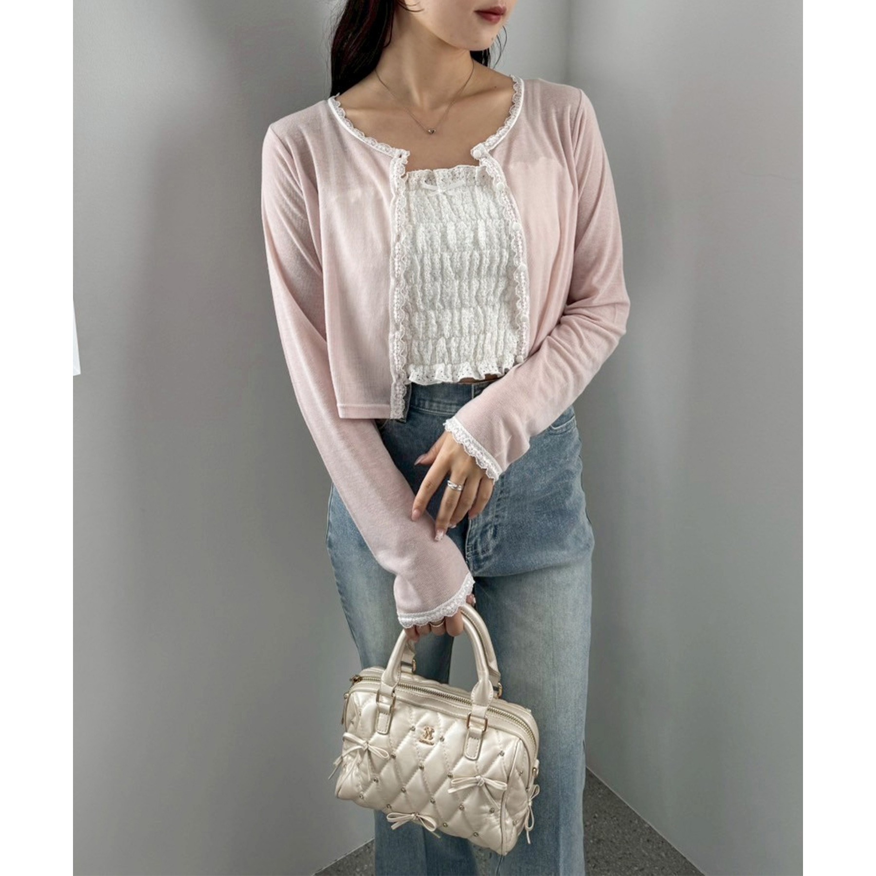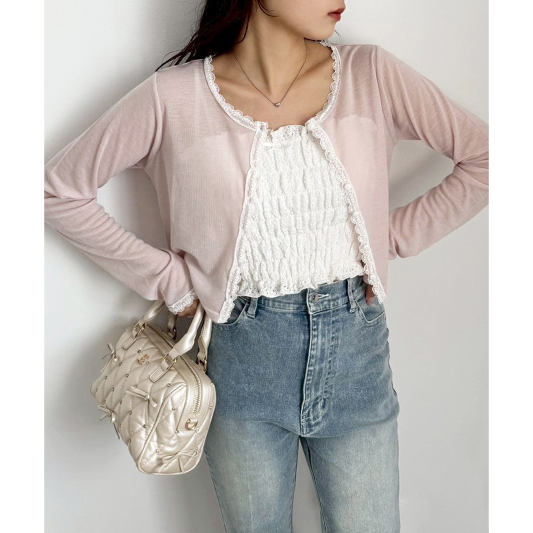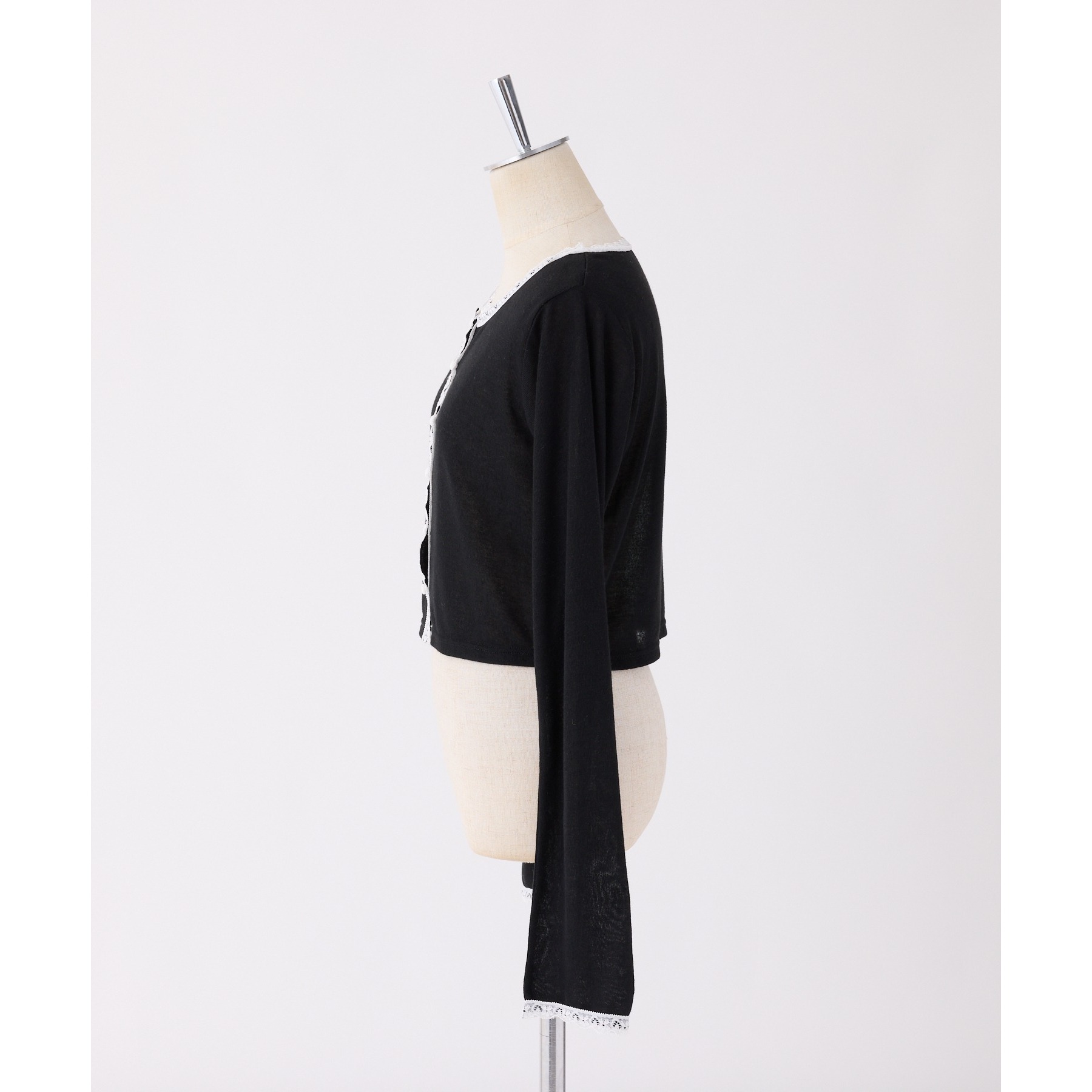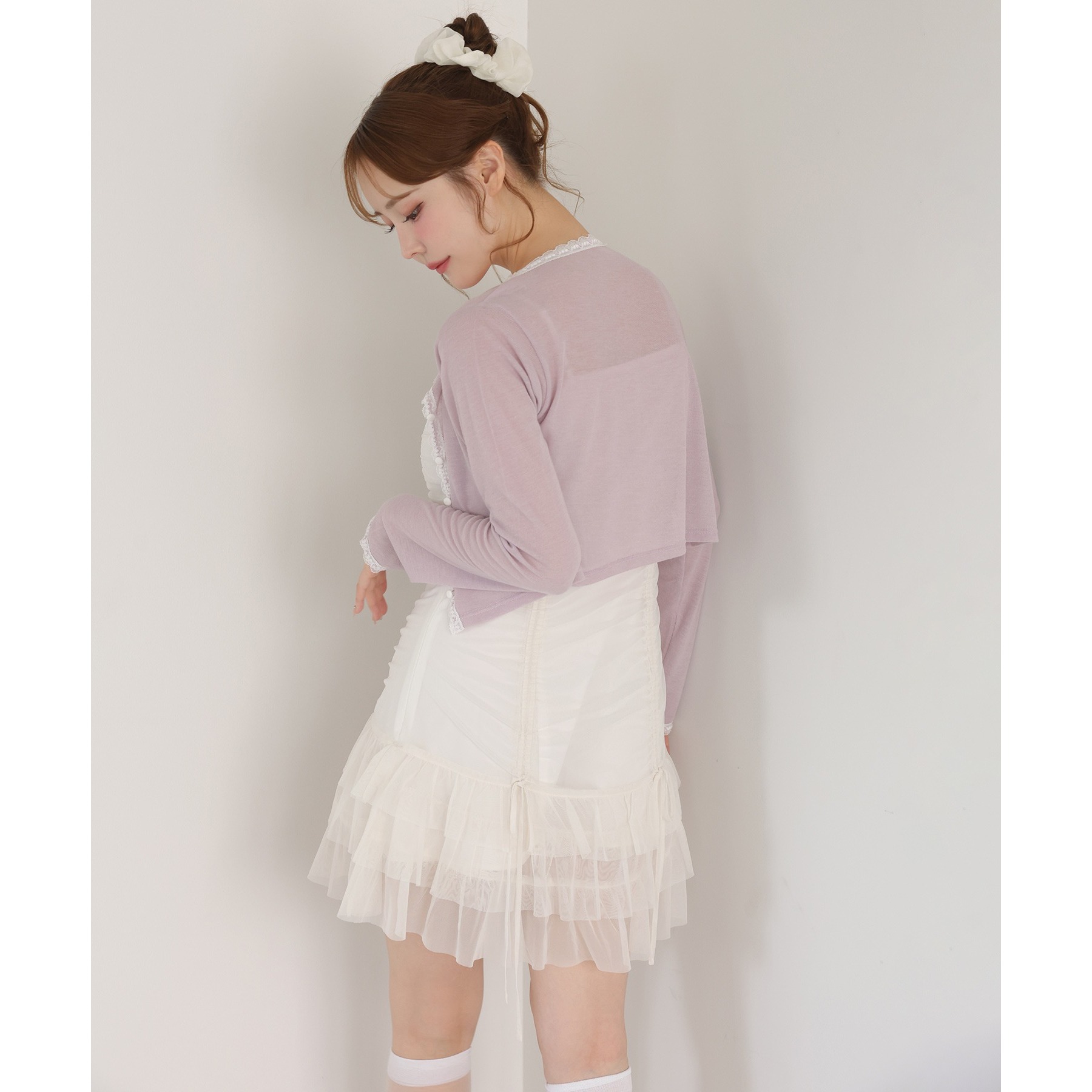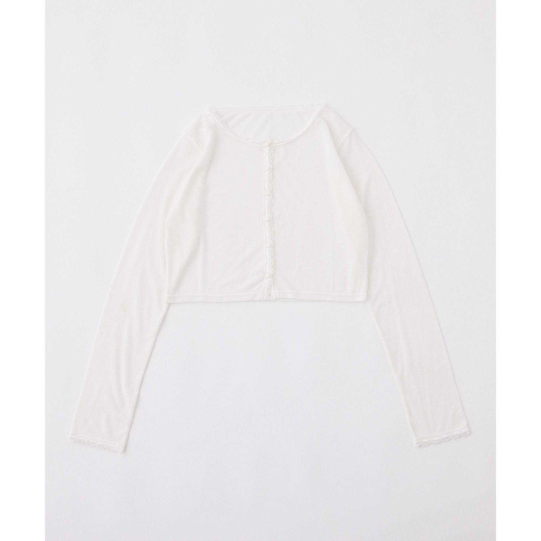 ショート丈でこなれ感があり、レースが華やかさをプラスしてくれるカット素材のカーディガン