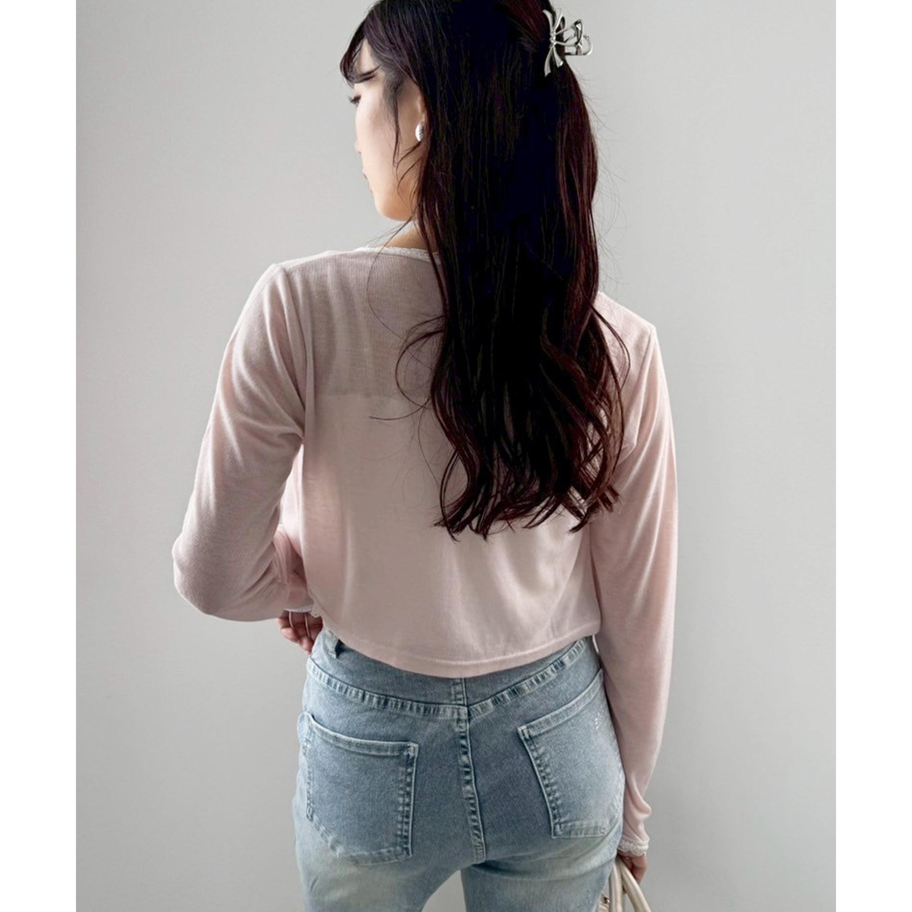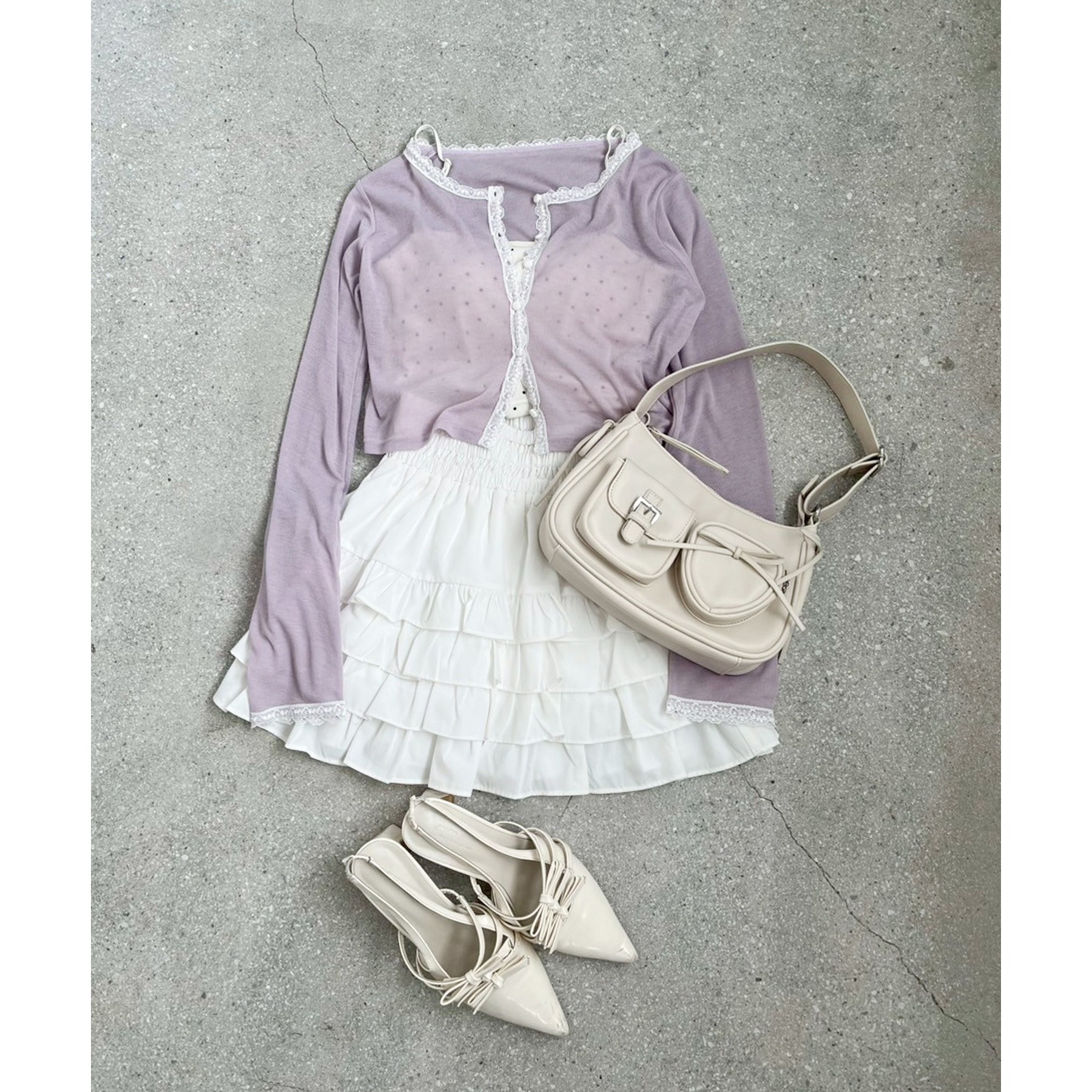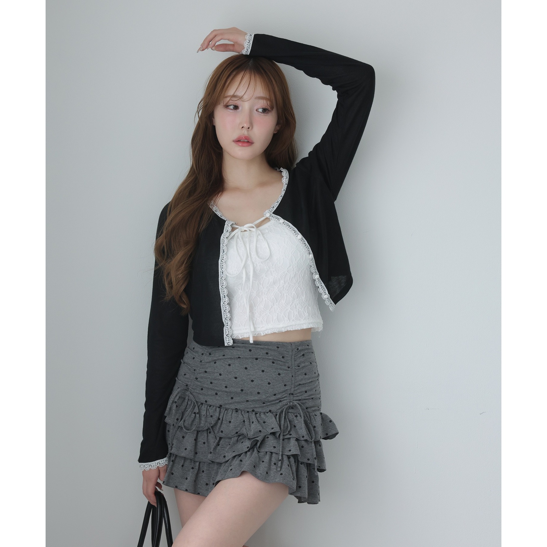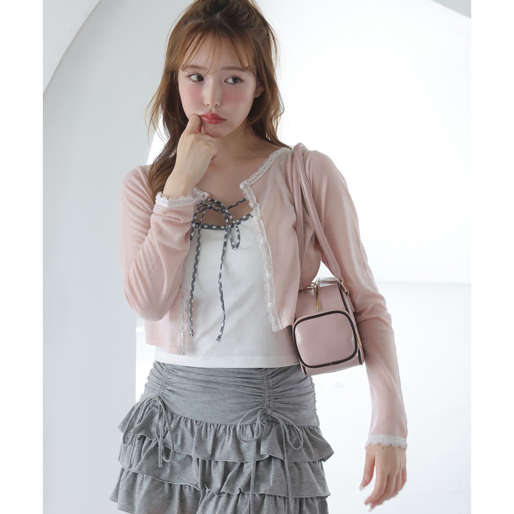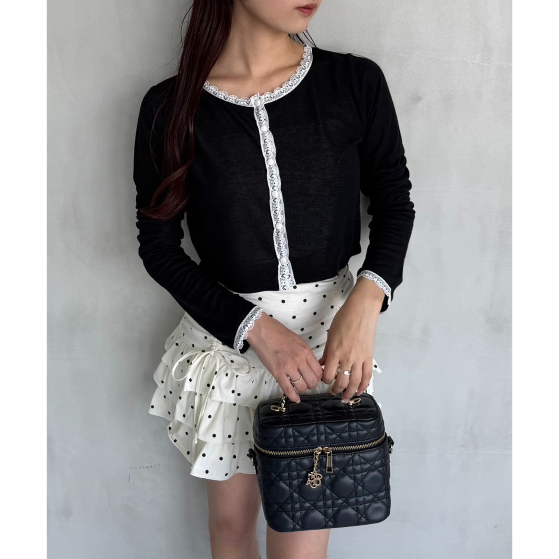 ショート丈でこなれ感があり、レースが華やかさをプラスしてくれるカット素材のカーディガン