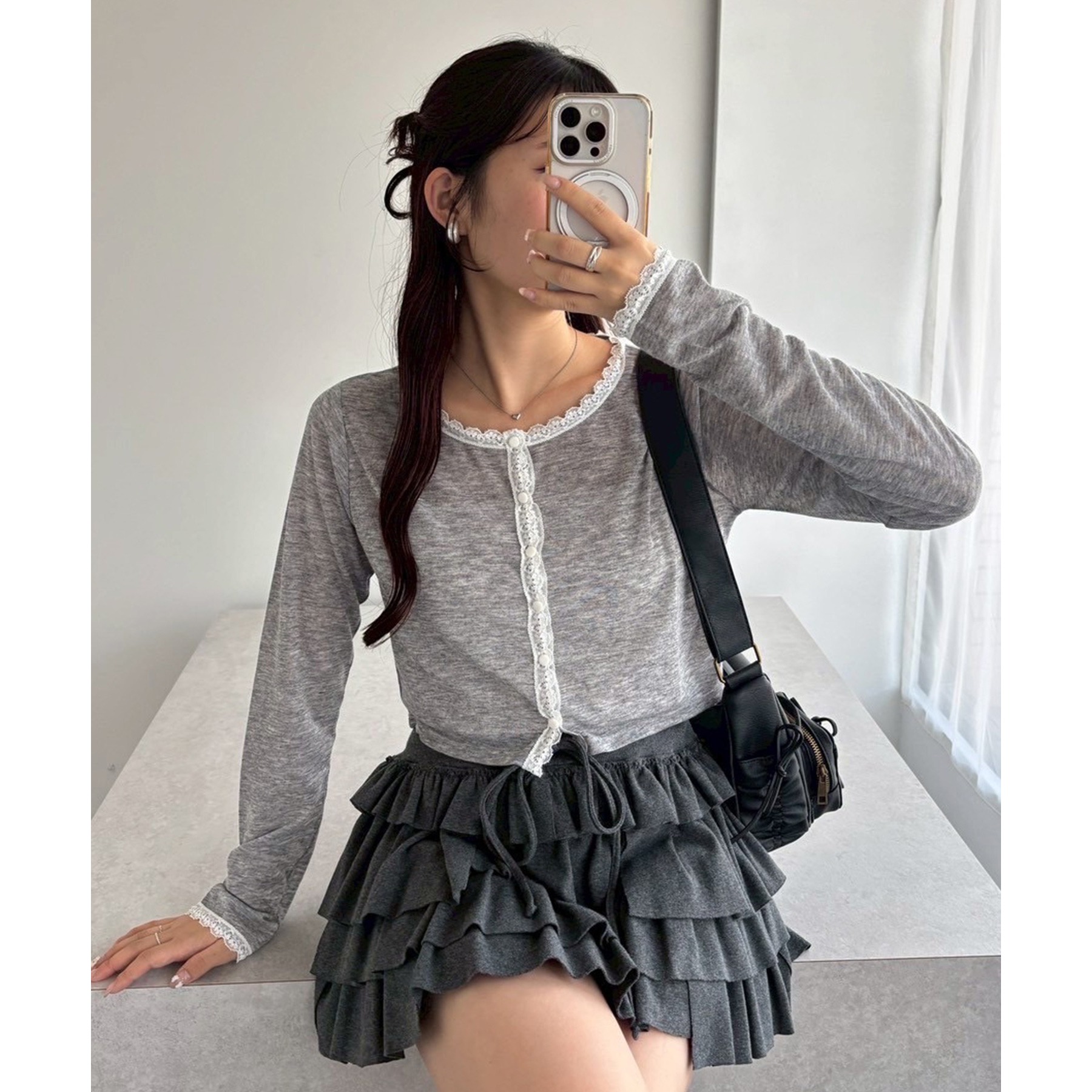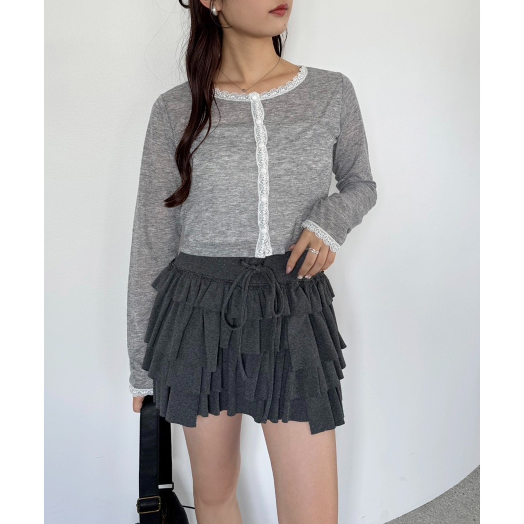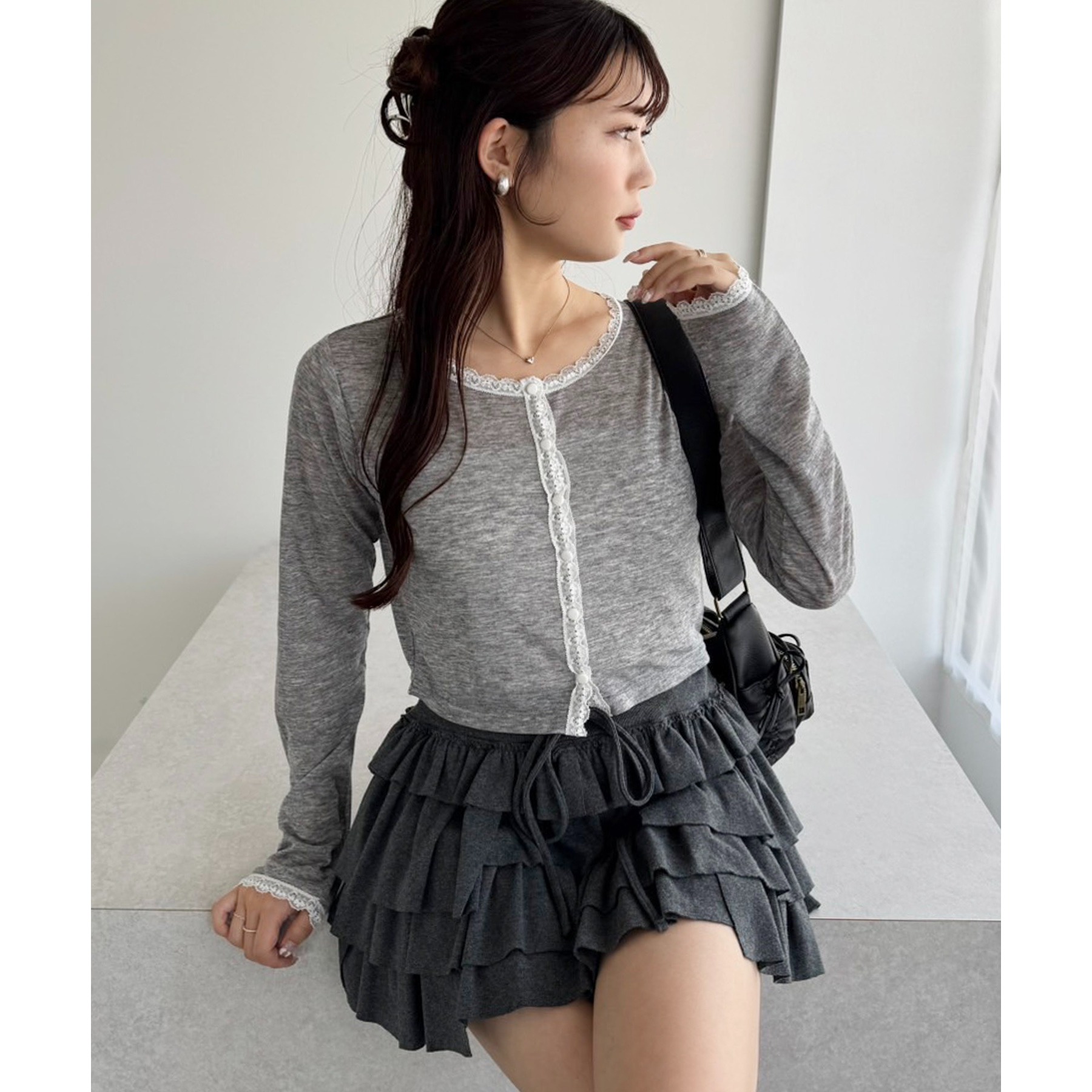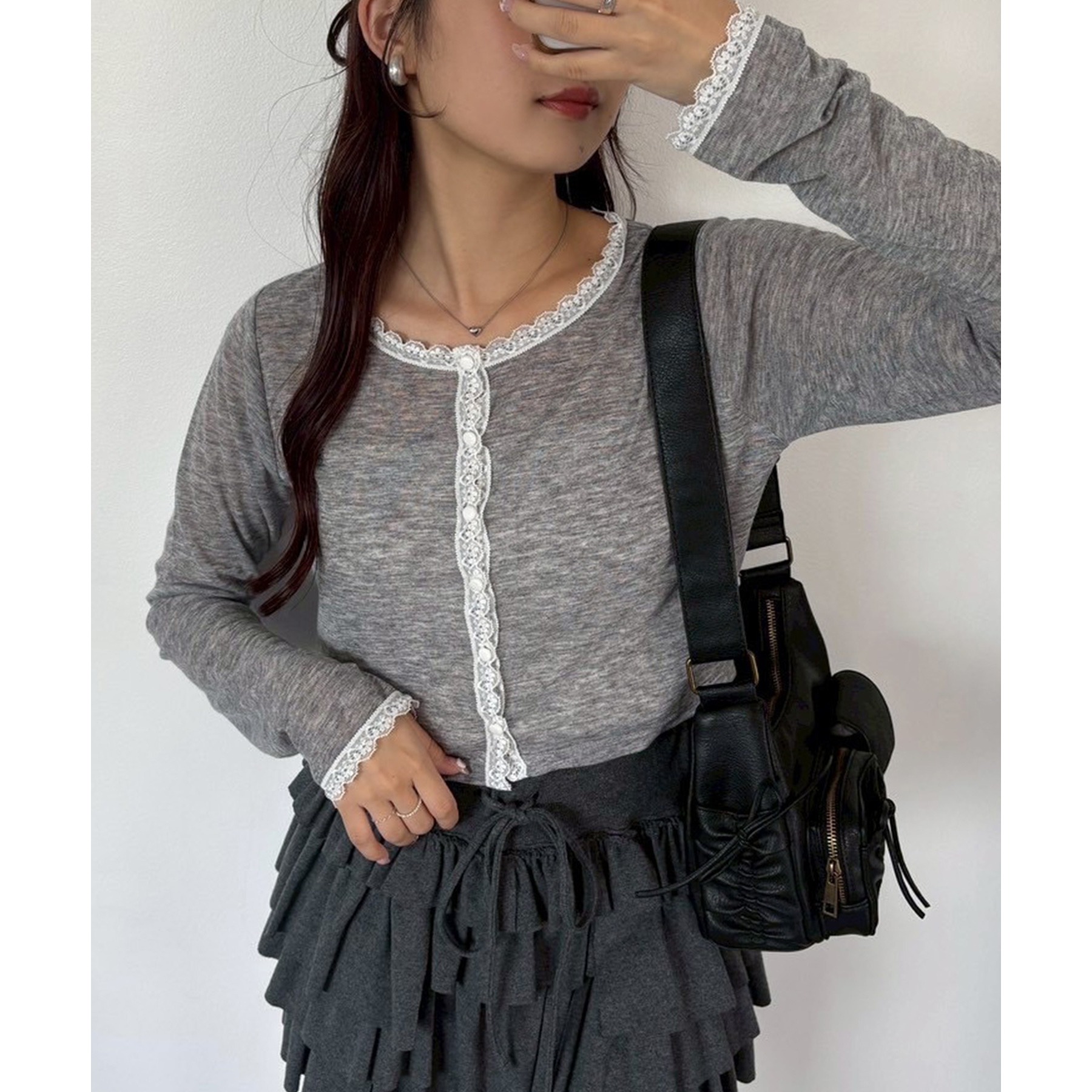 ショート丈でこなれ感があり、レースが華やかさをプラスしてくれるカット素材のカーディガン
