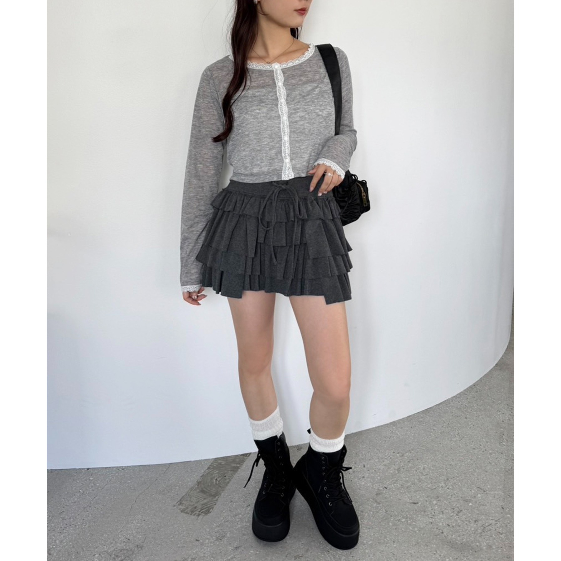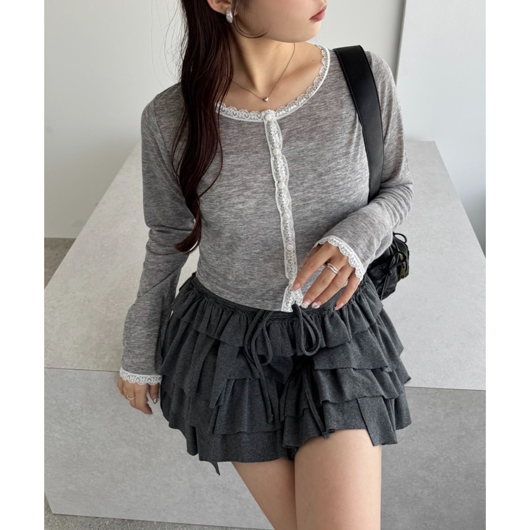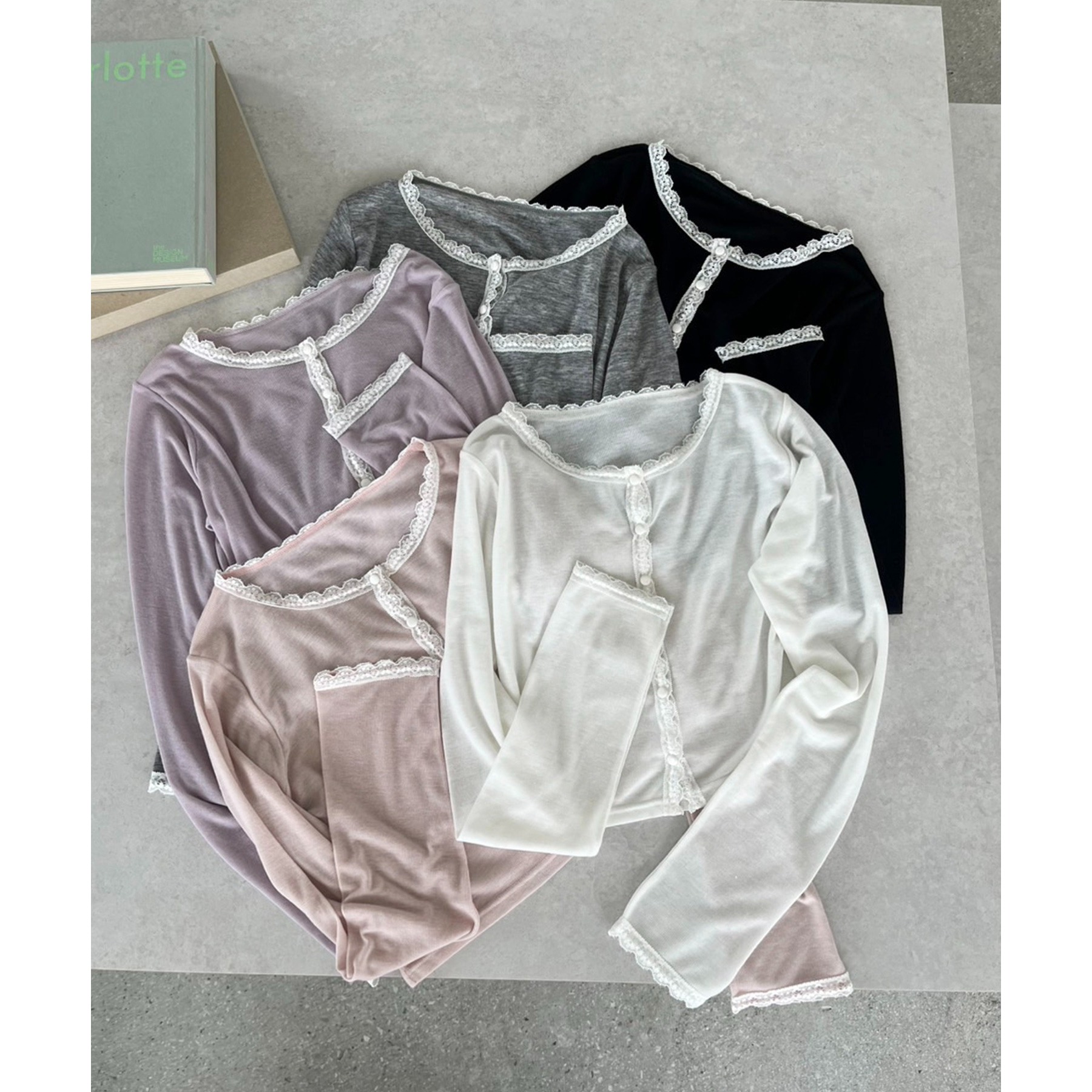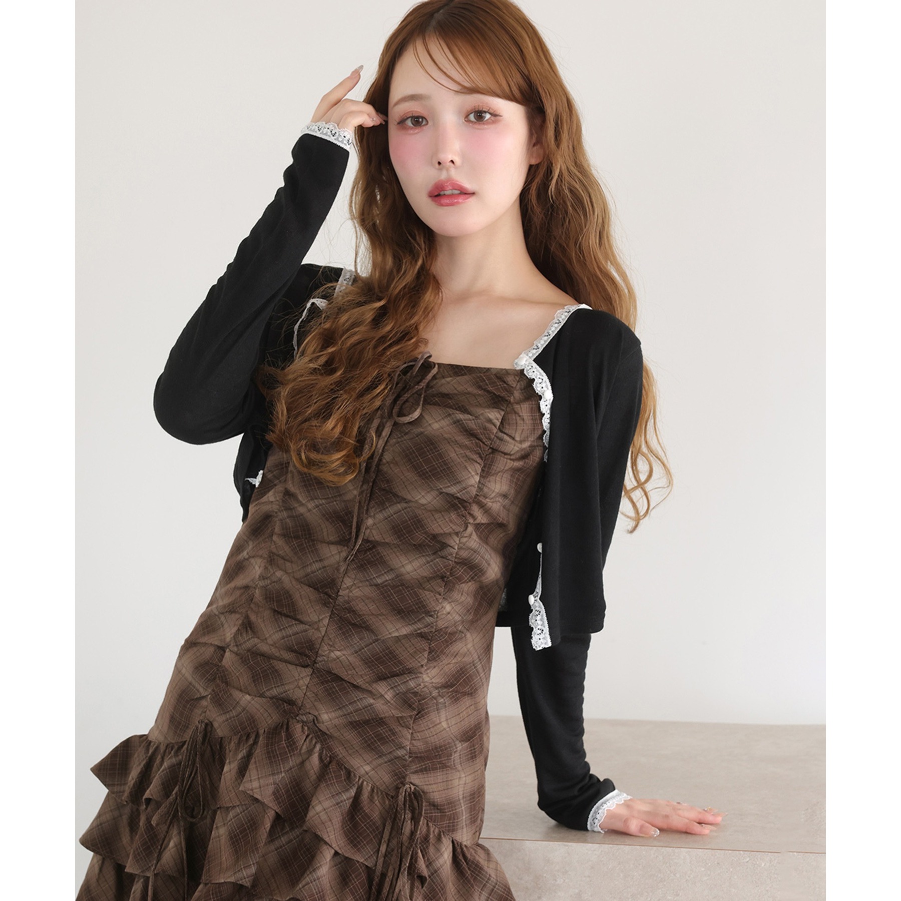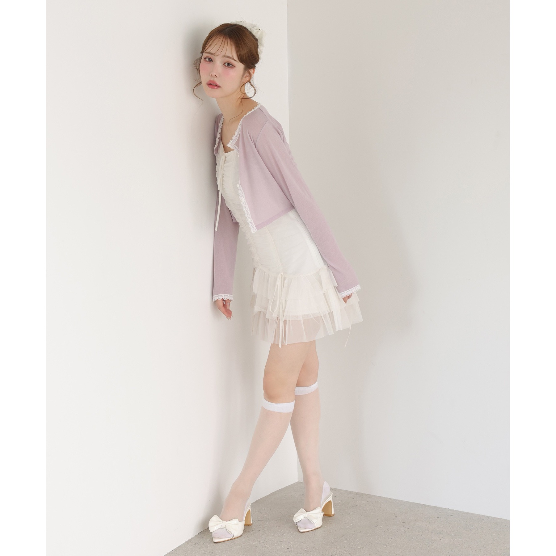ショート丈でこなれ感があり、レースが華やかさをプラスしてくれるカット素材のカーディガン