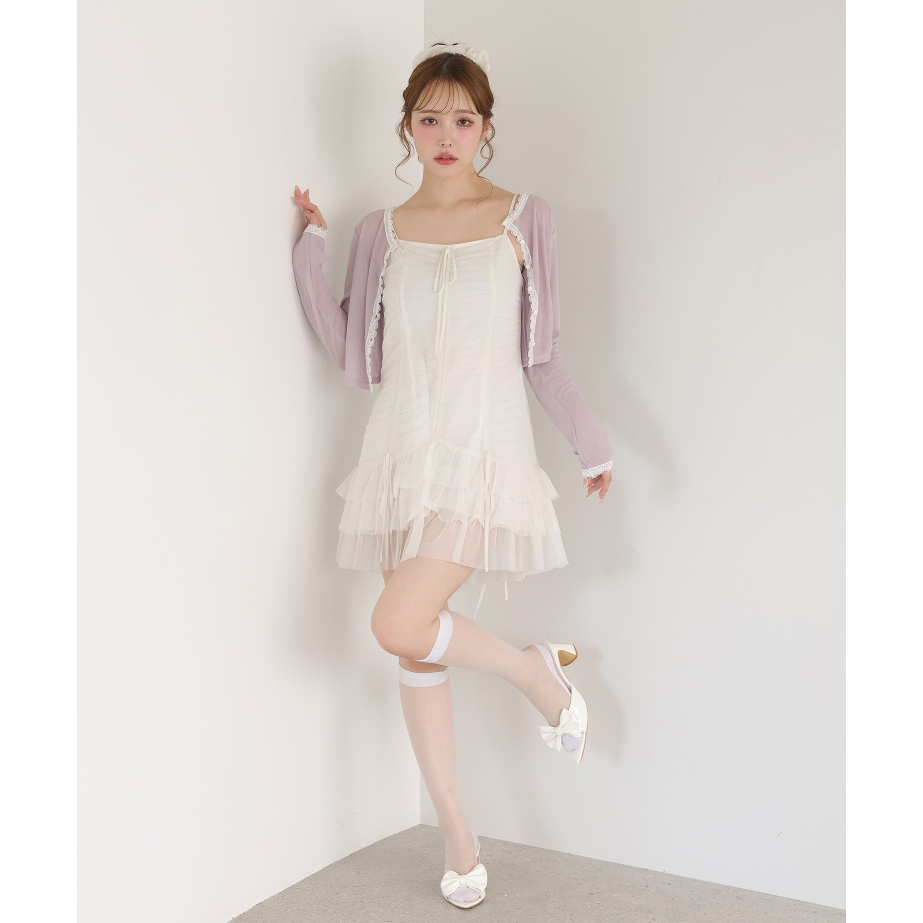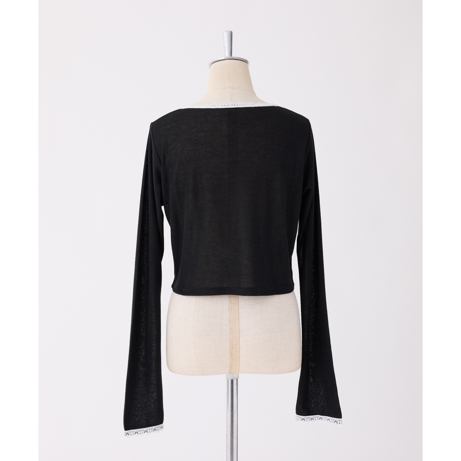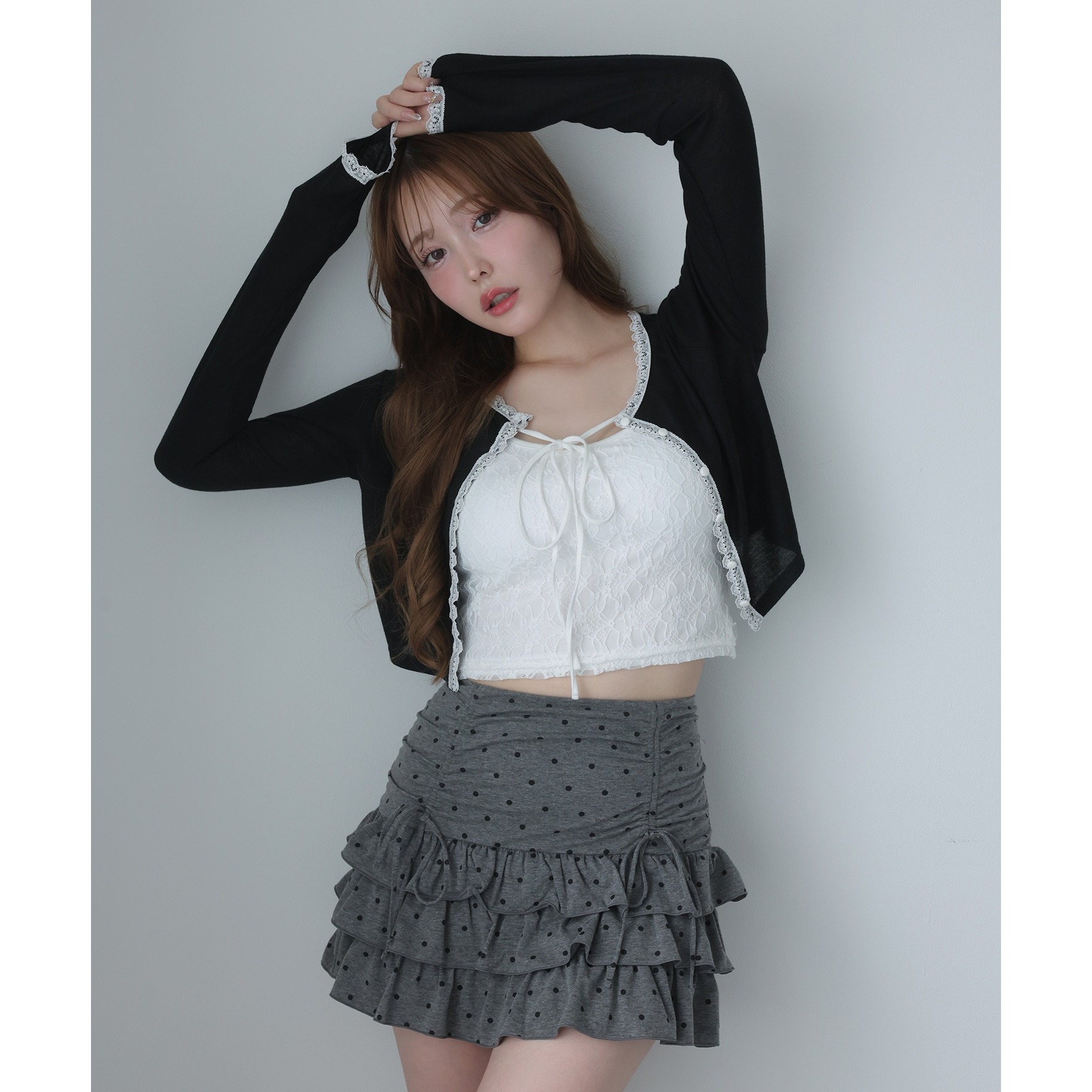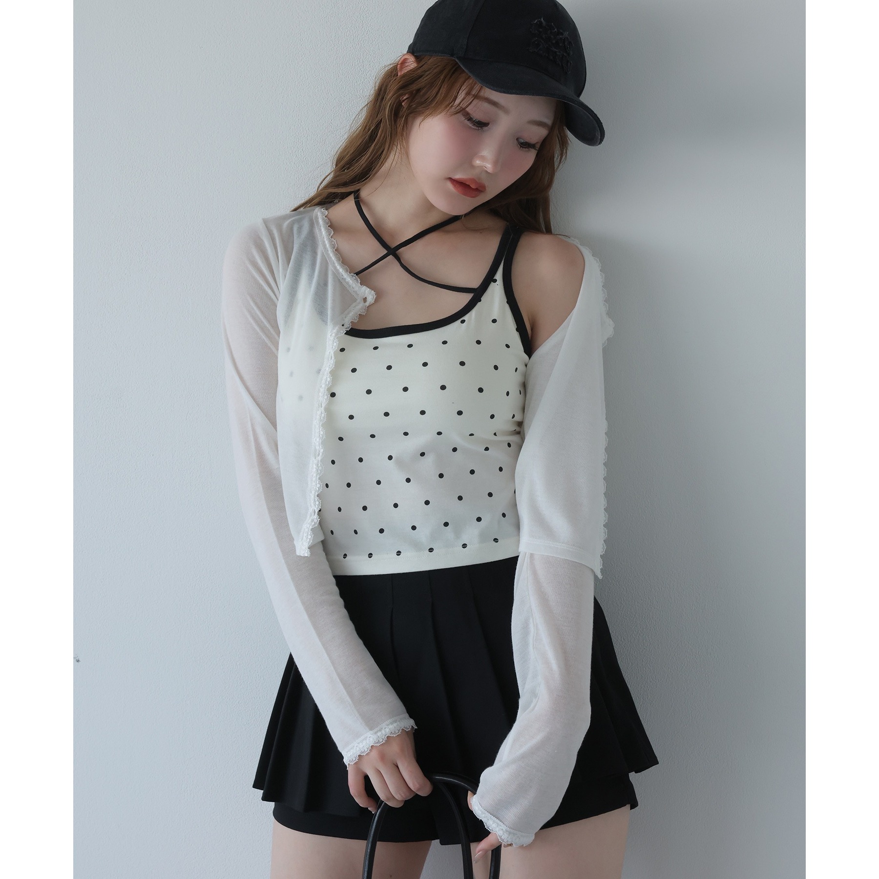 ボレロとしてはもちろん、クロップド丈のトップスとしても着られるマルチなアイテムです。