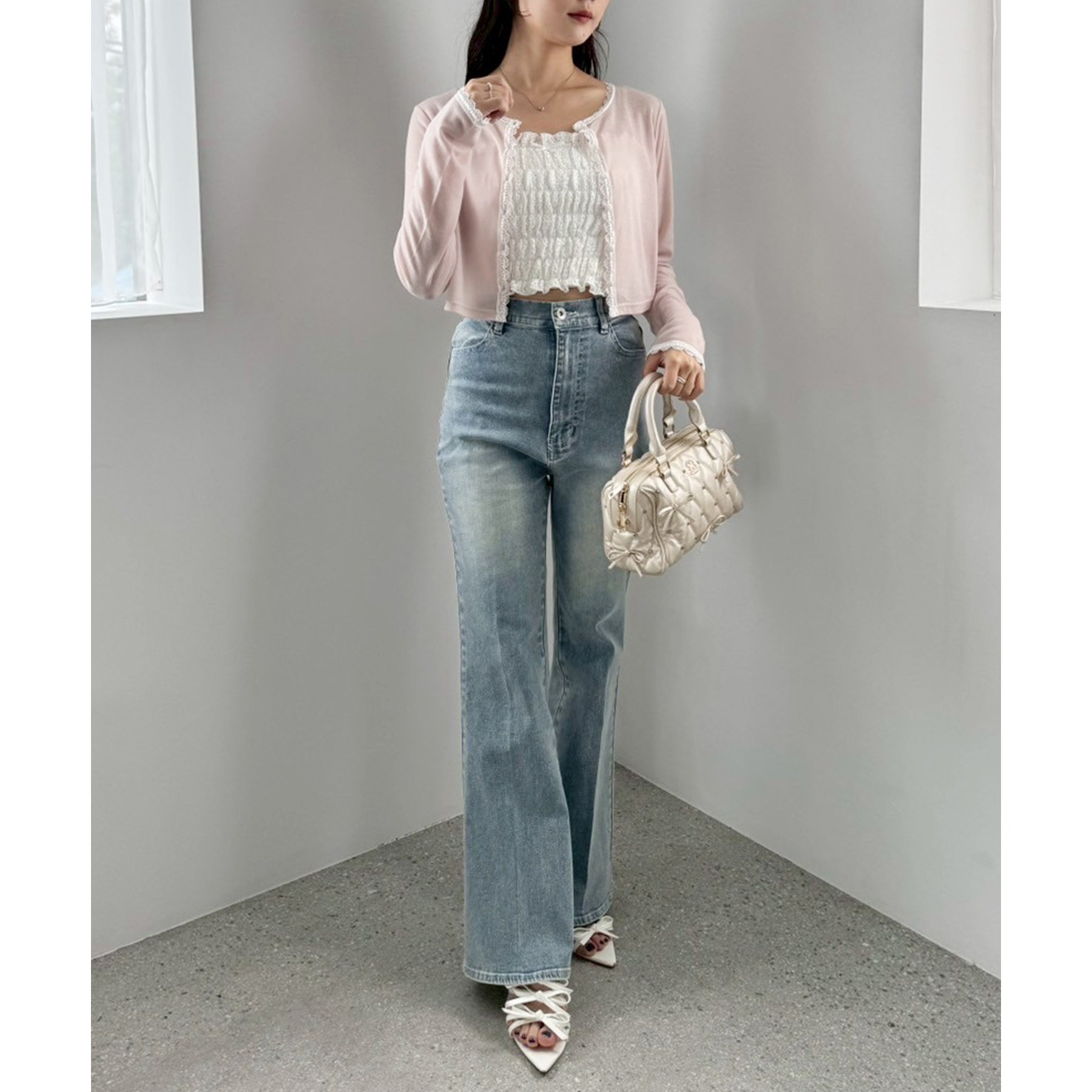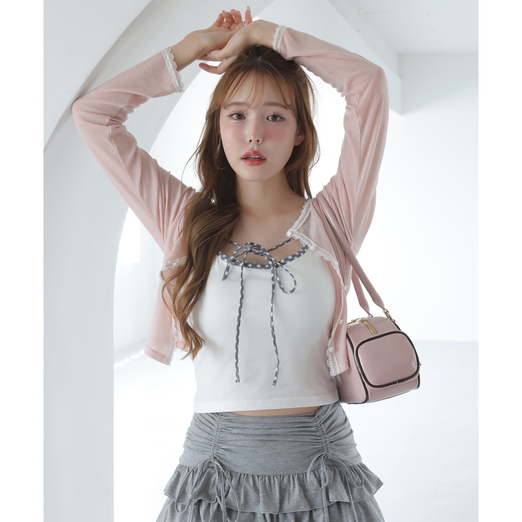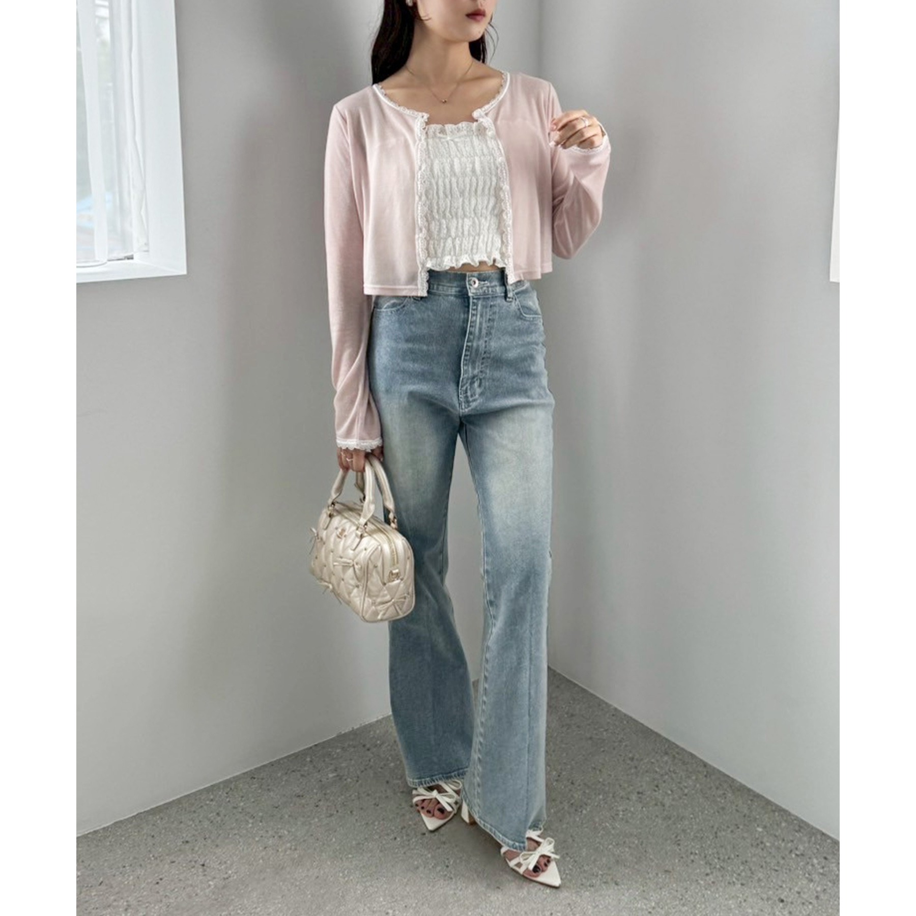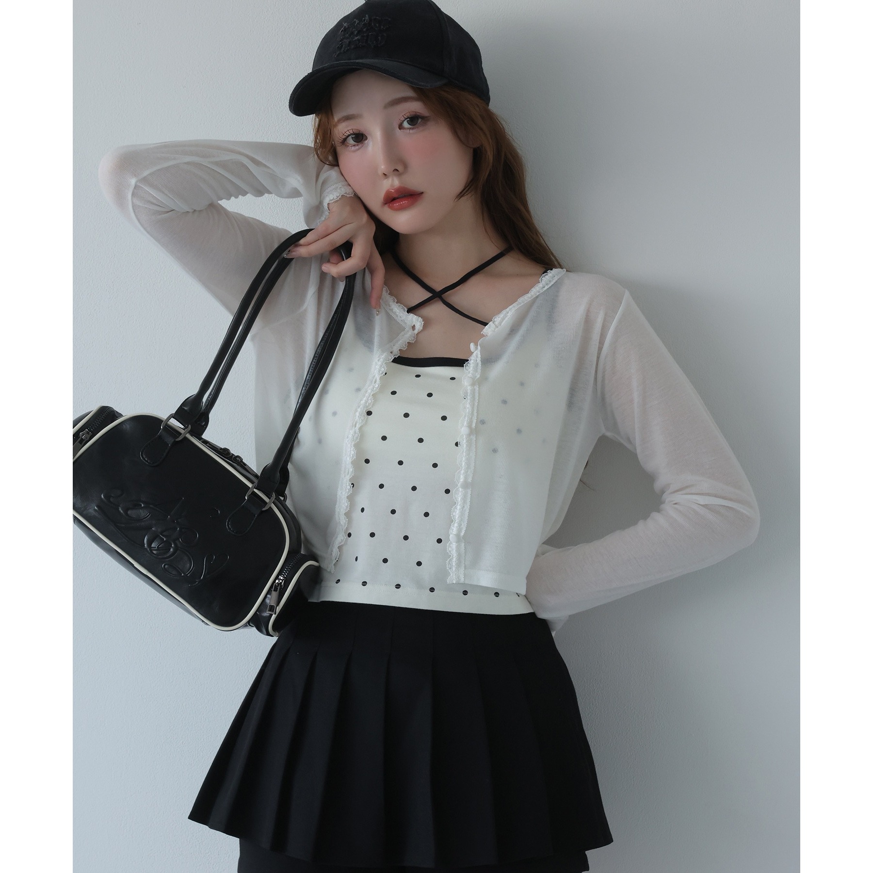 ボレロとしてはもちろん、クロップド丈のトップスとしても着られるマルチなアイテムです。