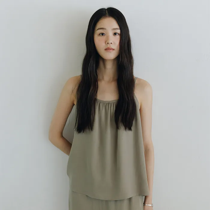 VEIL TENCEL GABARDINE TOP (PALE KHAKI)