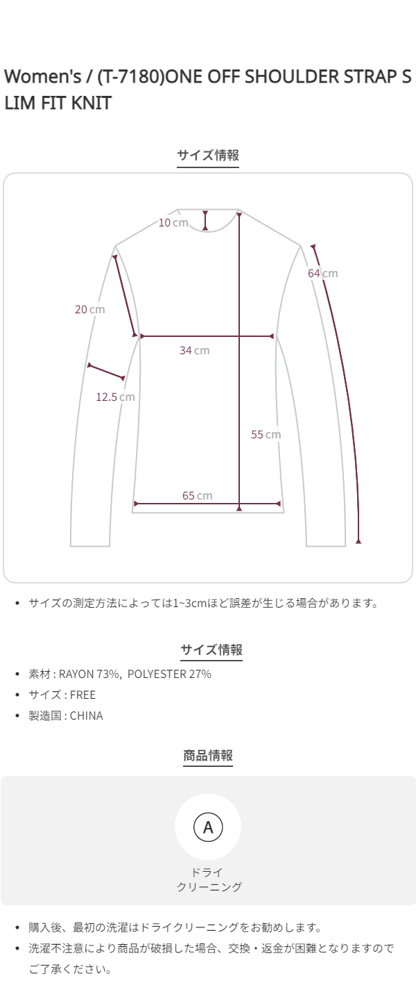 (T-7180)ONE OFF SHOULDER STRAP SLIM FIT KNIT