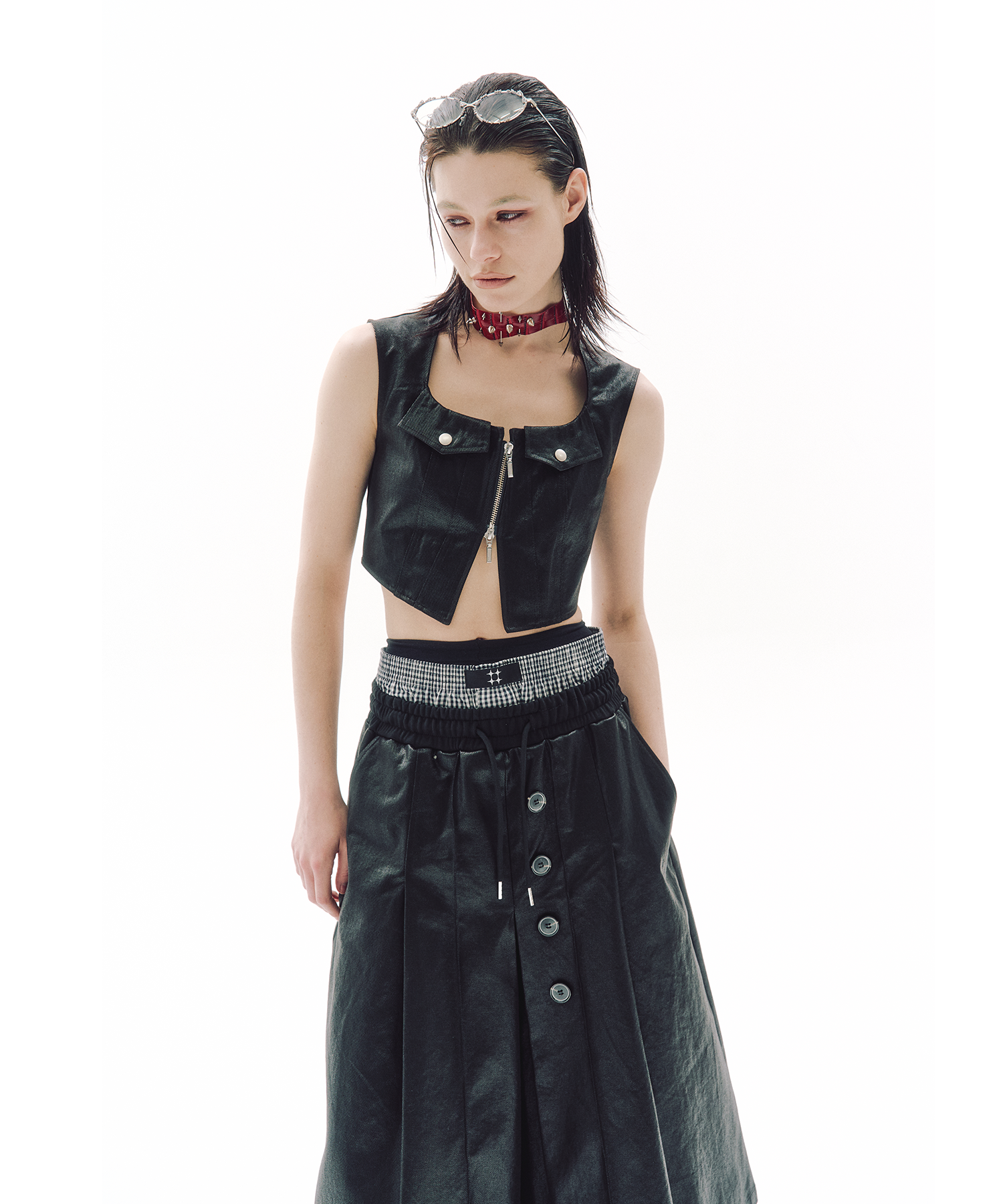 ショートジップクロップベスト
