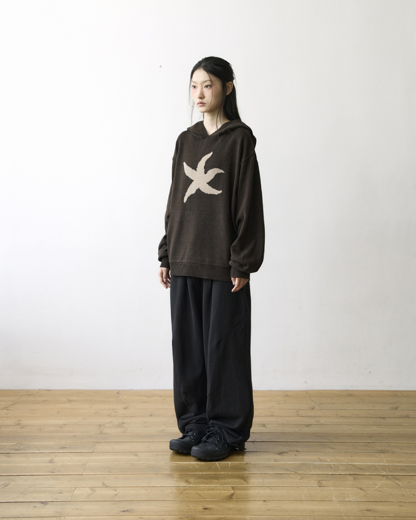 TCM starfish logo knit hoodie (brown)