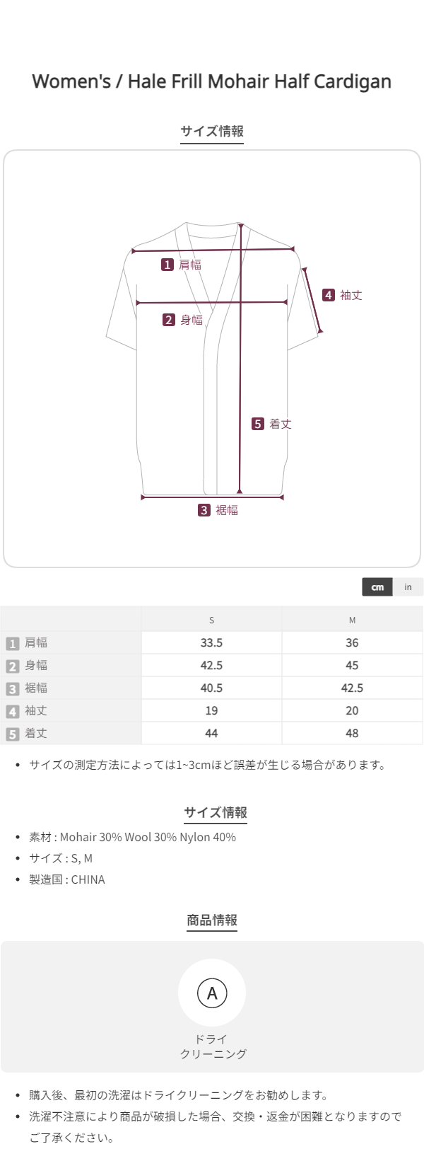 【先行販売】Hale Frill Mohair Half Cardigan_Lavender