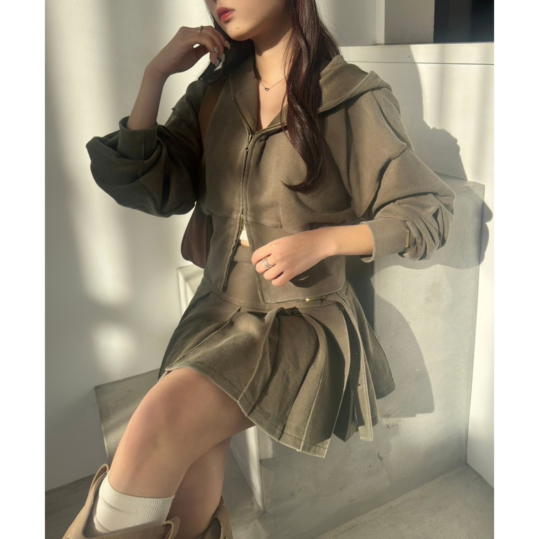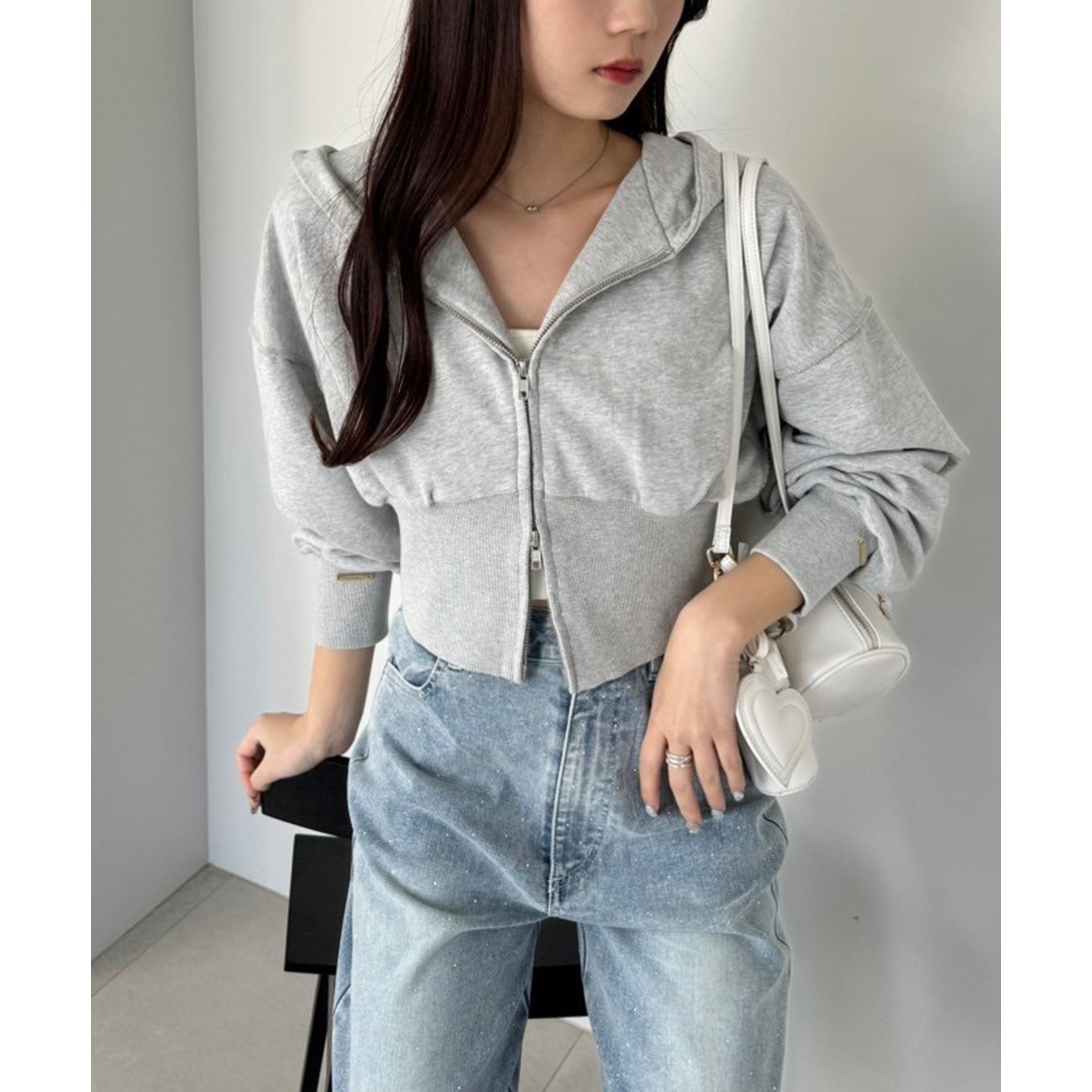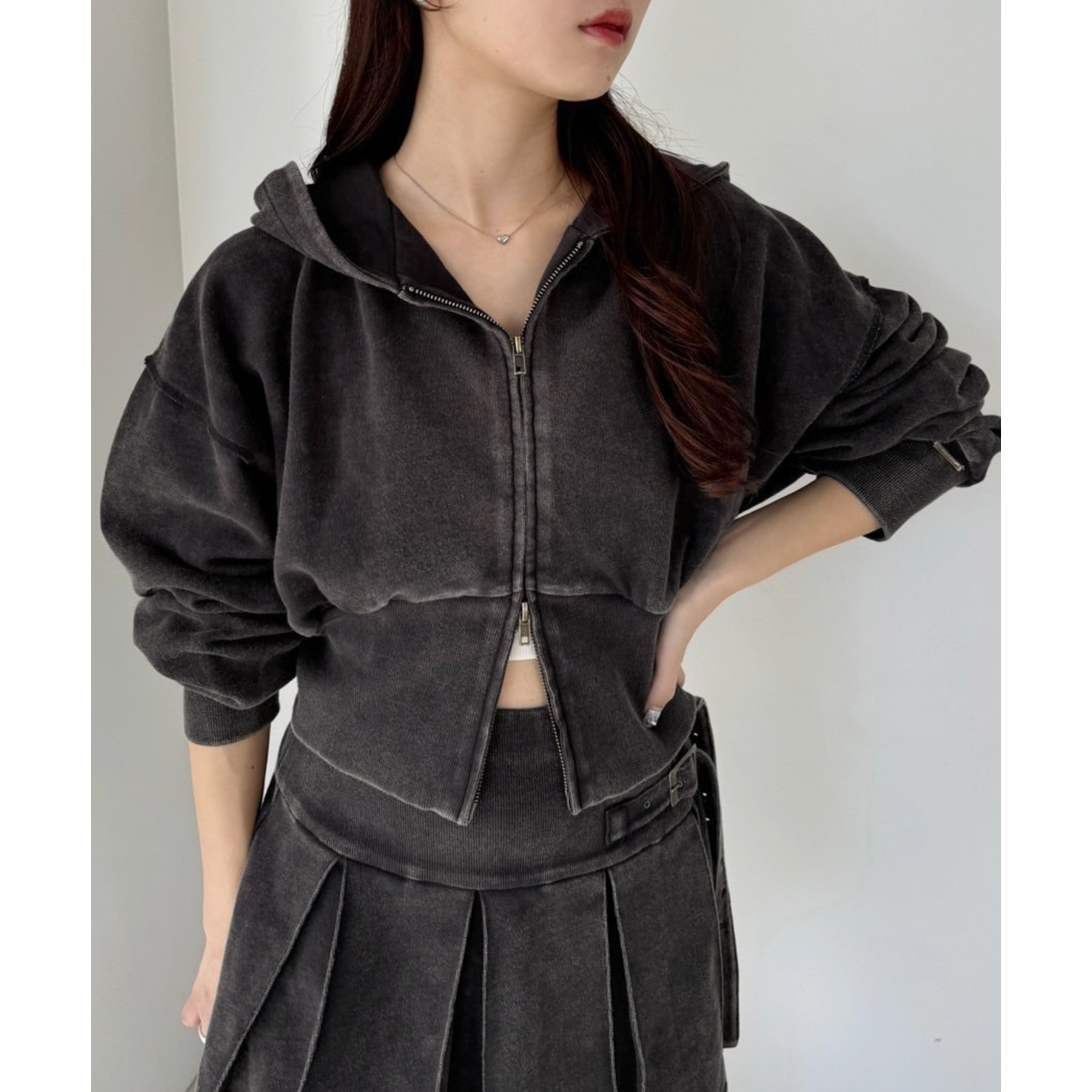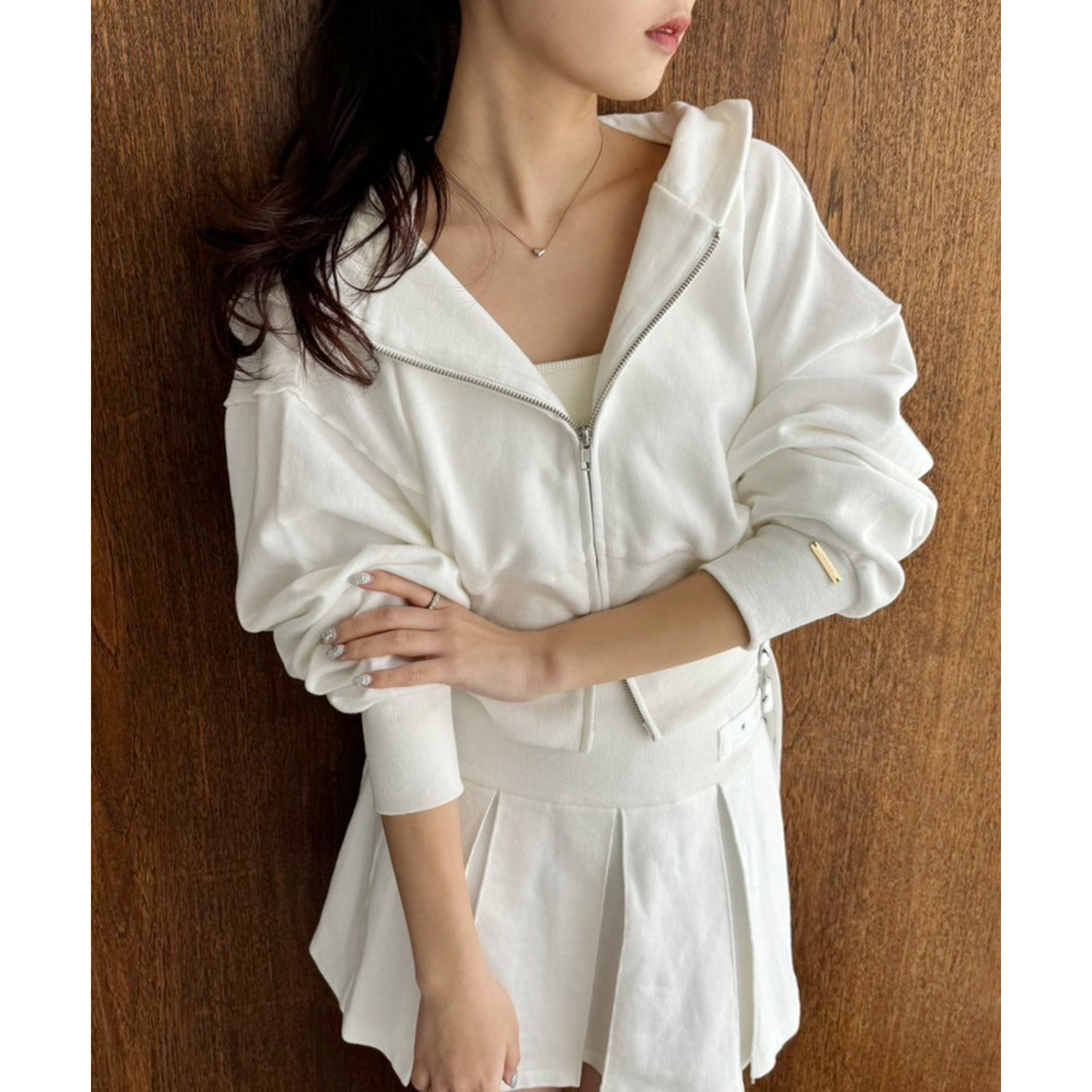 ダブルジップ仕様で、開き具合を調整すればヘルシーな肌見せコーデにもぴったり。