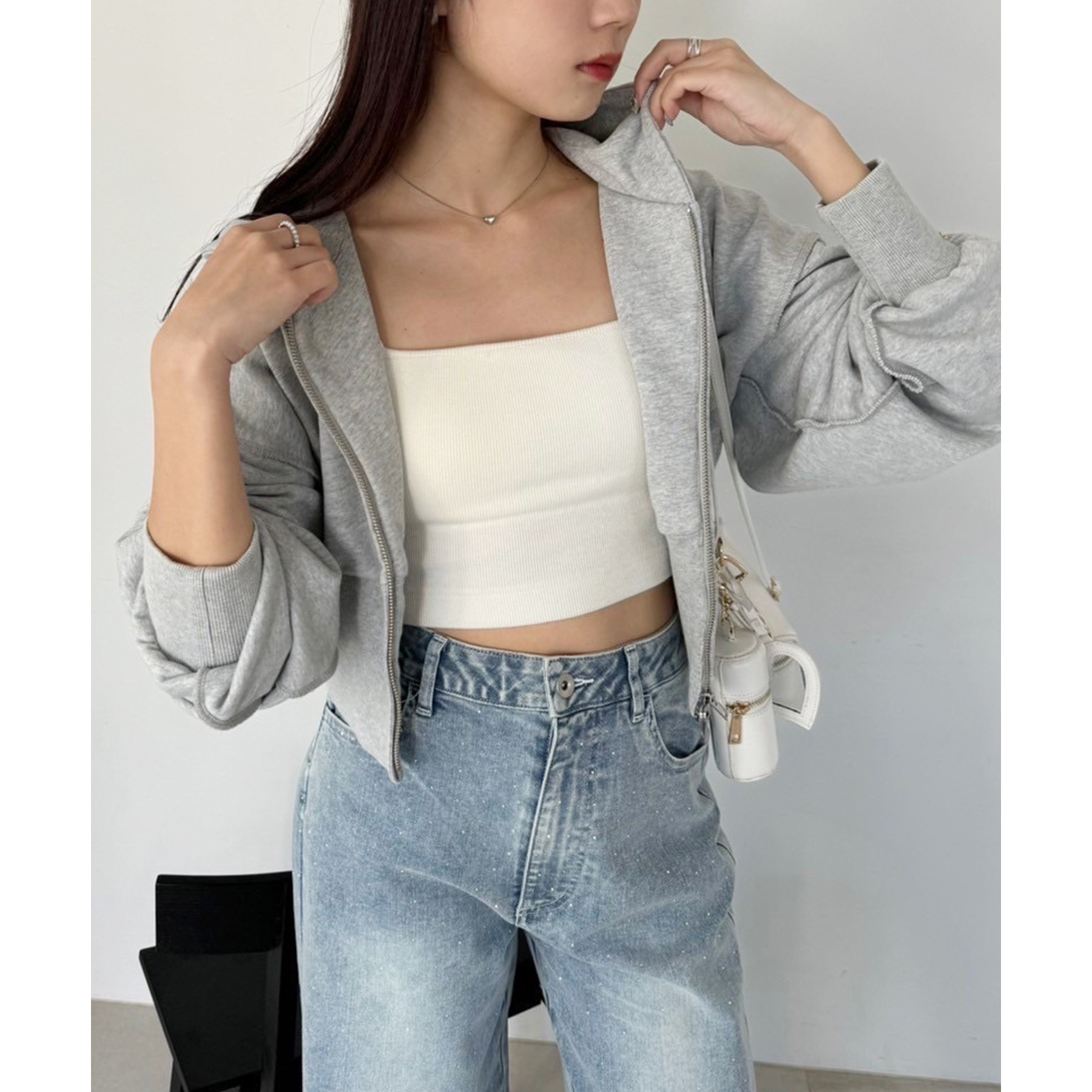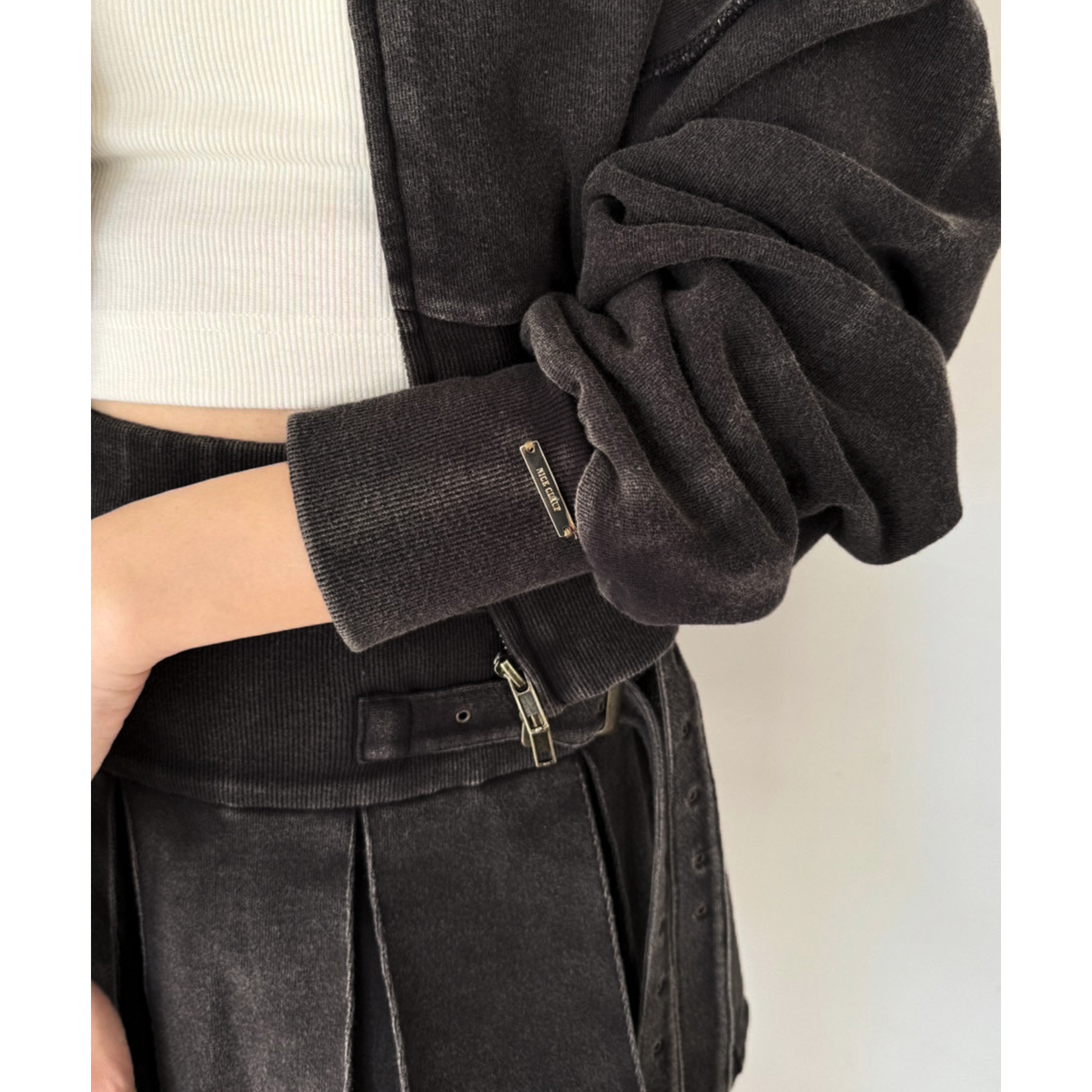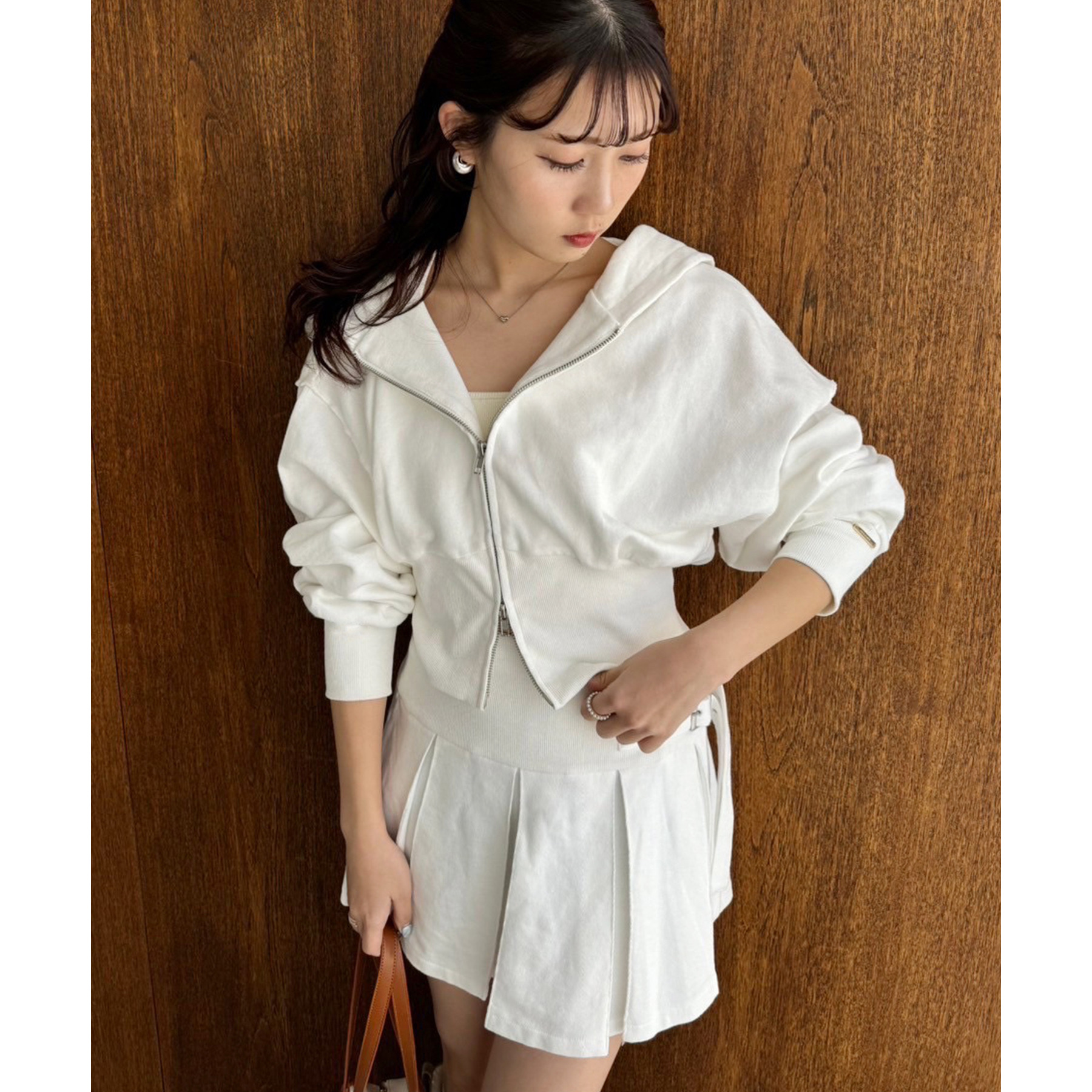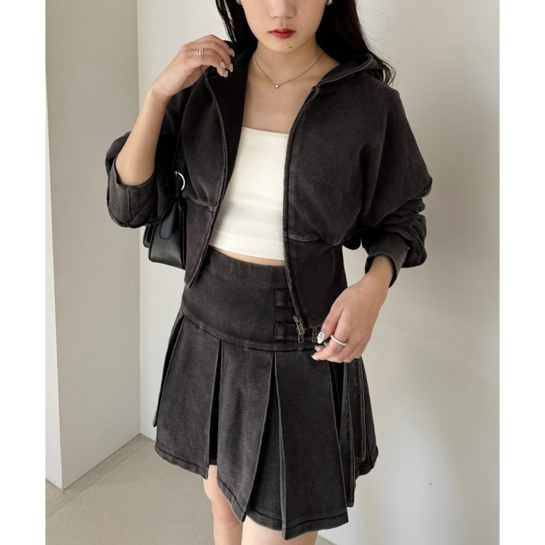 ダブルジップ仕様で、開き具合を調整すればヘルシーな肌見せコーデにもぴったり。