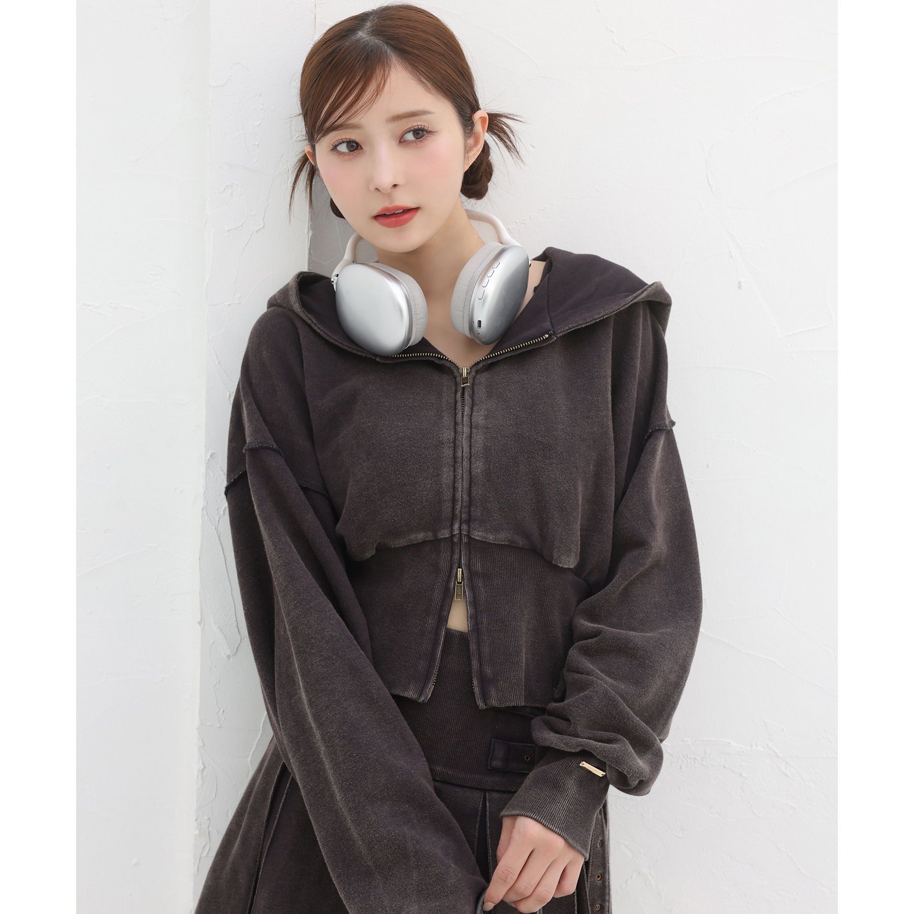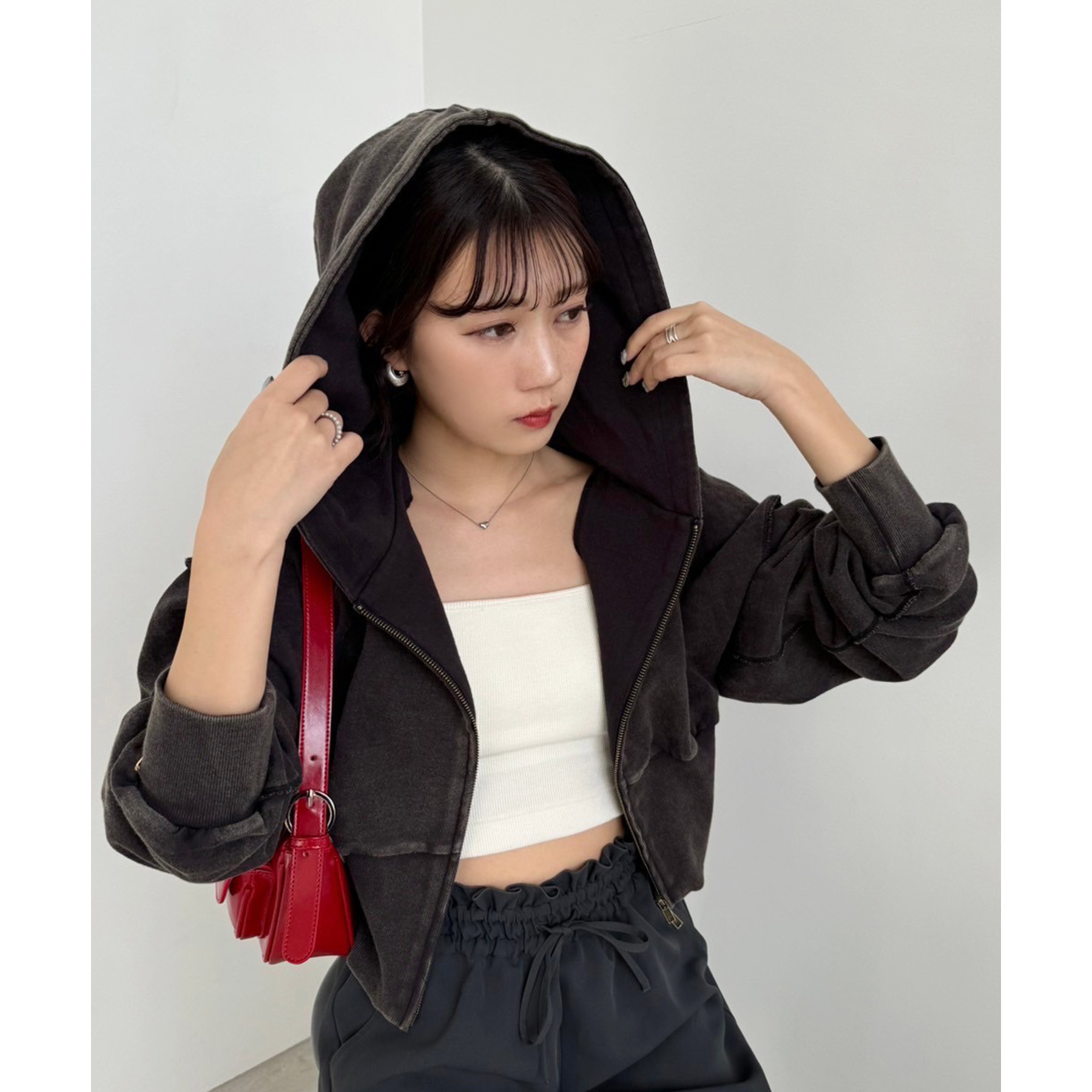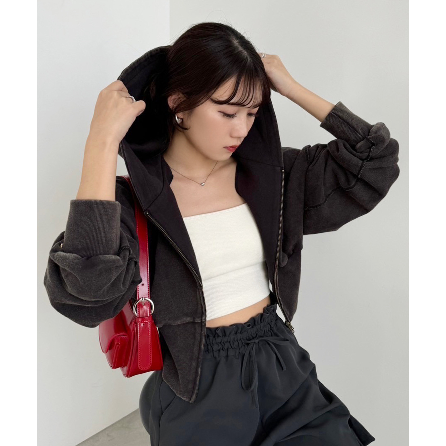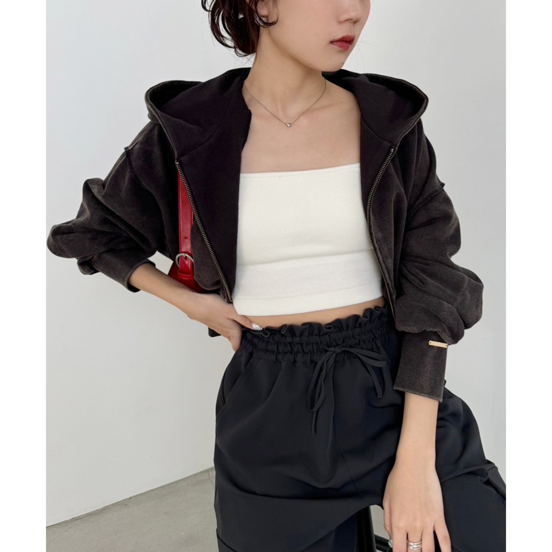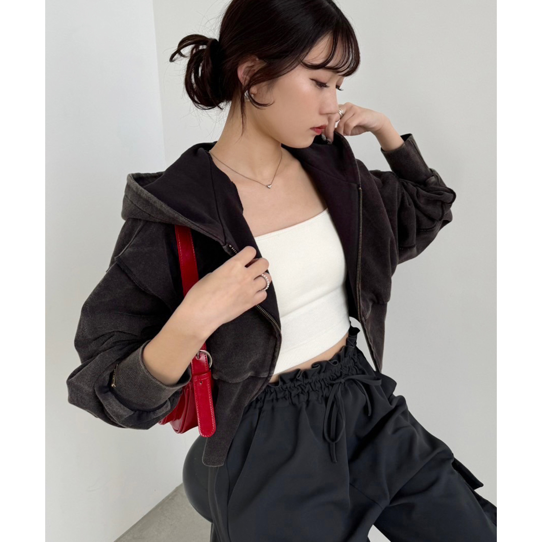 コンパクトなシルエットのショート丈パーカーでスタイルアップ効果も抜群◎