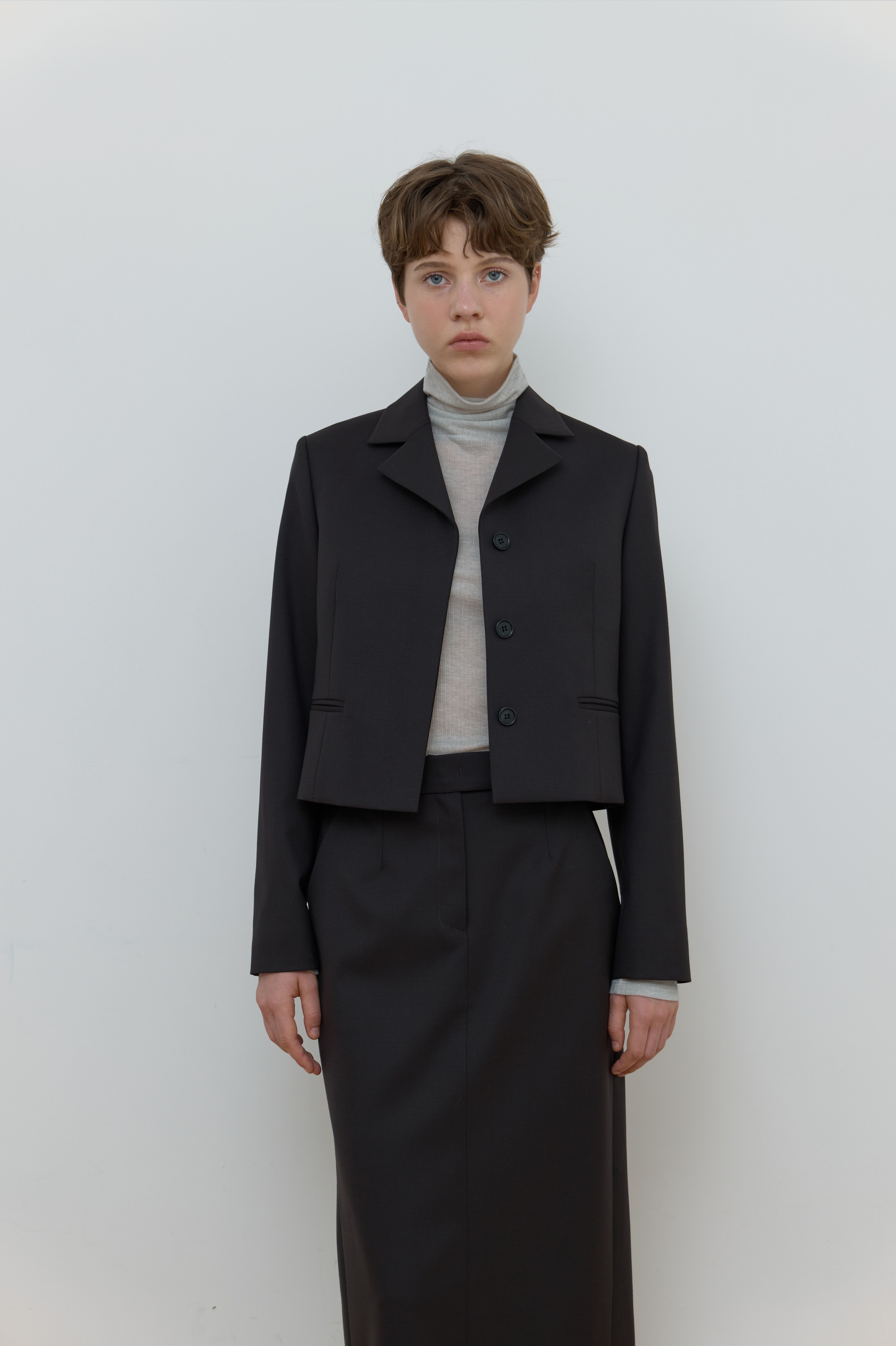 SINGLE HIDDEN CROP JACKET_BROWN