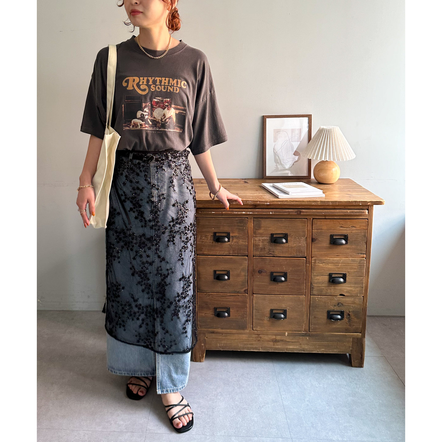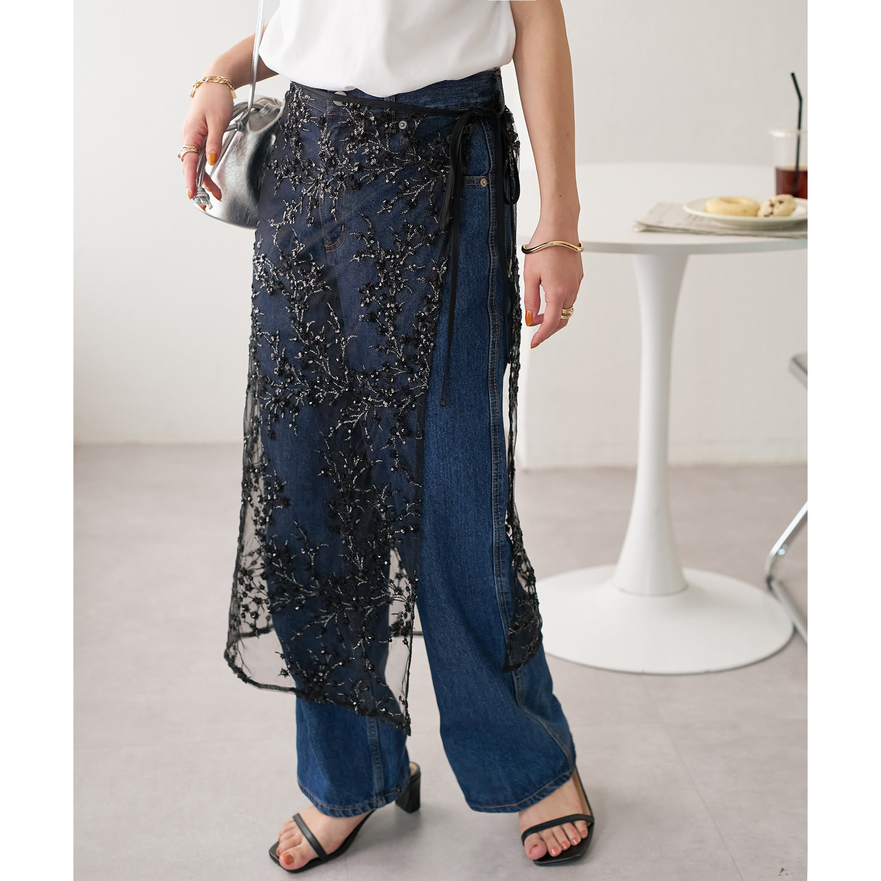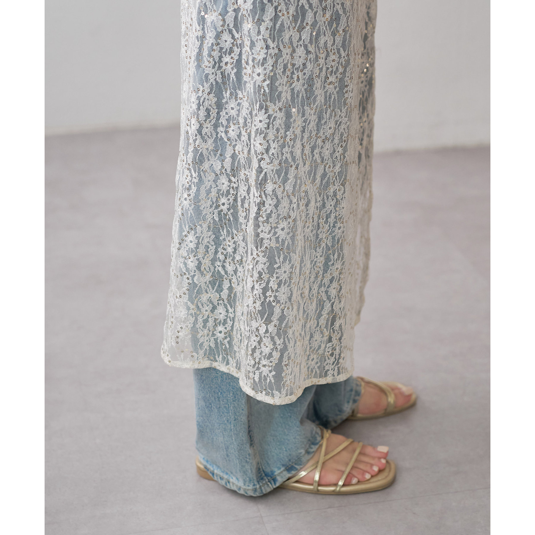 スパンコールのきらめきと透け感がレイヤードしても重たく見えにくく今年らしいトレンド感のあるコーデを楽しめます!