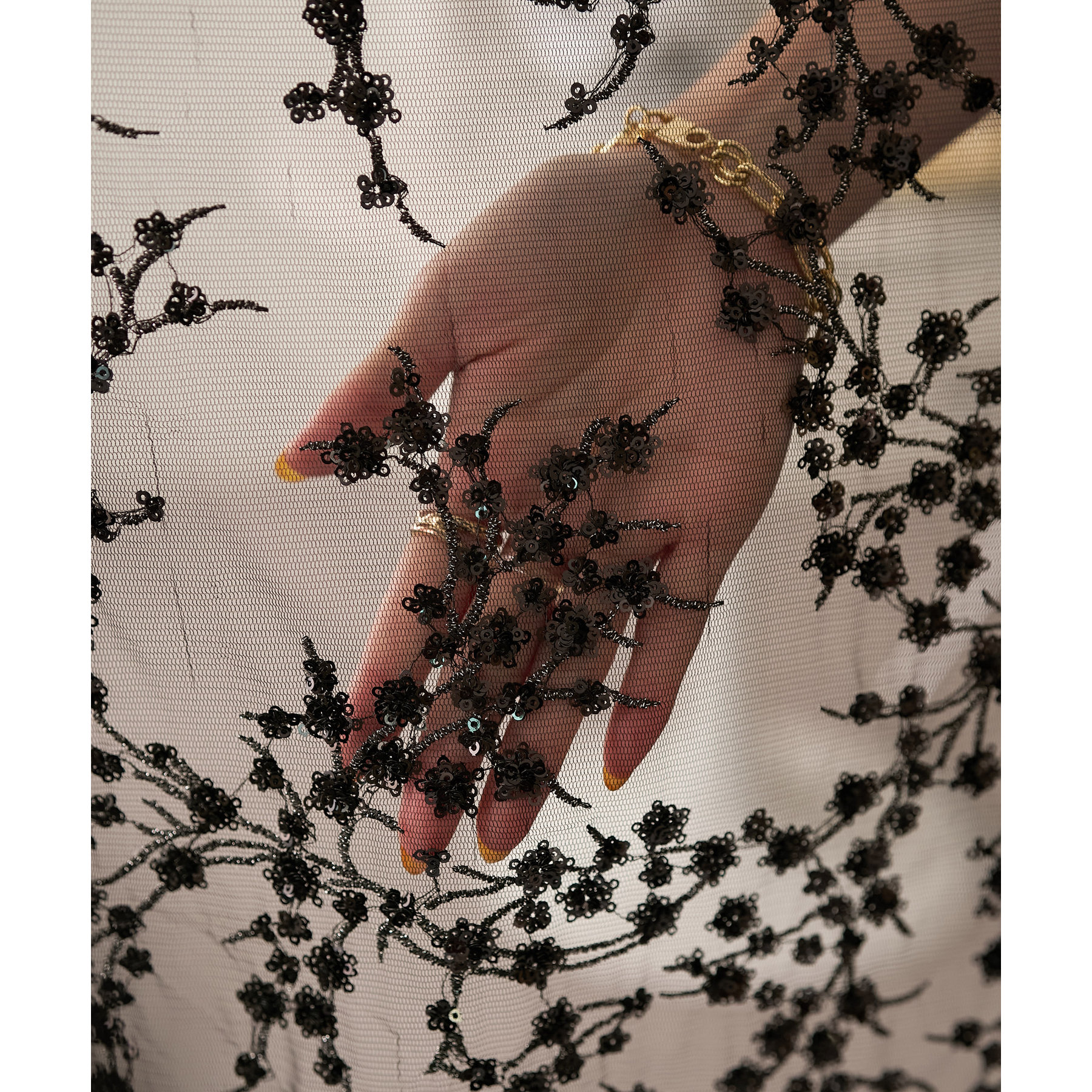 スパンコールが散りばめられたデザインで華やかな印象をプラスします〇
