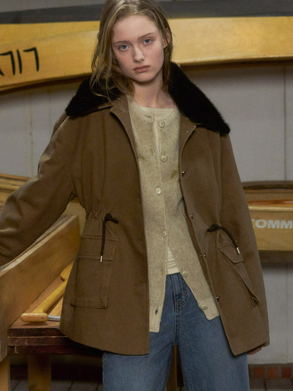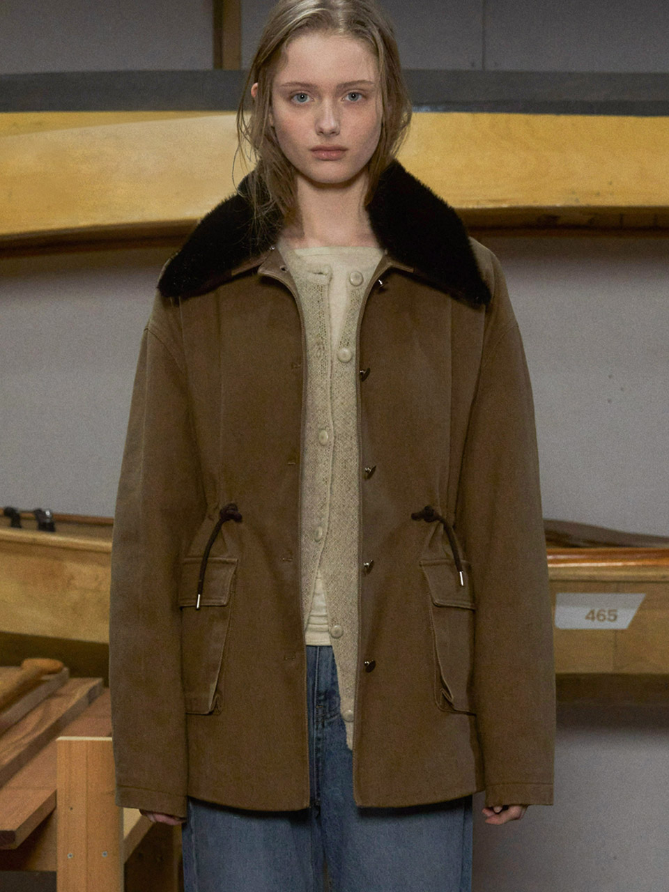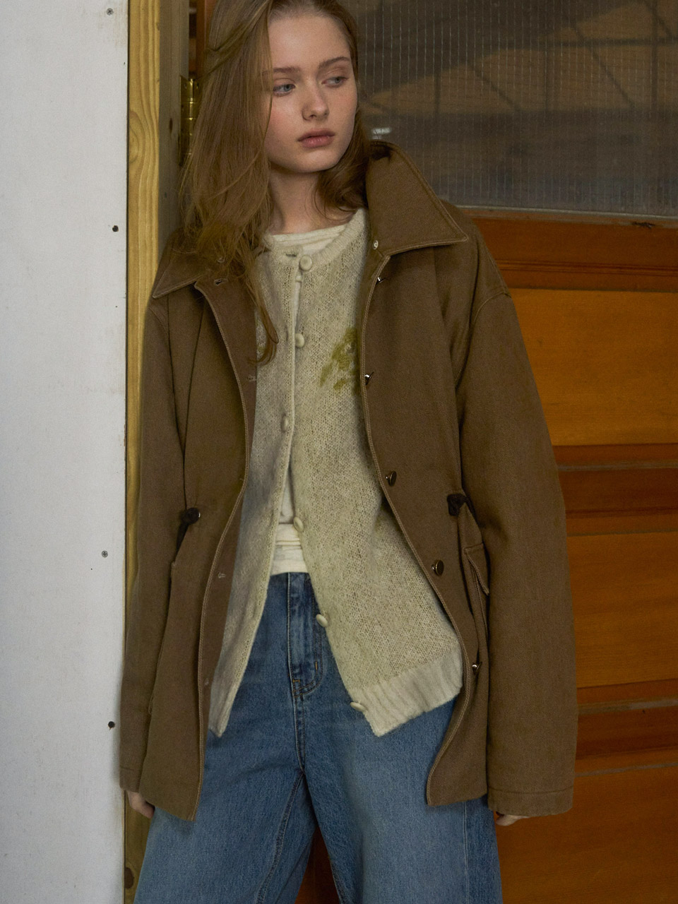 Vanves washed half jacket (khaki brown)