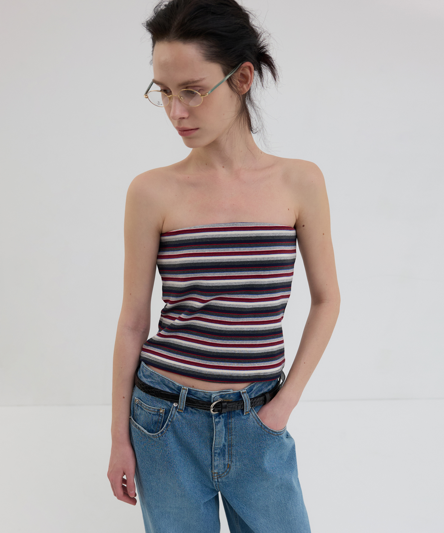 -レトロヴィンテージとイージーカジュアルムードを組み合わせたストライプパターンのミニマルチューブトップです。
