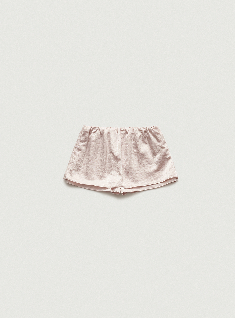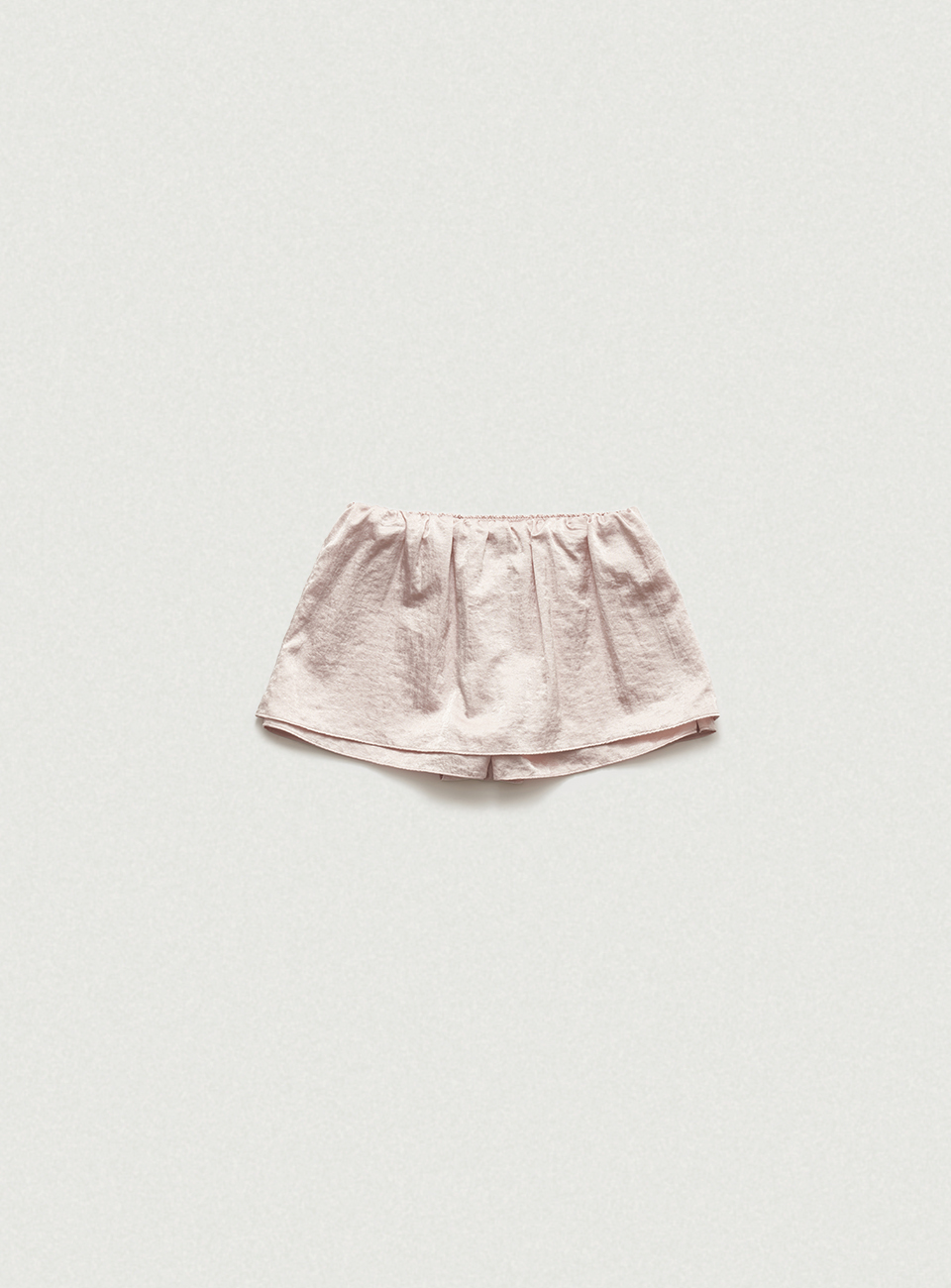 パンツとスカートをレイヤードしたデザインで、負担感のないミニ丈アイテム