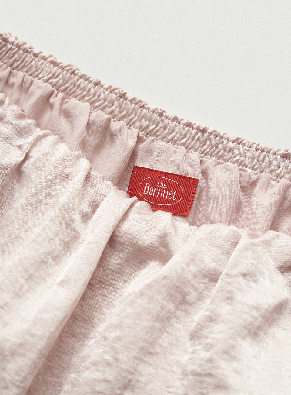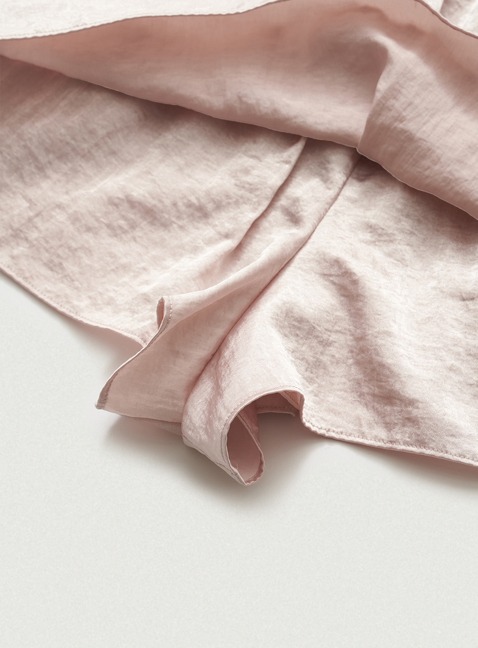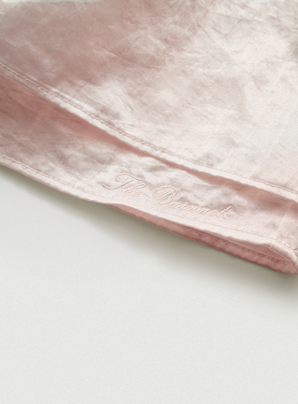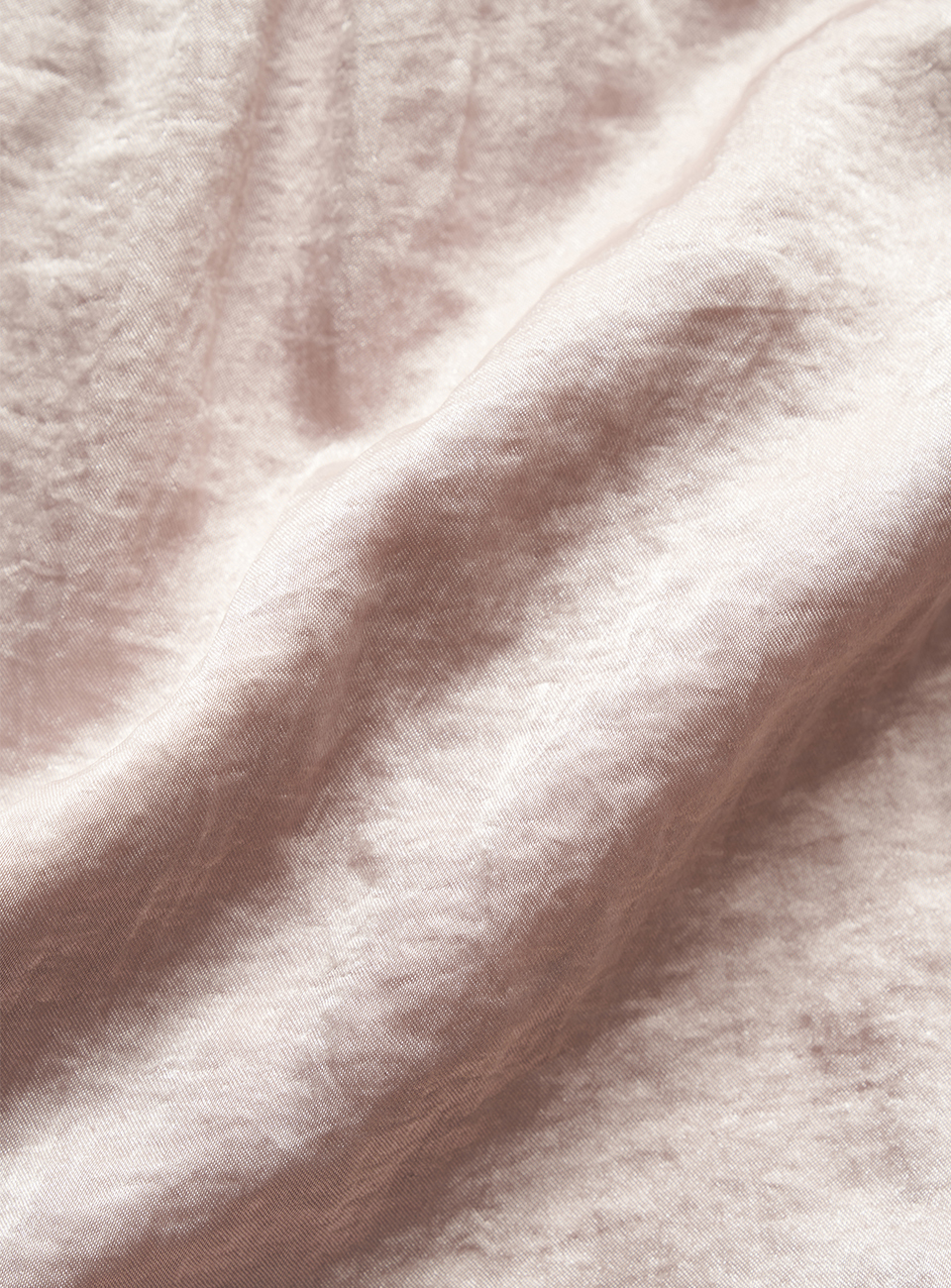 "ピンクカラーのほのかな光沢感と、しなやかなテクスチャーが際立つサテンファブリック