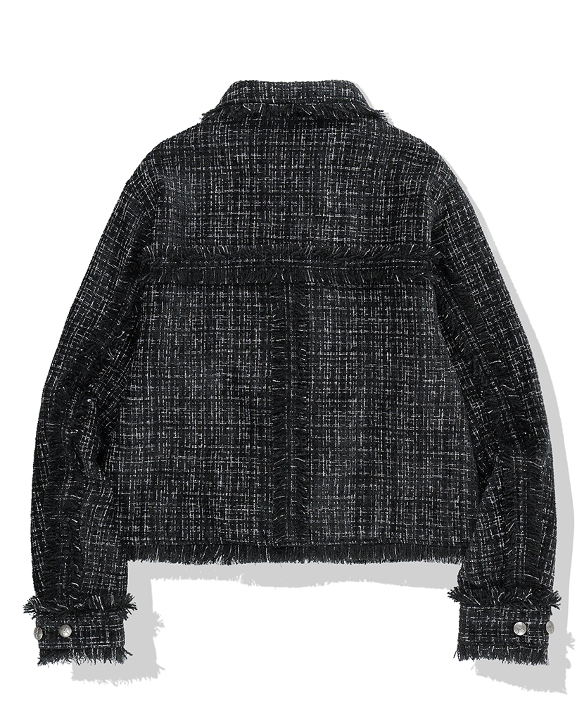 [nugu限定商品] Frayed Crop Tweed Jacket - Black