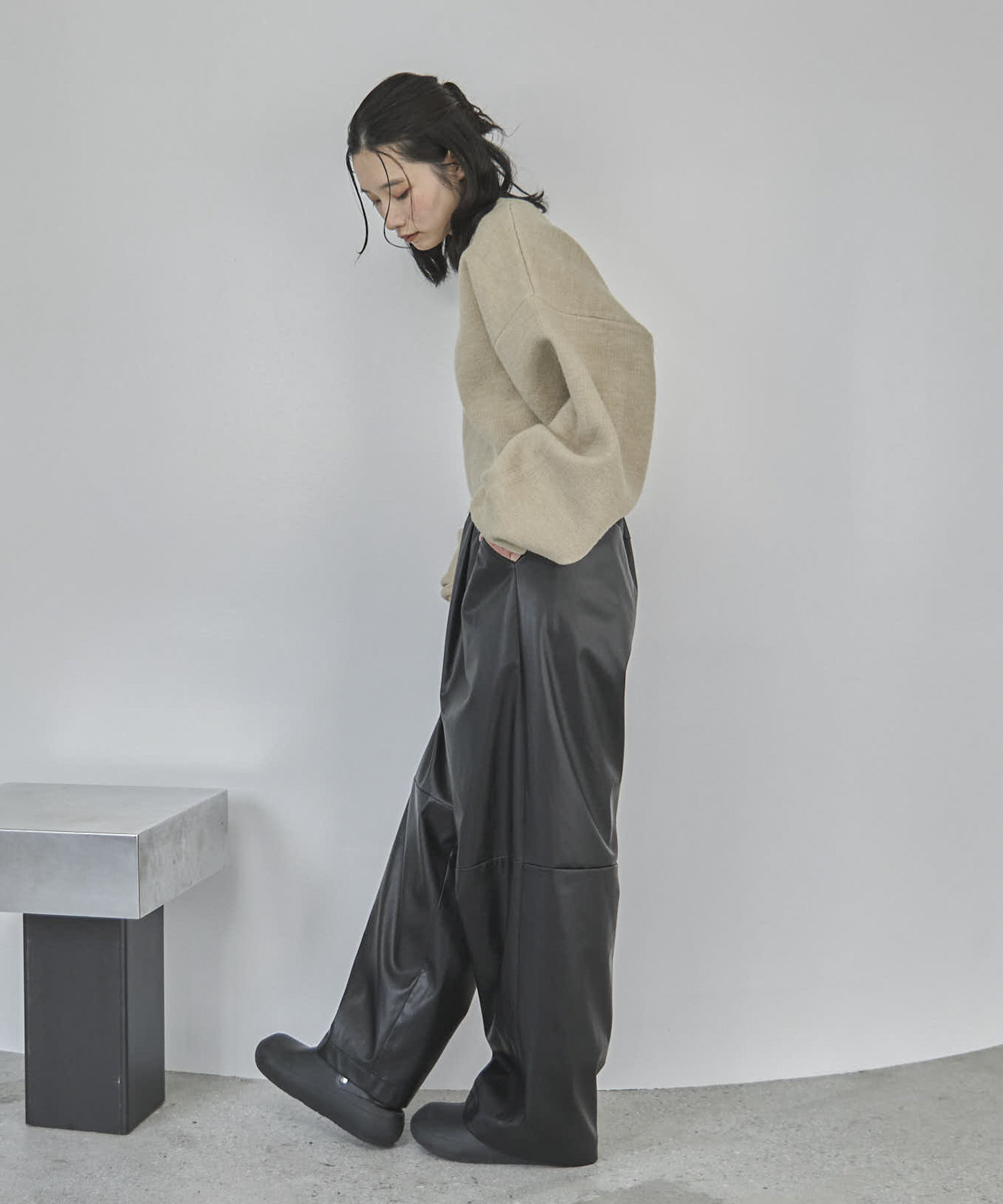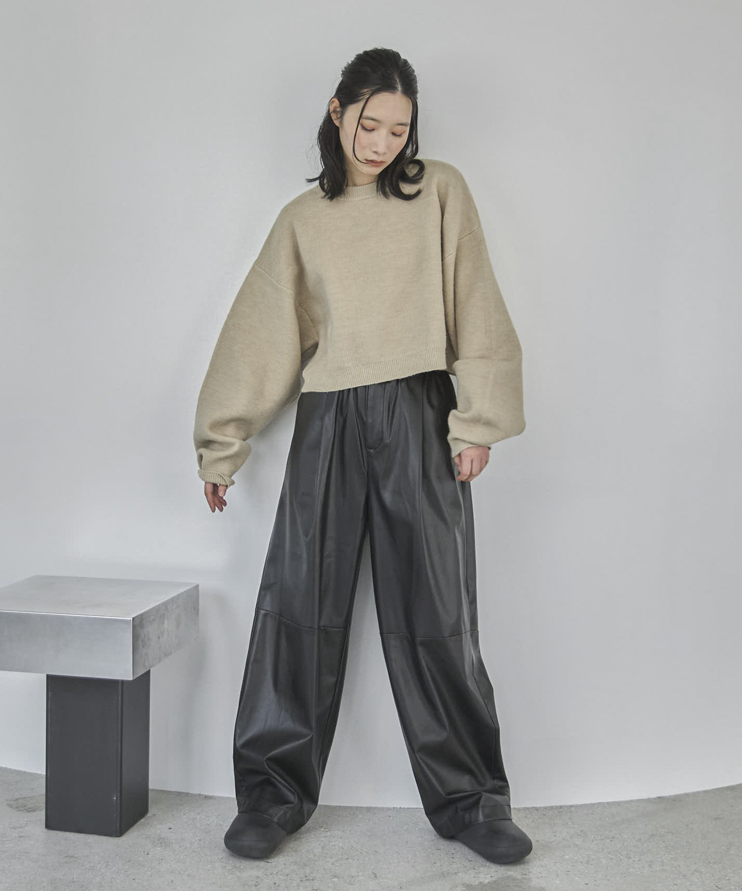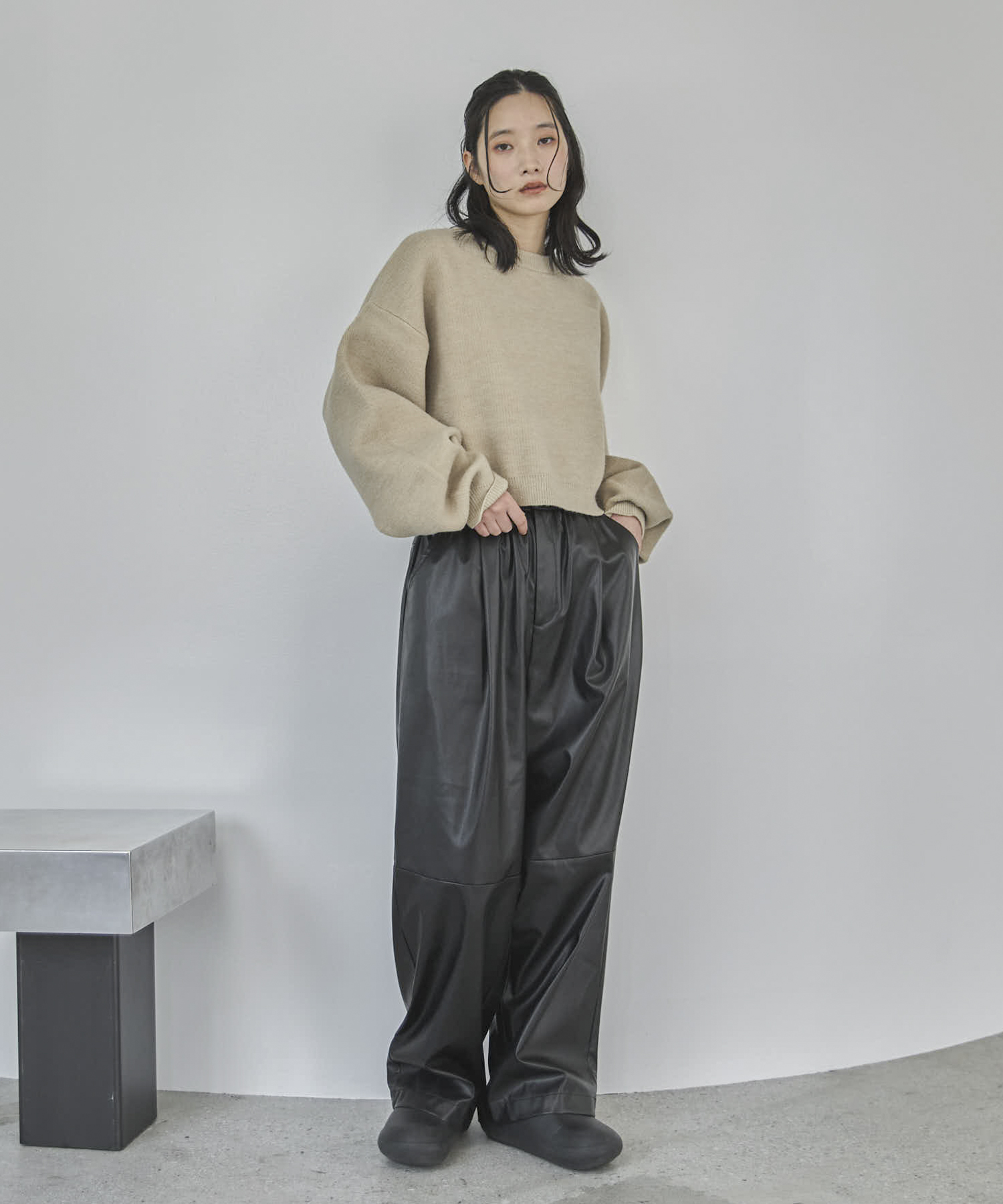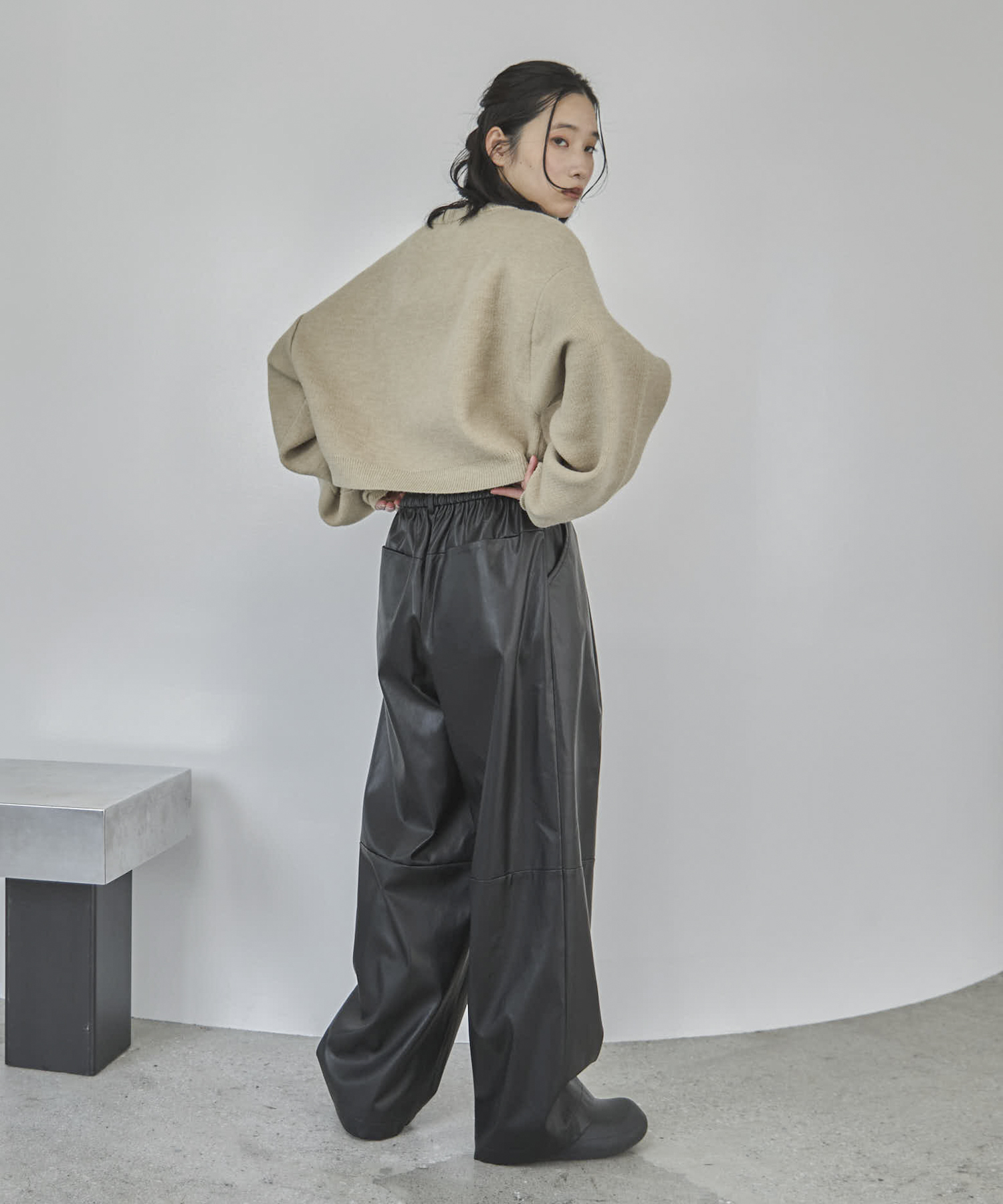 【TALLサイズあり】フェイクレザーコクーンイージーパンツ