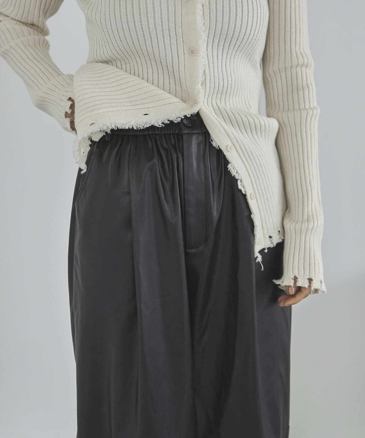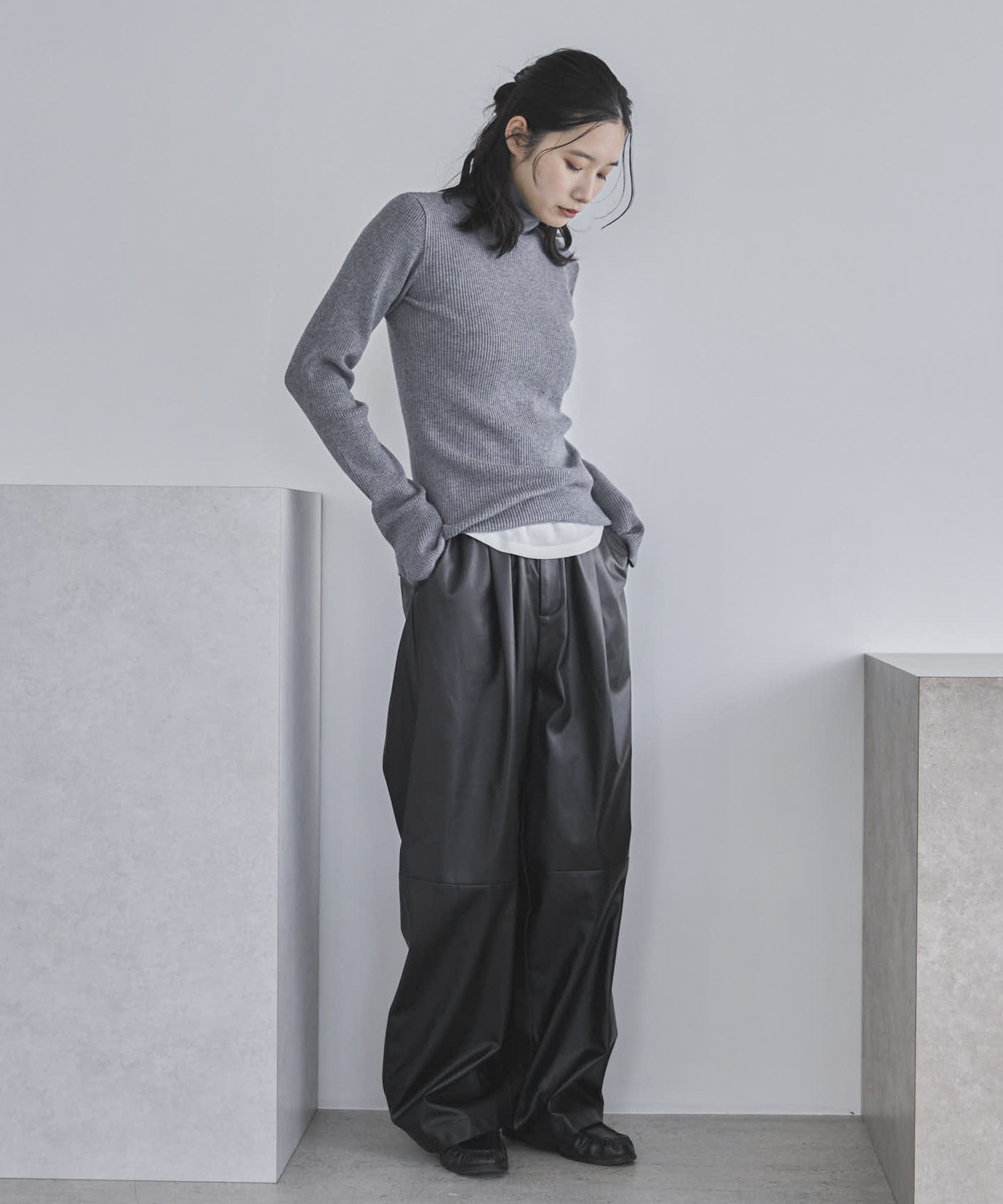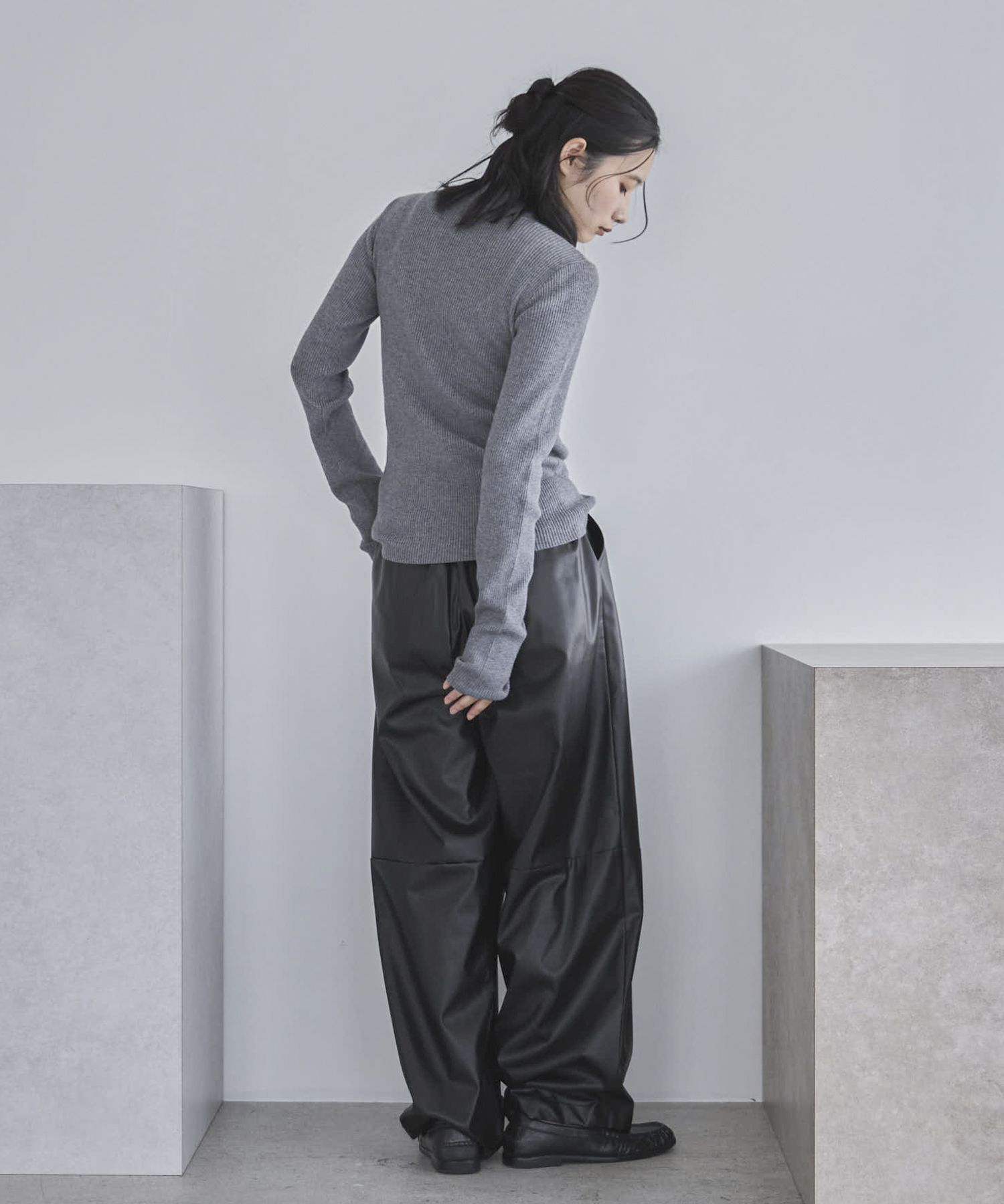 【TALLサイズあり】フェイクレザーコクーンイージーパンツ
