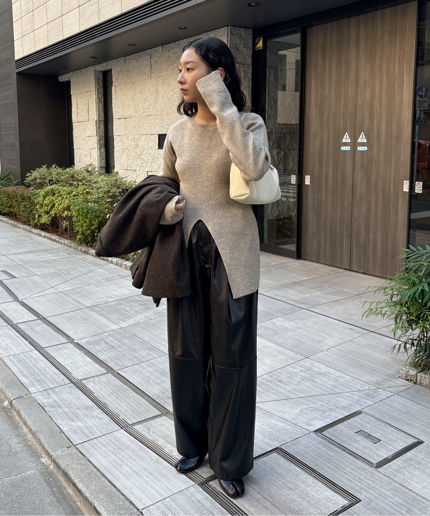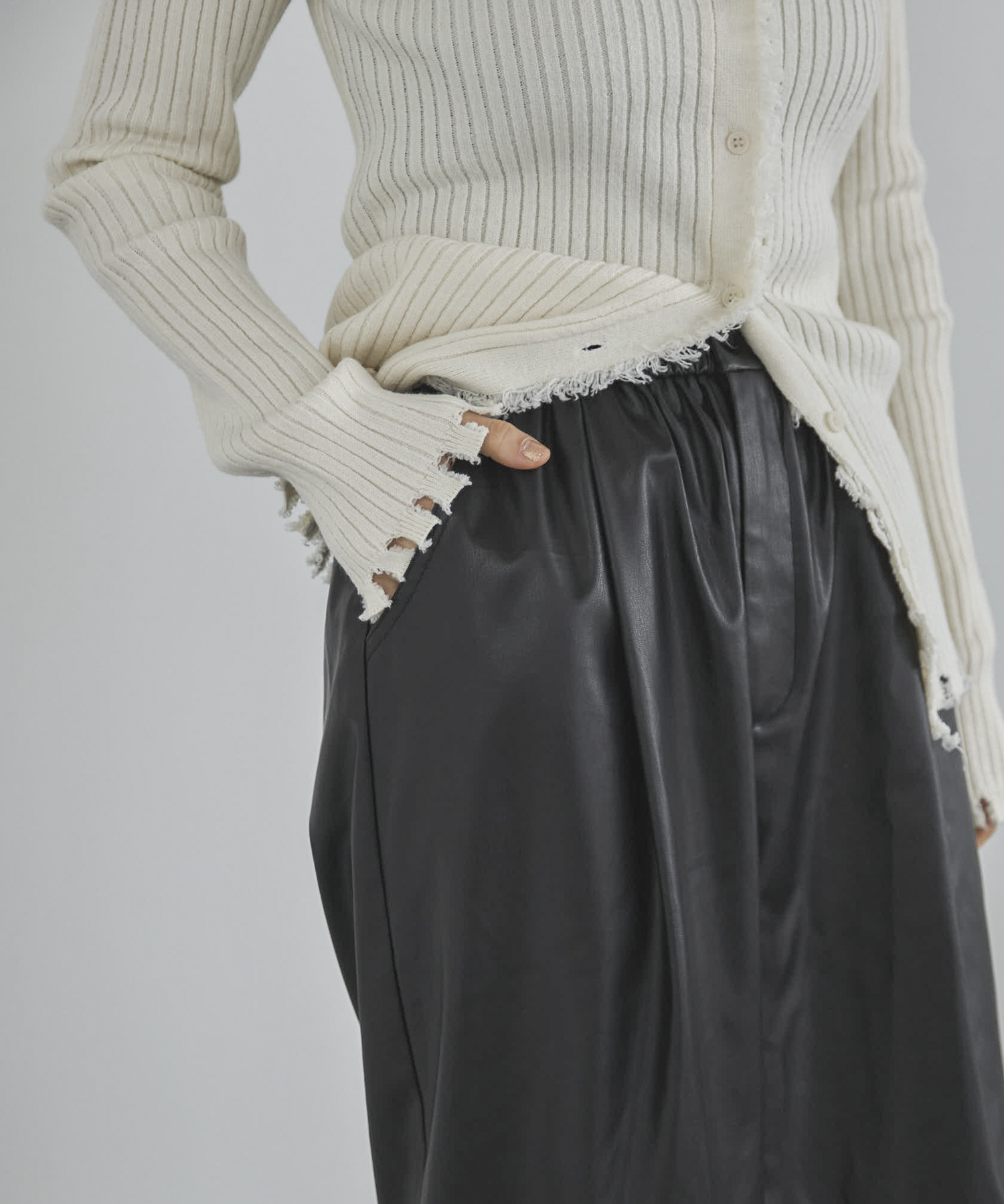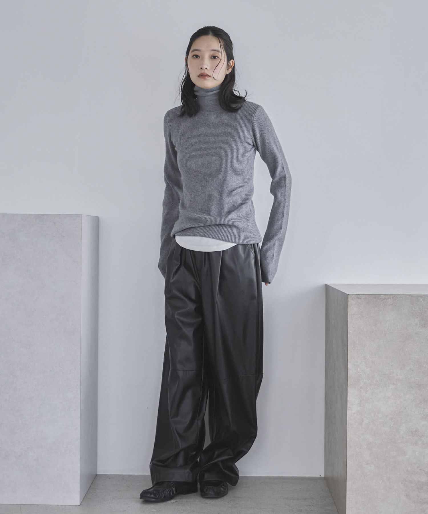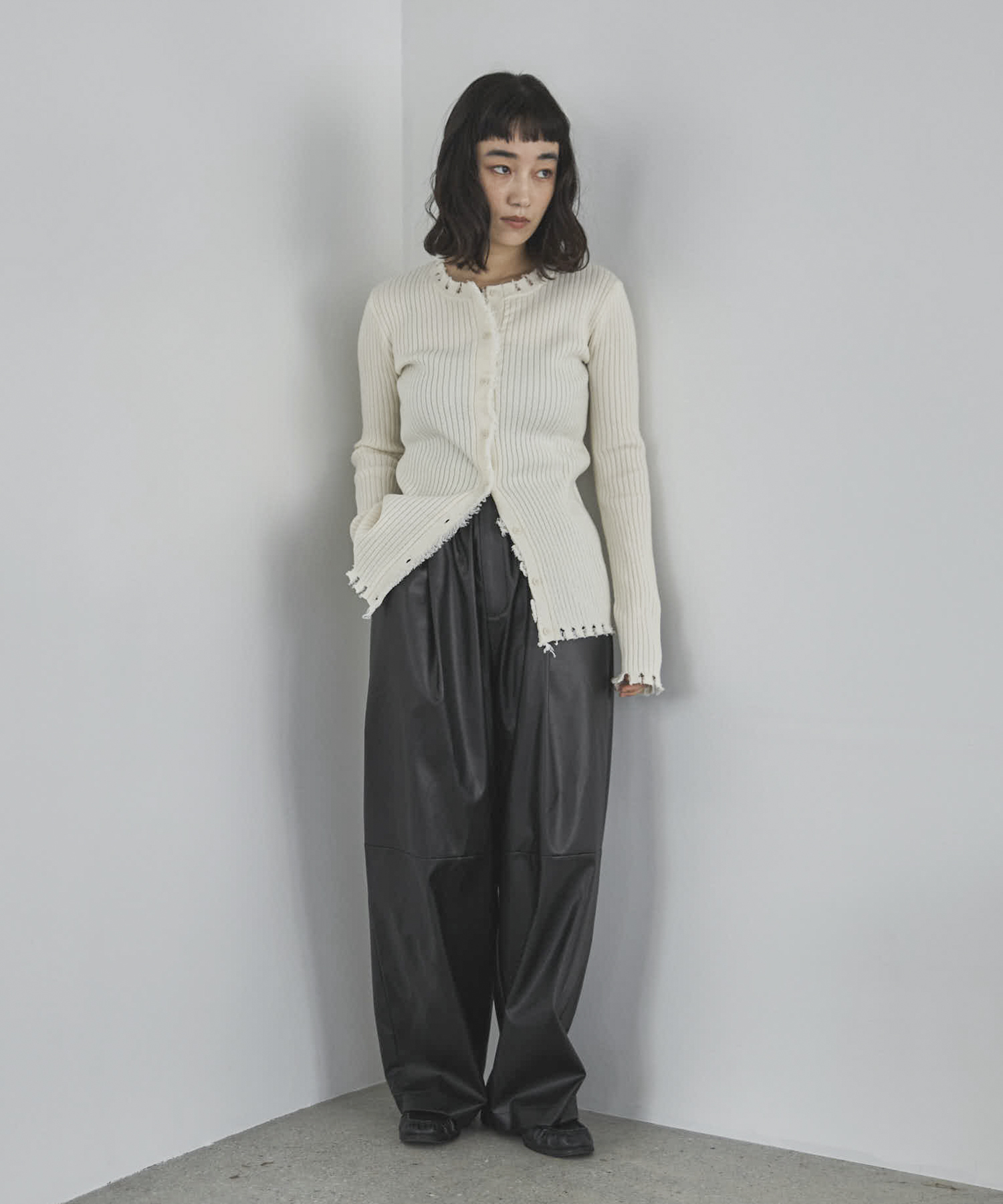 【TALLサイズあり】フェイクレザーコクーンイージーパンツ