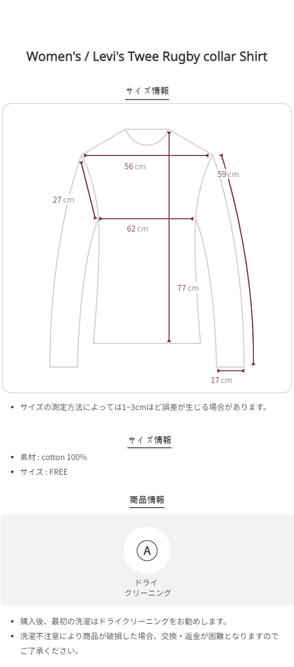 HEIGHT 170cm / BUST 81cm / WAIST 62cm / HIP 90cm