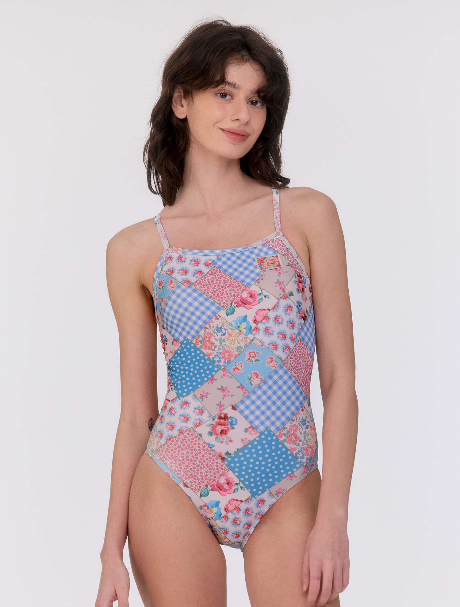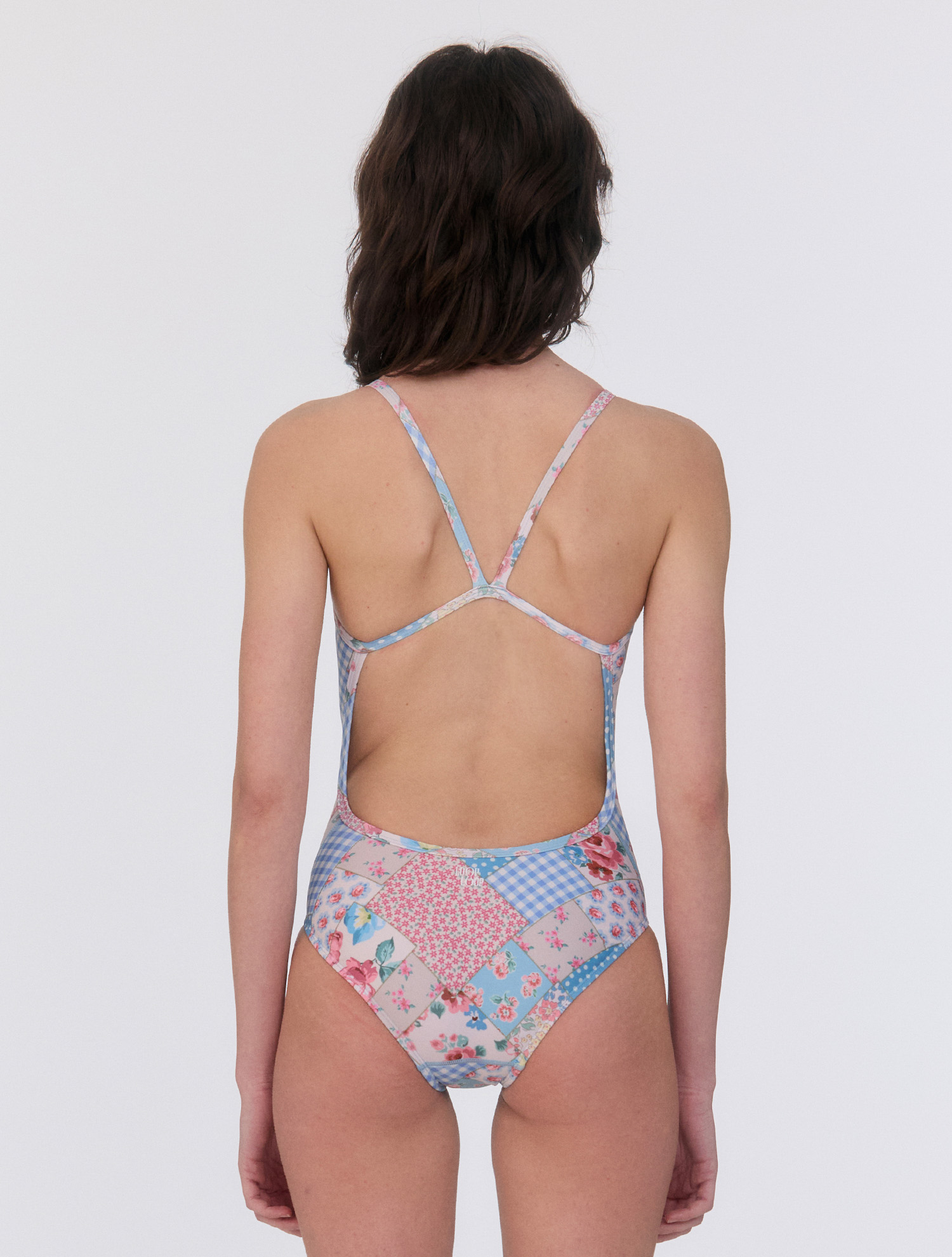 [Bohemian Patchwork_sky blue] V-Back One Piece Swimsuit