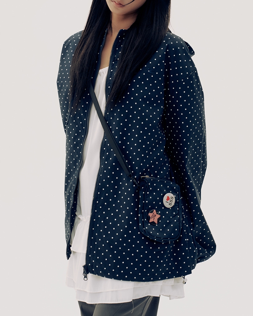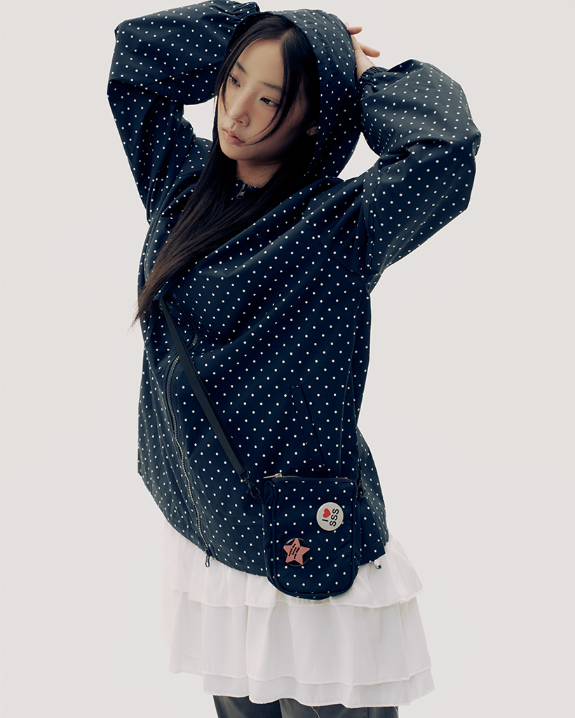 キャッツハイネックドットフードストリングウィンドブレーカーバッグセット[ネイビー]