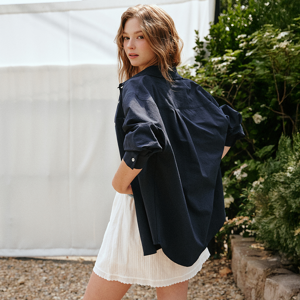Seersucker Oversized Pocket Shirt [Navy]