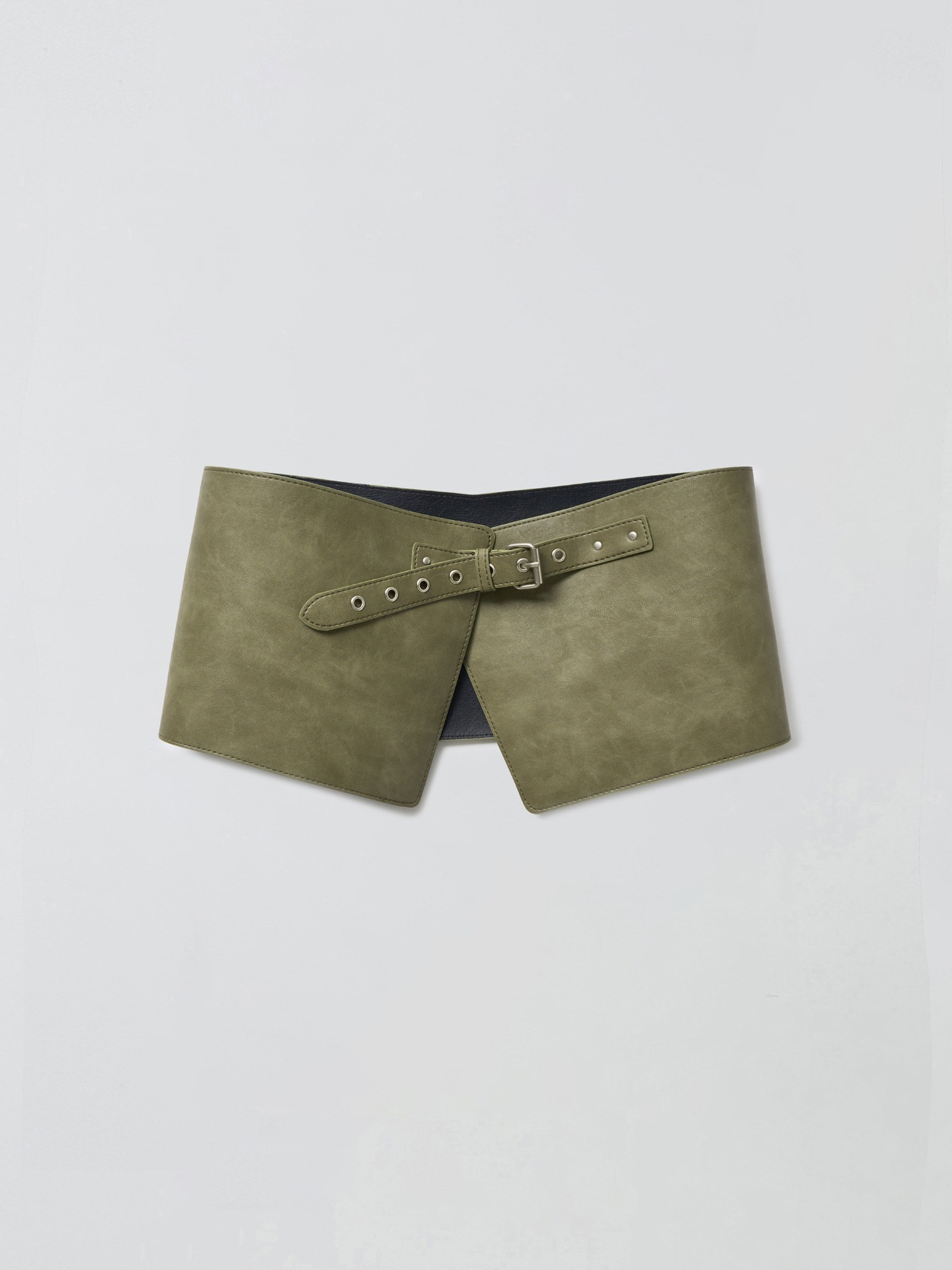 ASYMMETRICAL LEATHER BELT_KHAKI