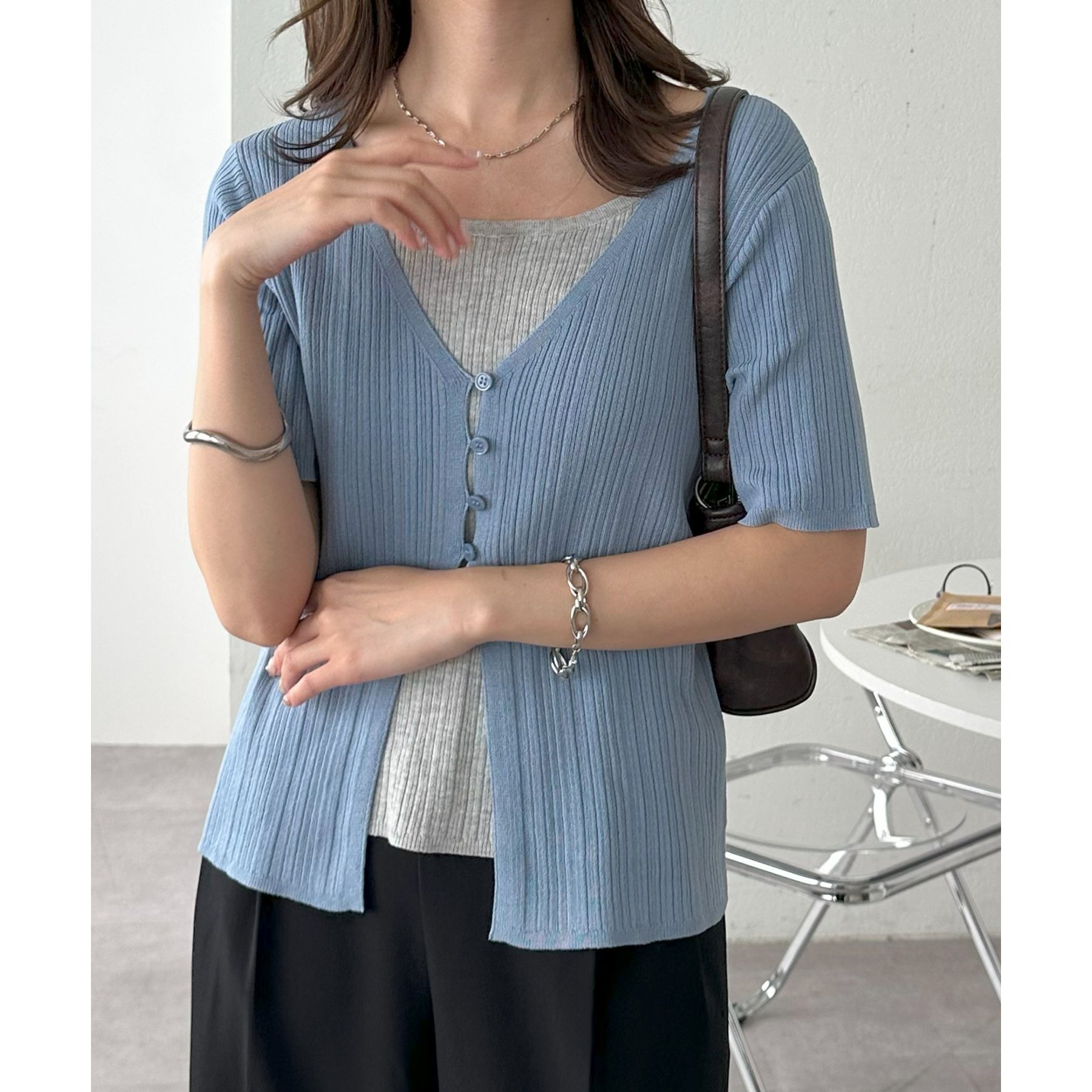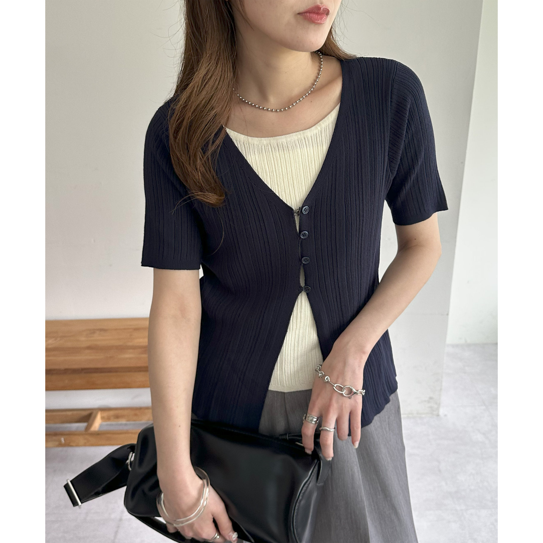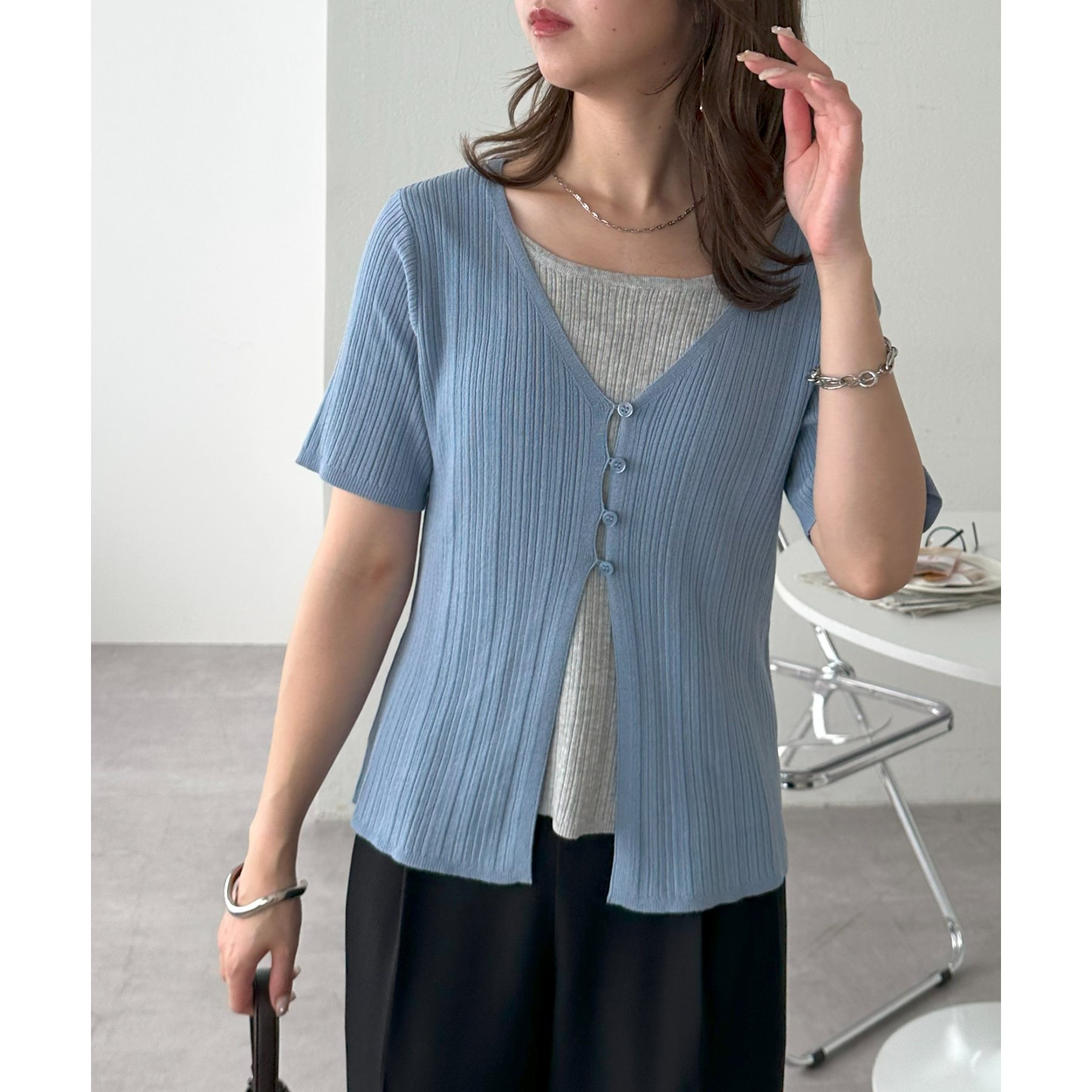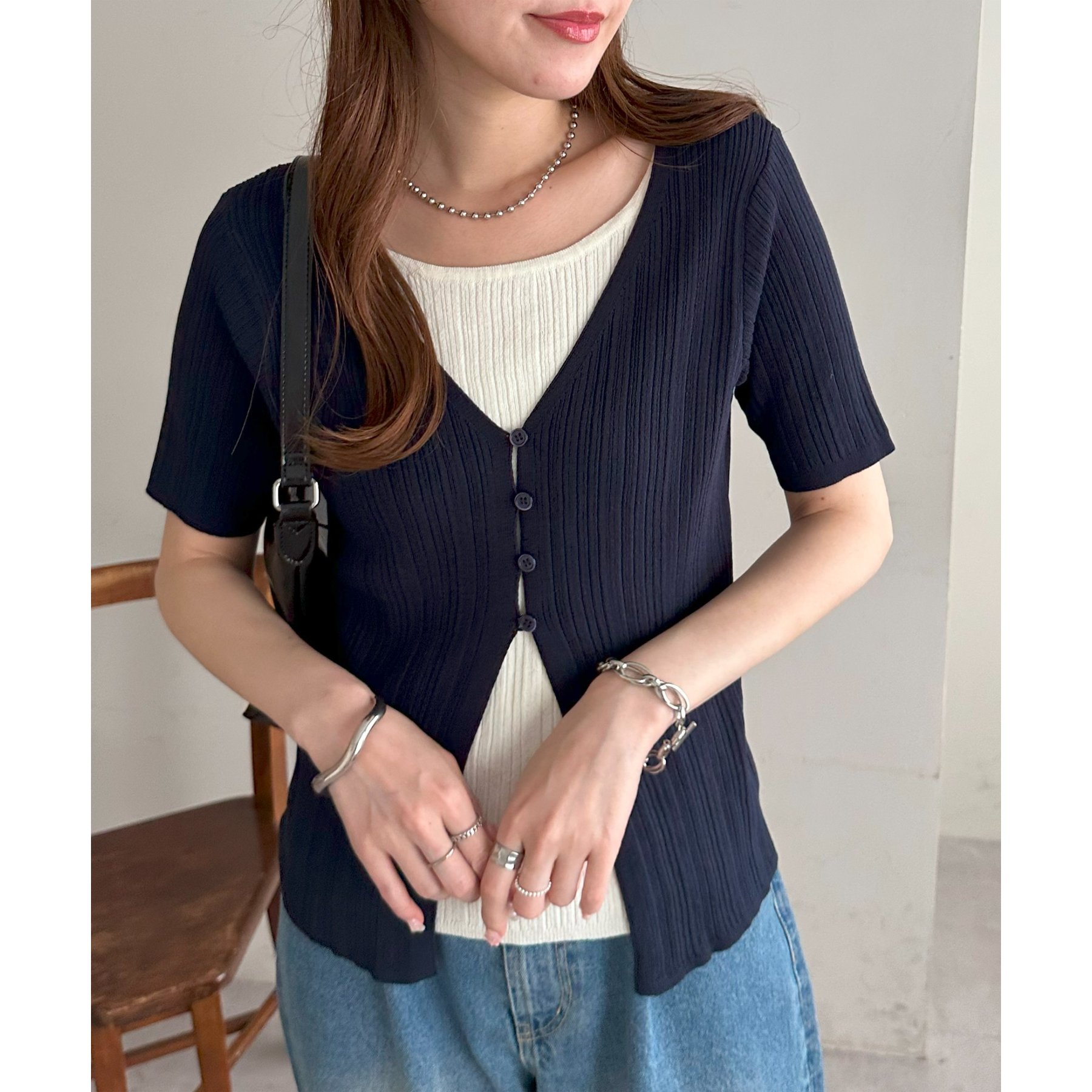 一枚でレイヤードスタイルが完成するアイテムなので、レイヤード初心者の方でも簡単にトレンド感を取り入れられます♪