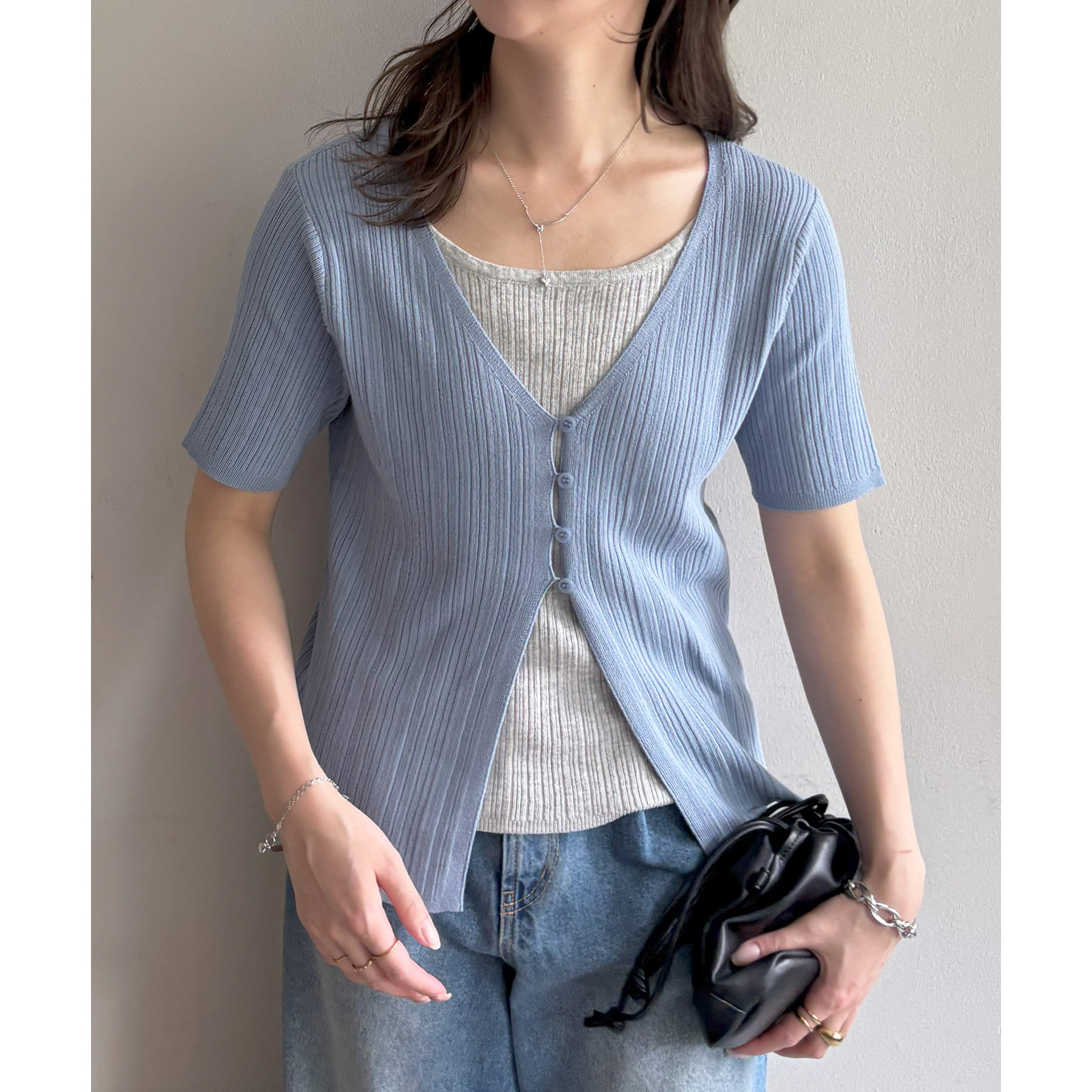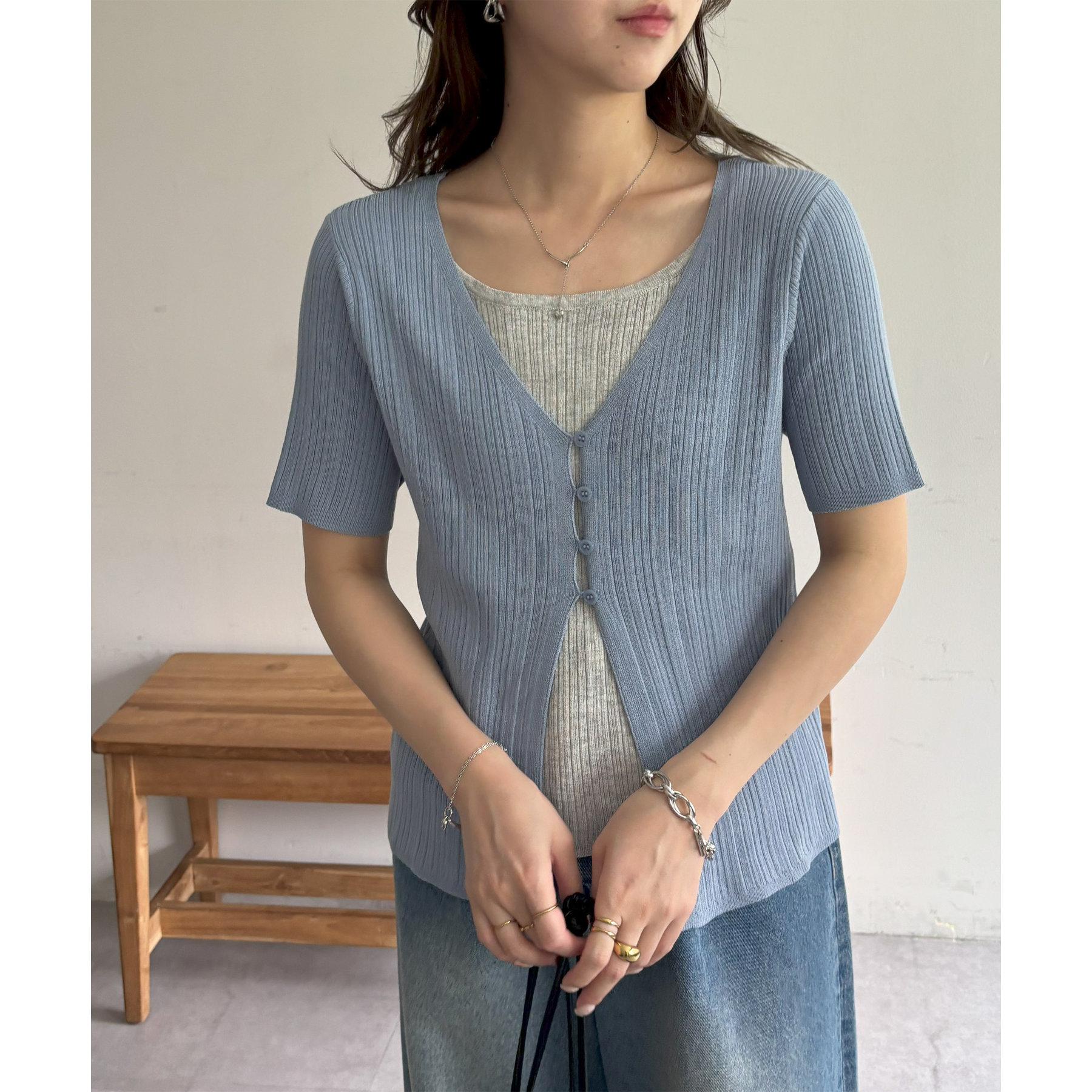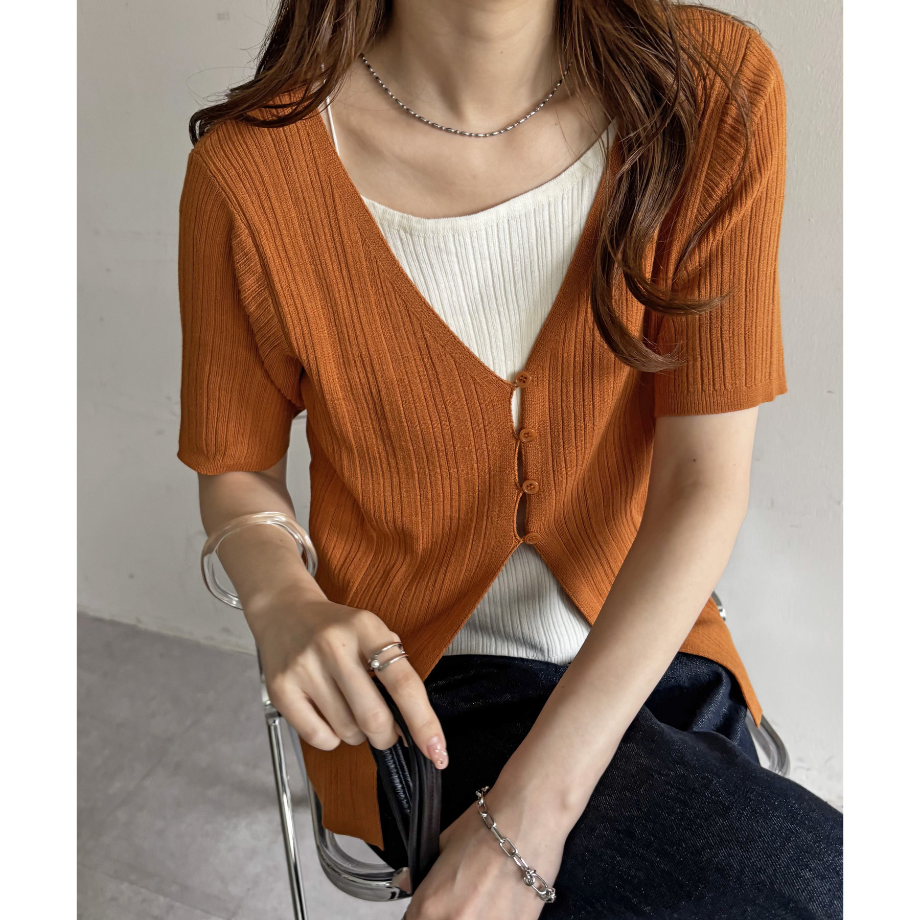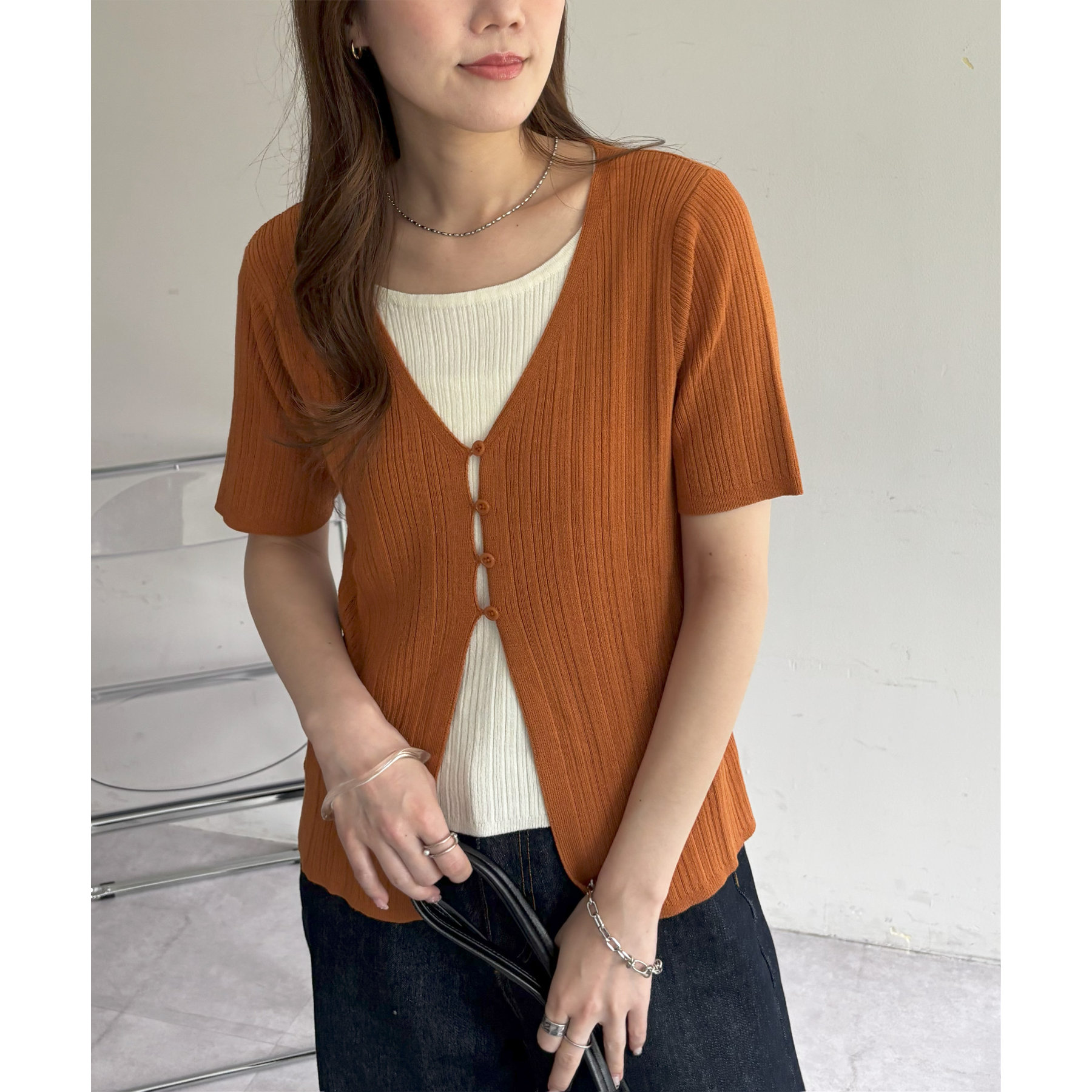 一枚でレイヤードスタイルが完成するアイテムなので、レイヤード初心者の方でも簡単にトレンド感を取り入れられます♪