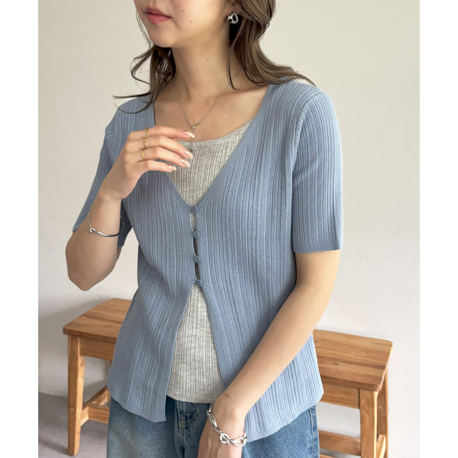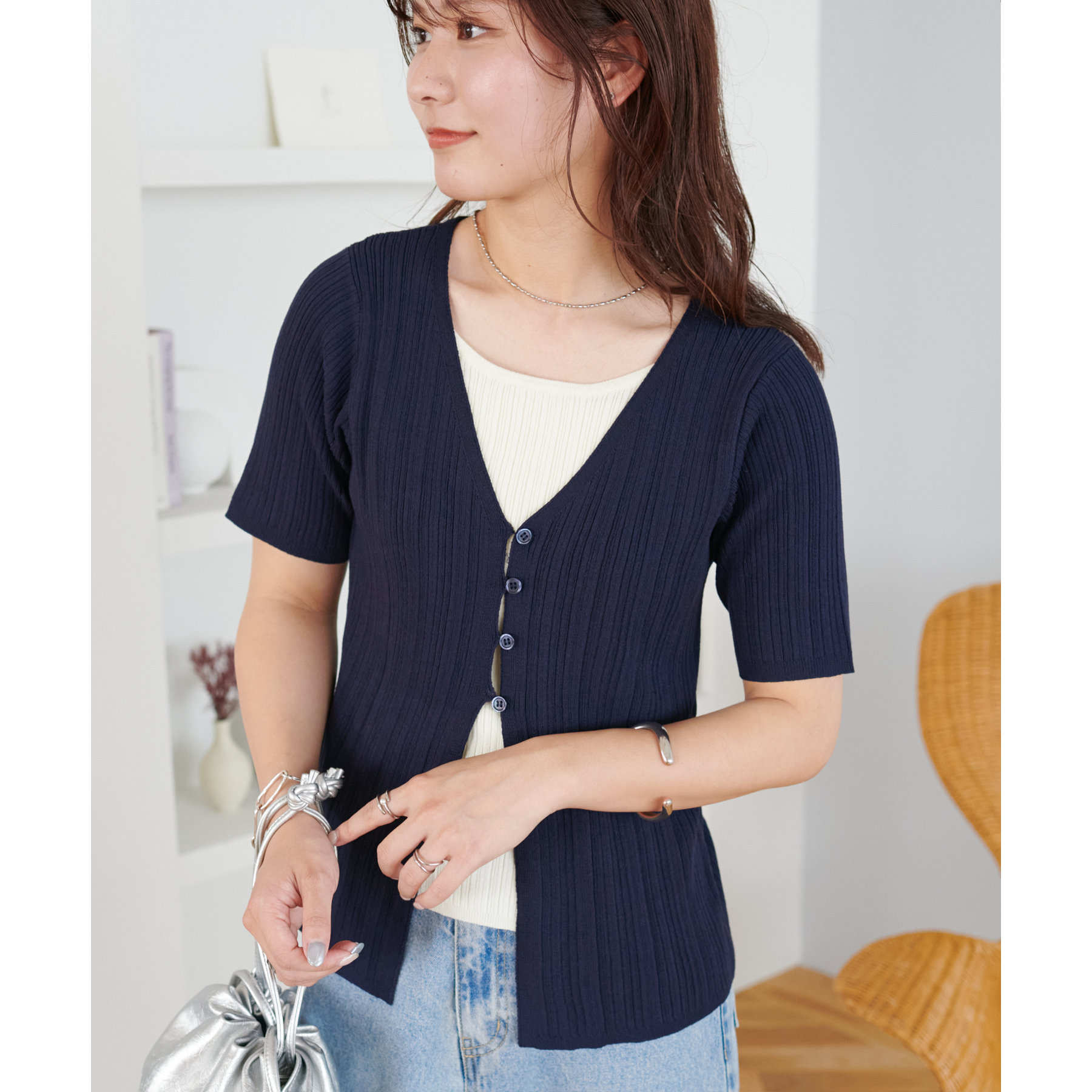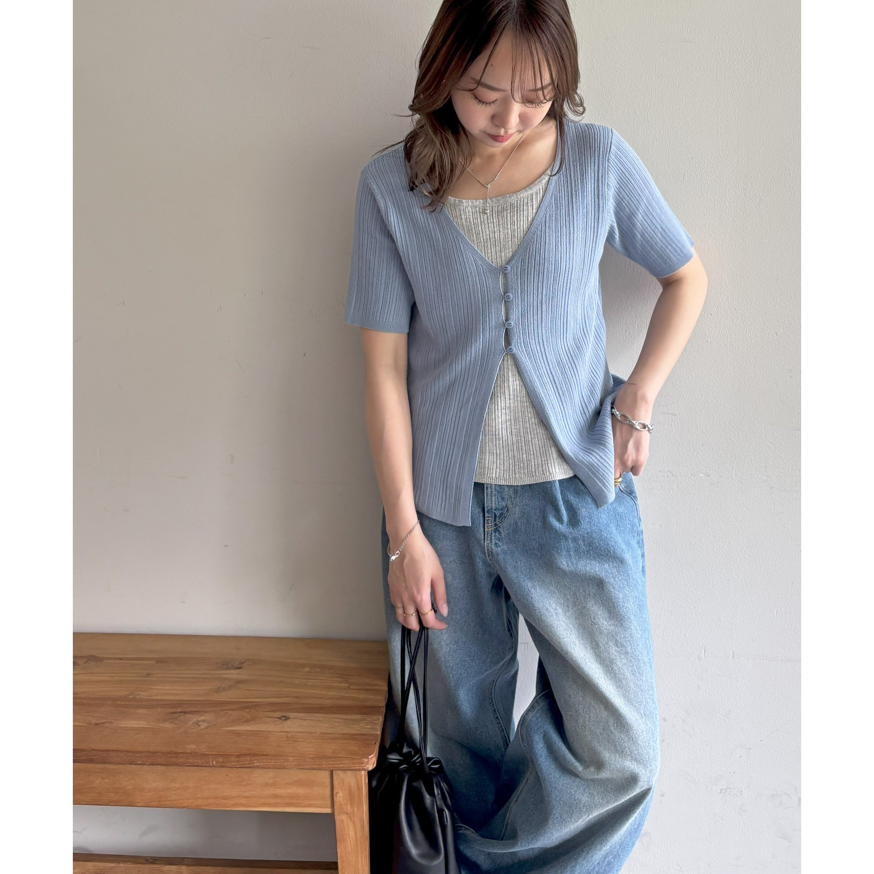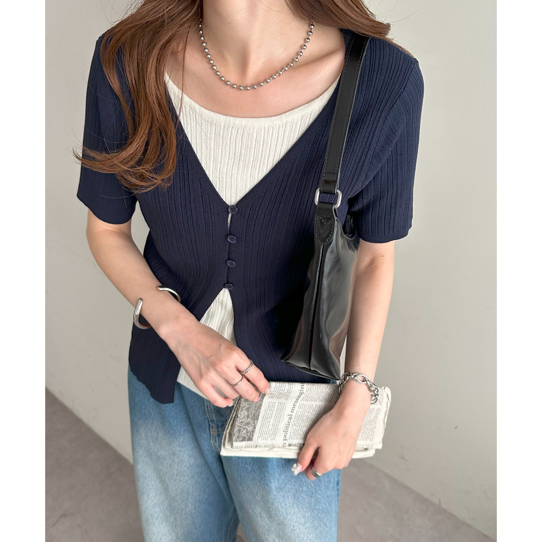 一枚でレイヤードスタイルが完成するアイテムなので、レイヤード初心者の方でも簡単にトレンド感を取り入れられます♪