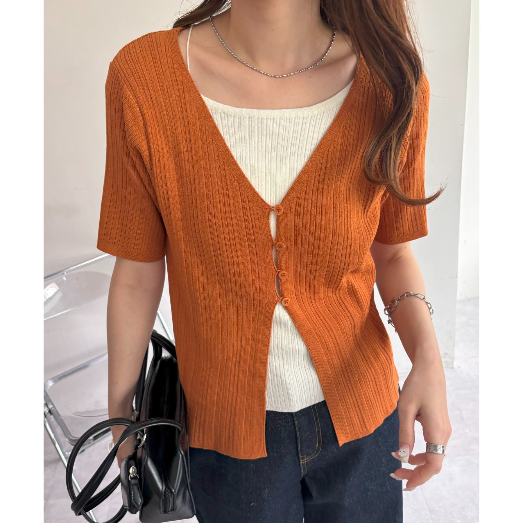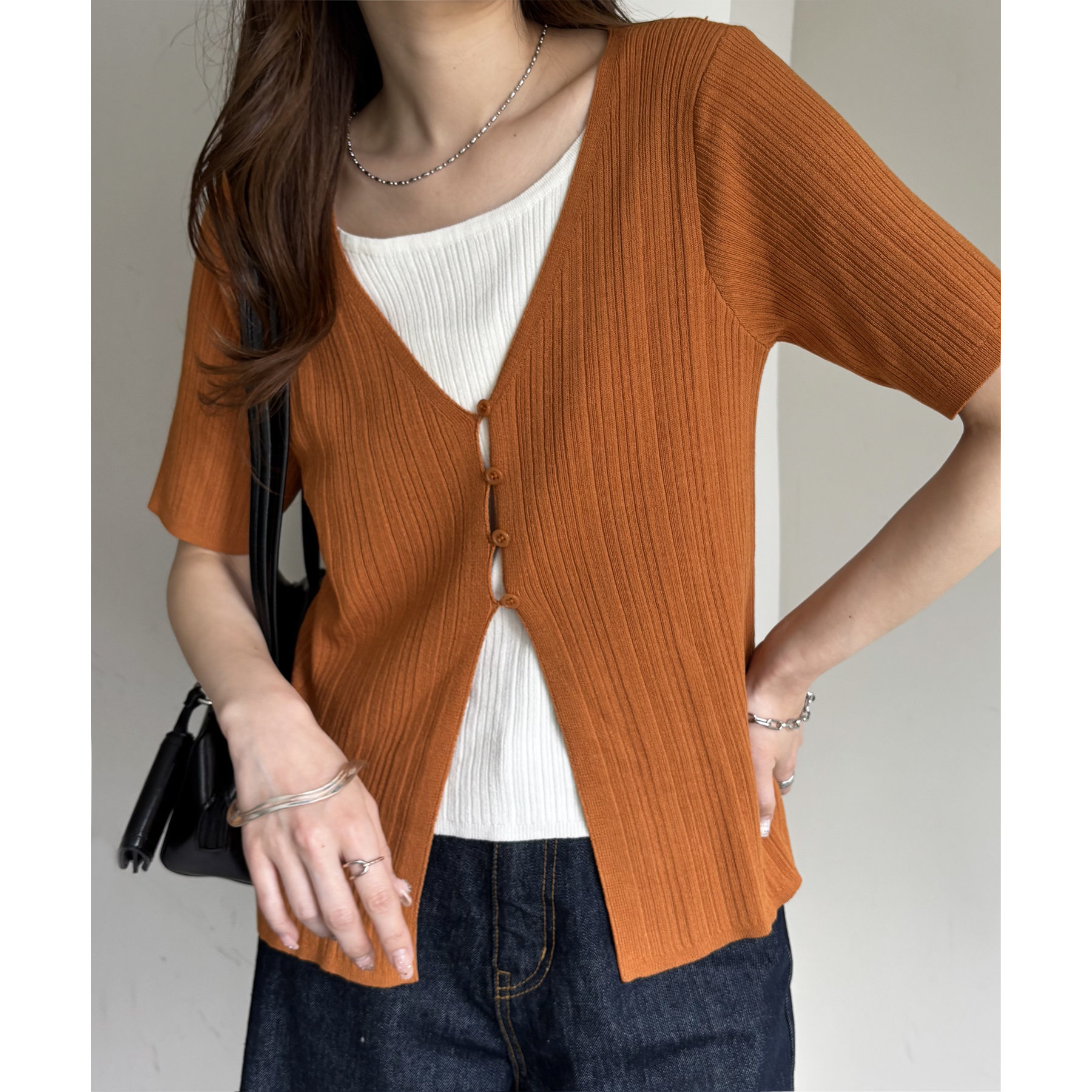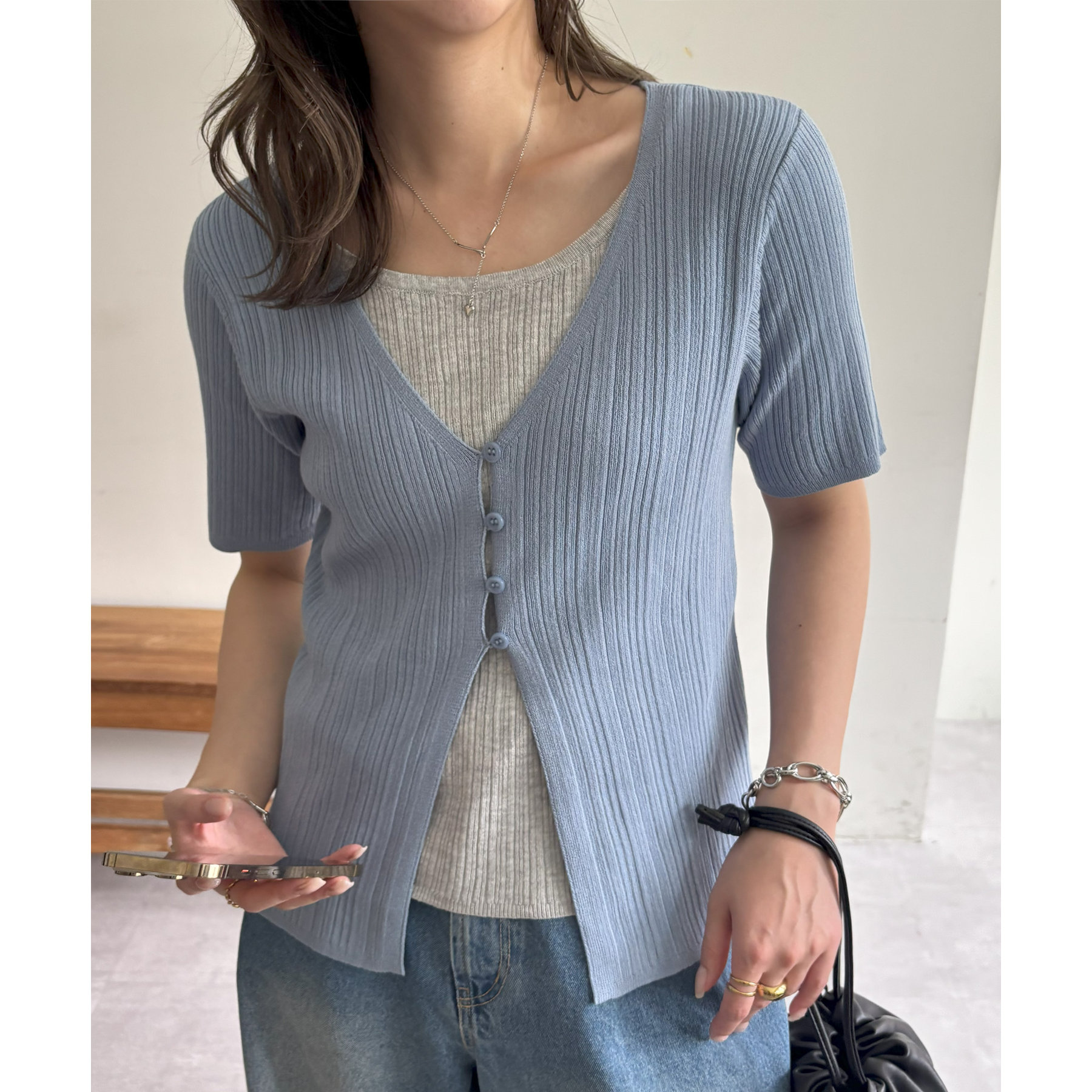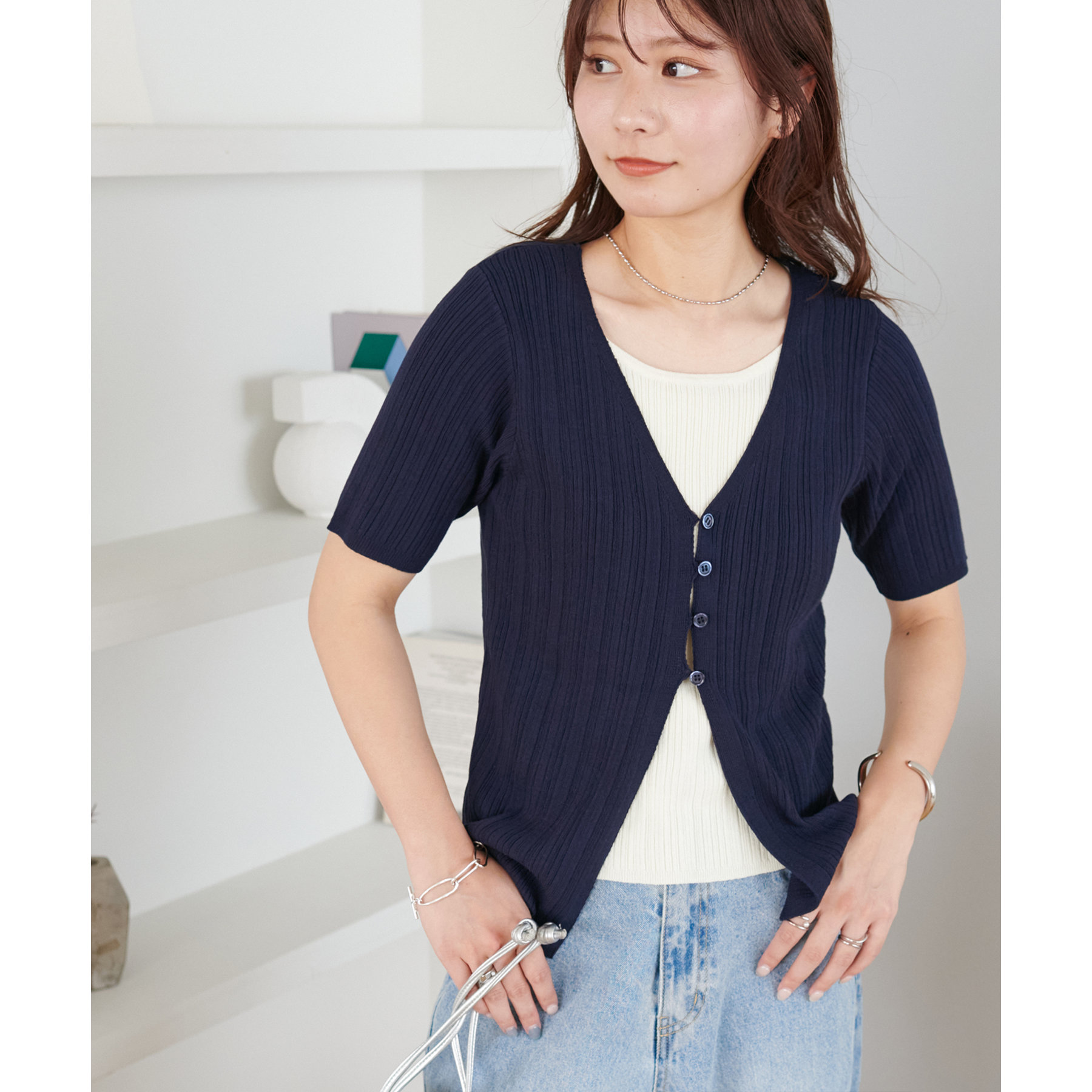 一枚でレイヤードスタイルが完成するアイテムなので、レイヤード初心者の方でも簡単にトレンド感を取り入れられます♪