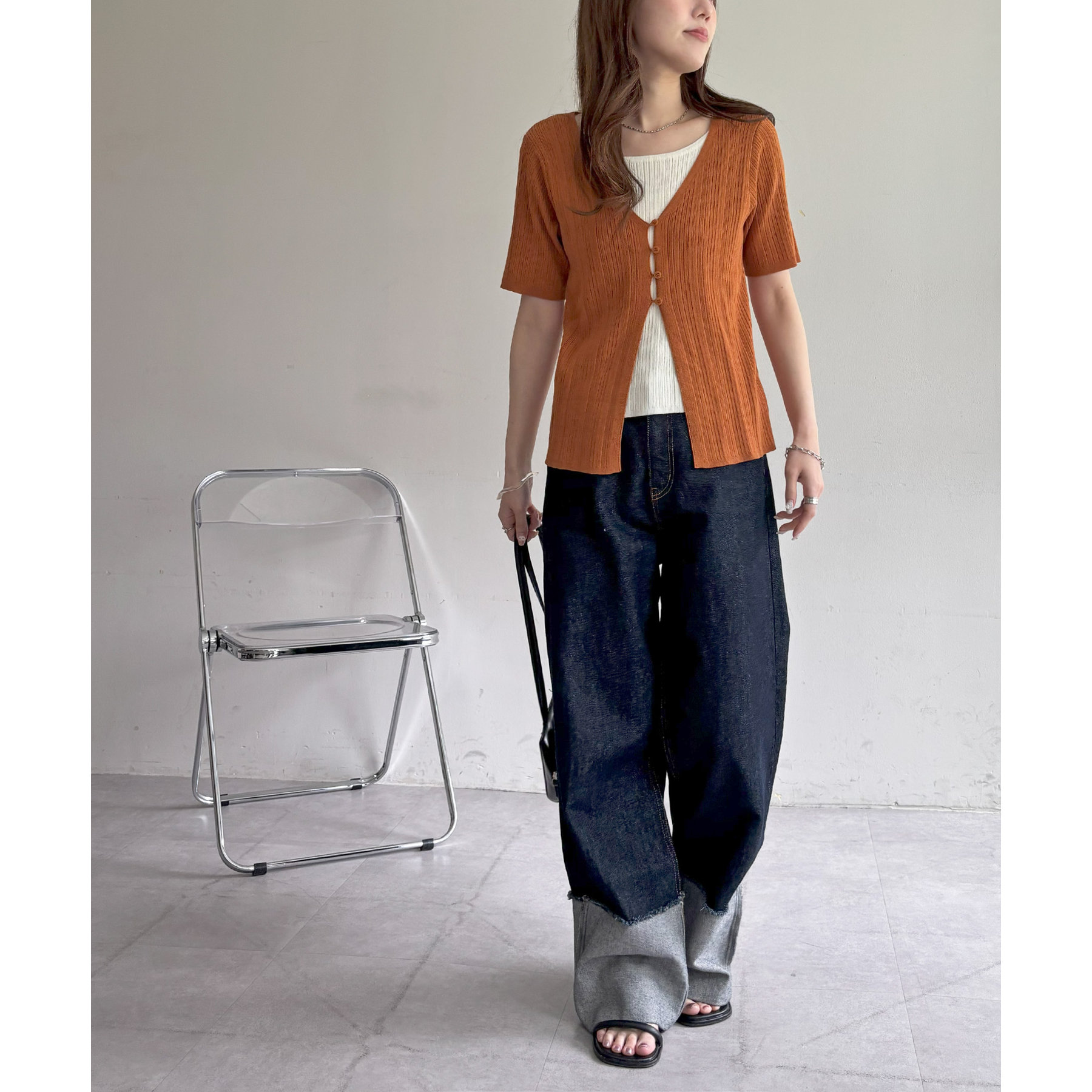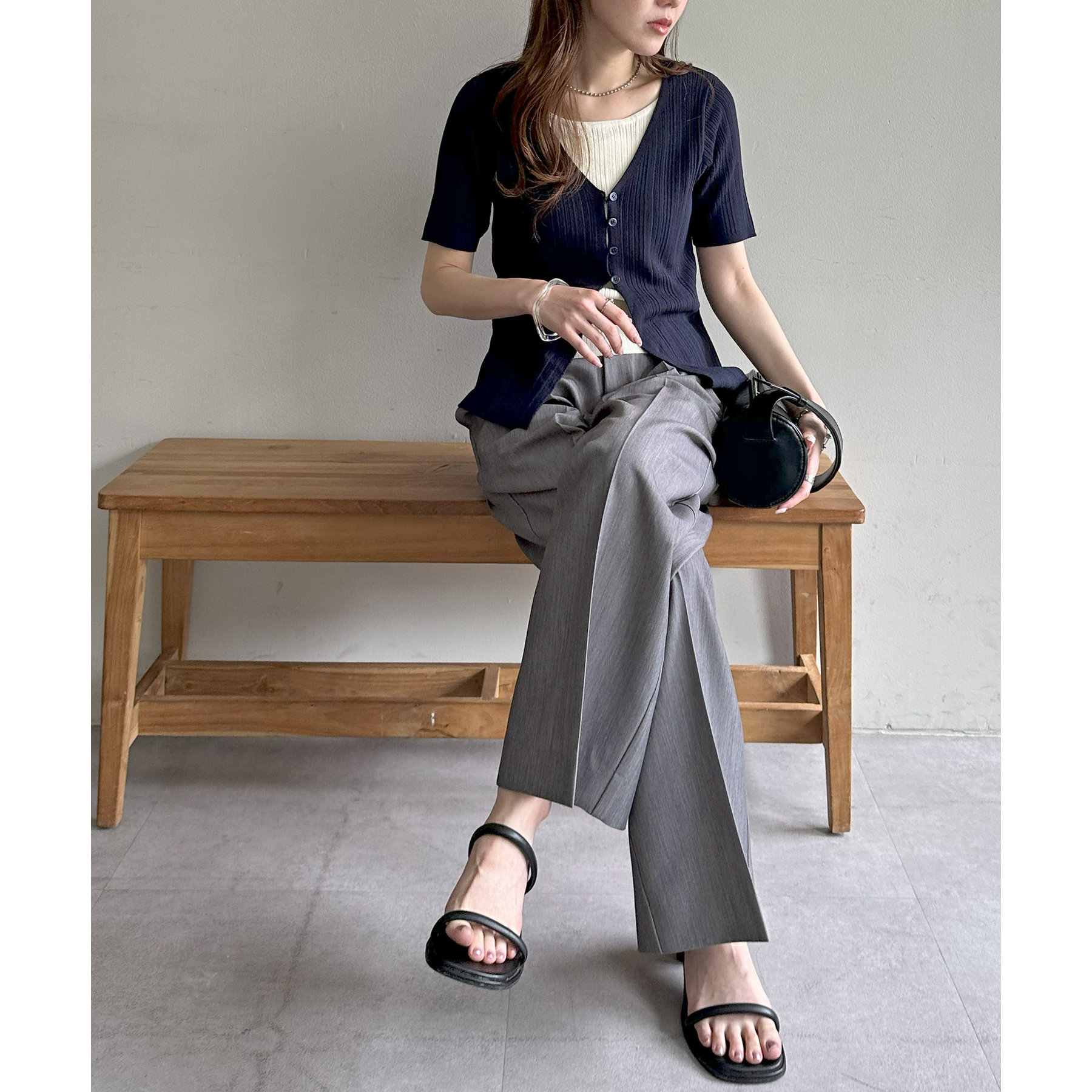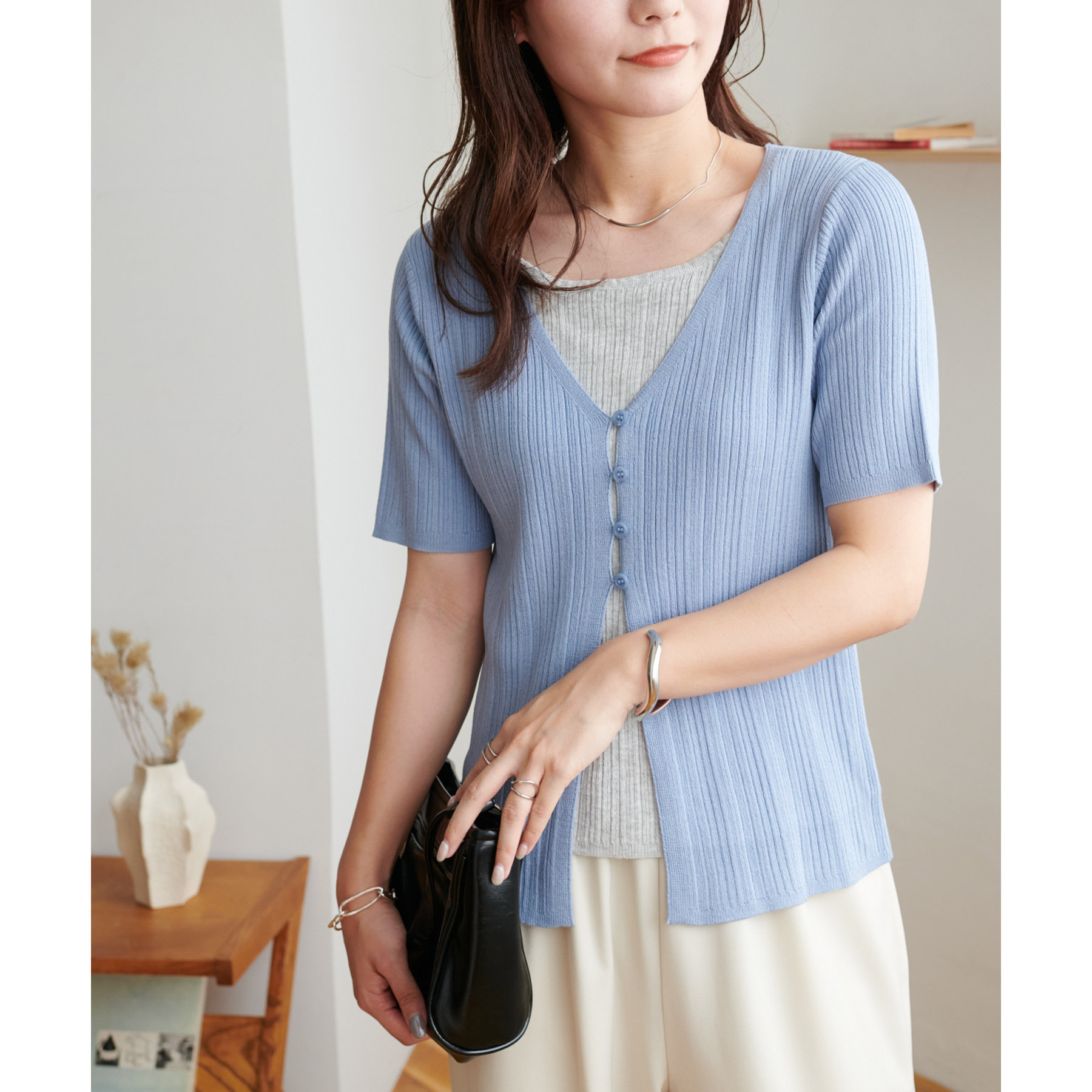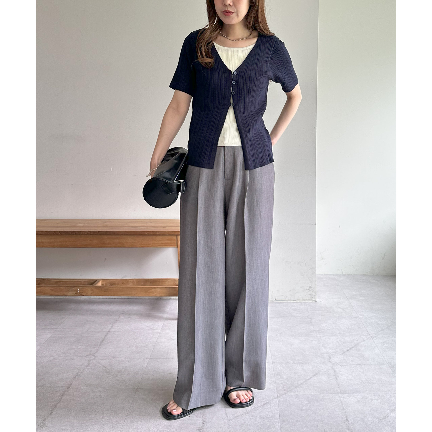 パンツにもスカートにも合わせやすい丈感とシルエットで、カジュアルにもきれいめにも対応できる万能アイテム。