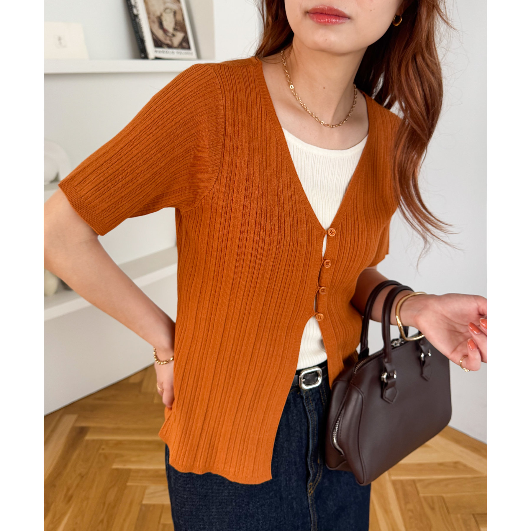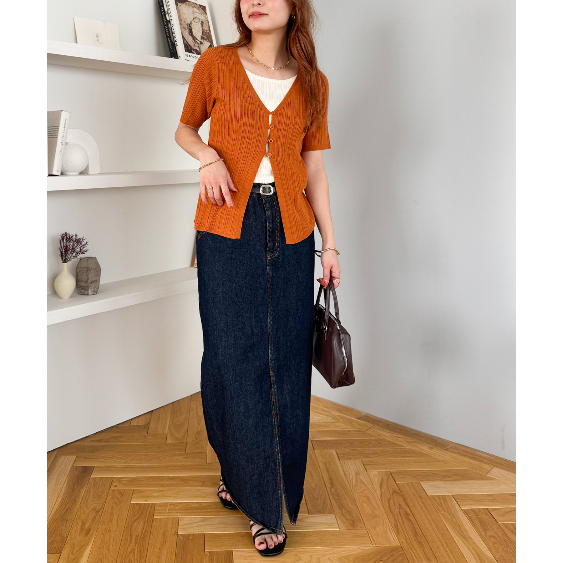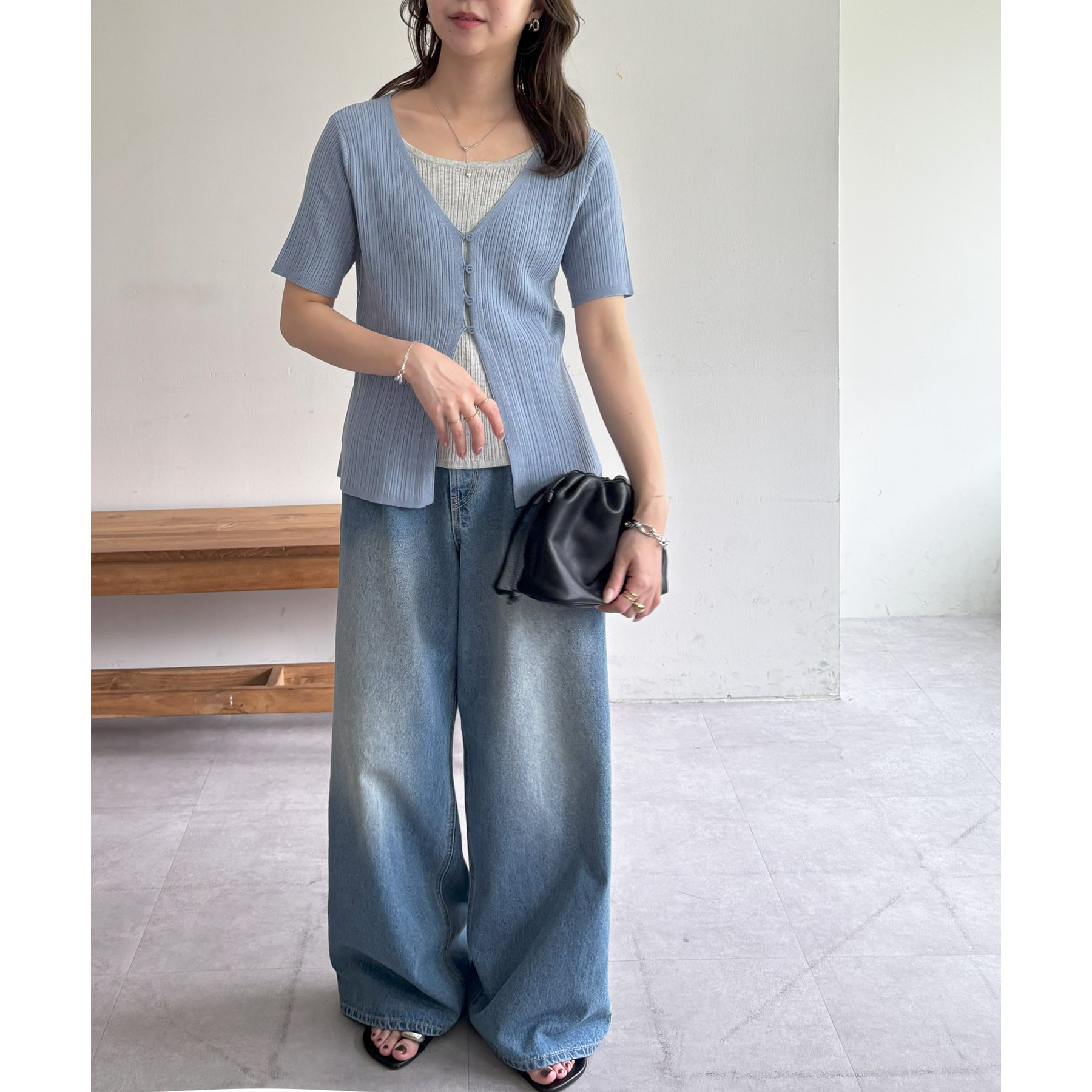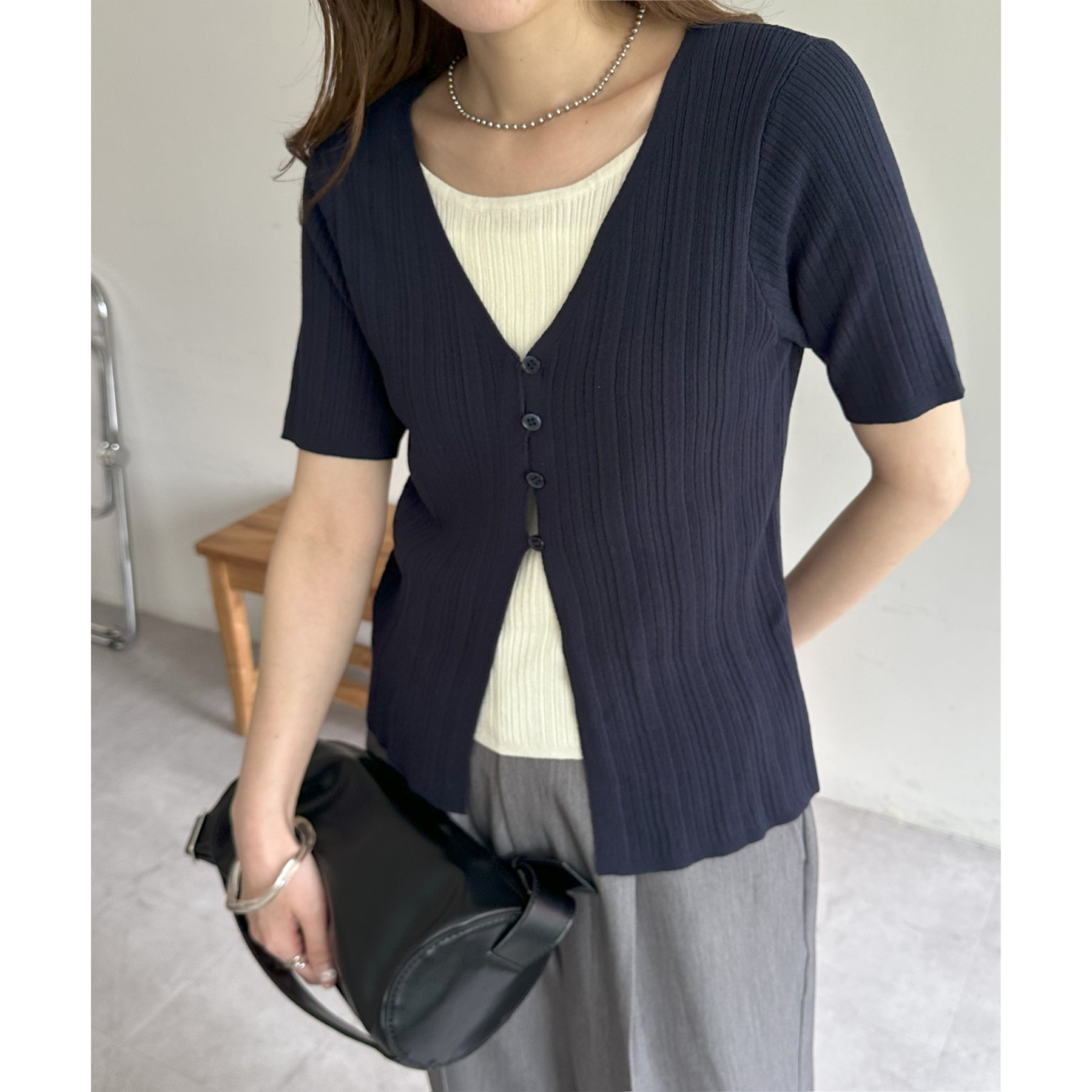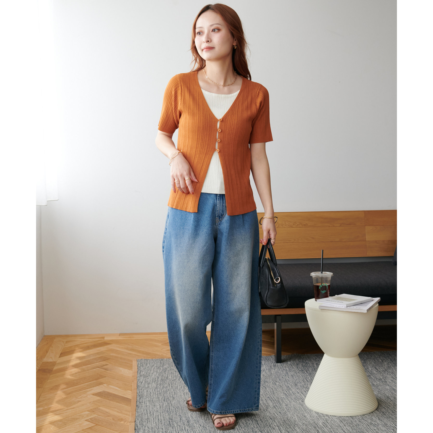 パンツにもスカートにも合わせやすい丈感とシルエットで、カジュアルにもきれいめにも対応できる万能アイテム。
