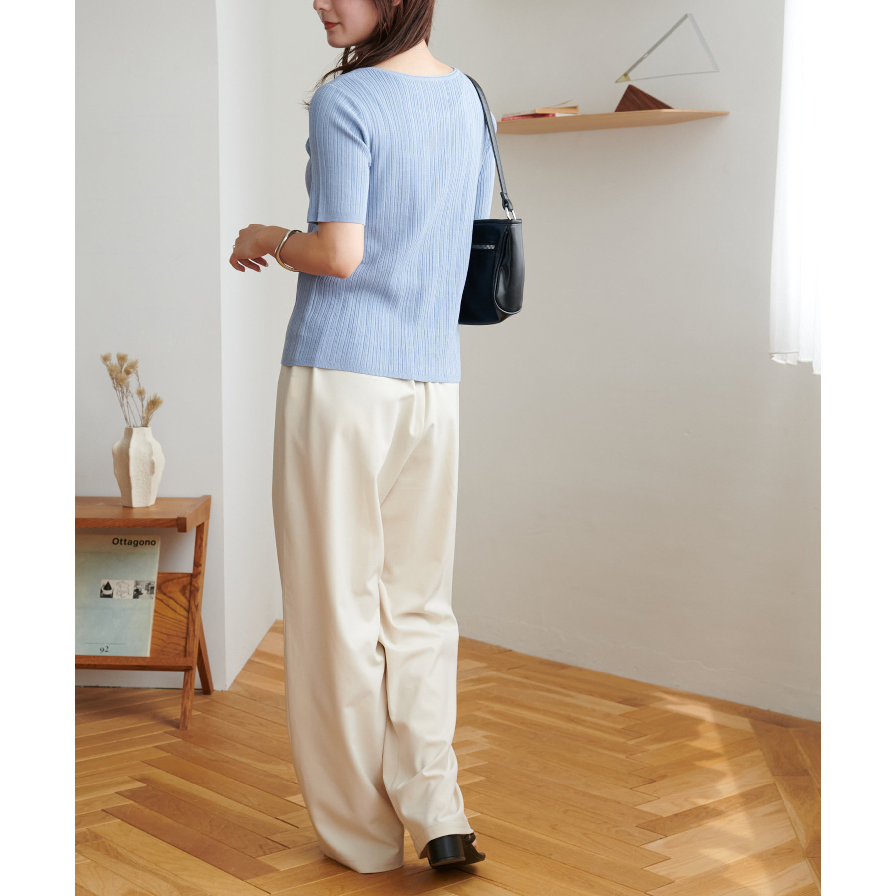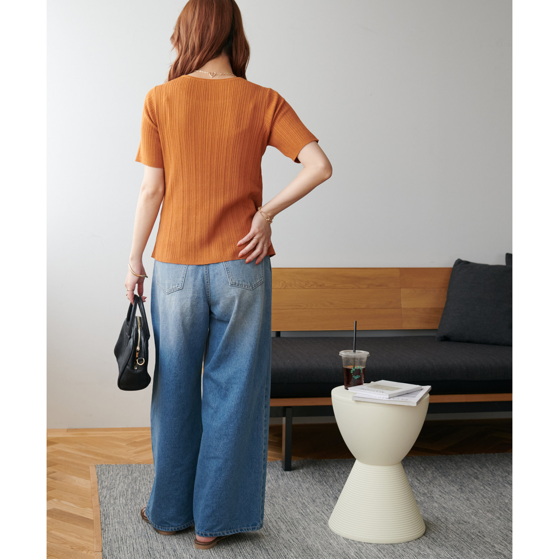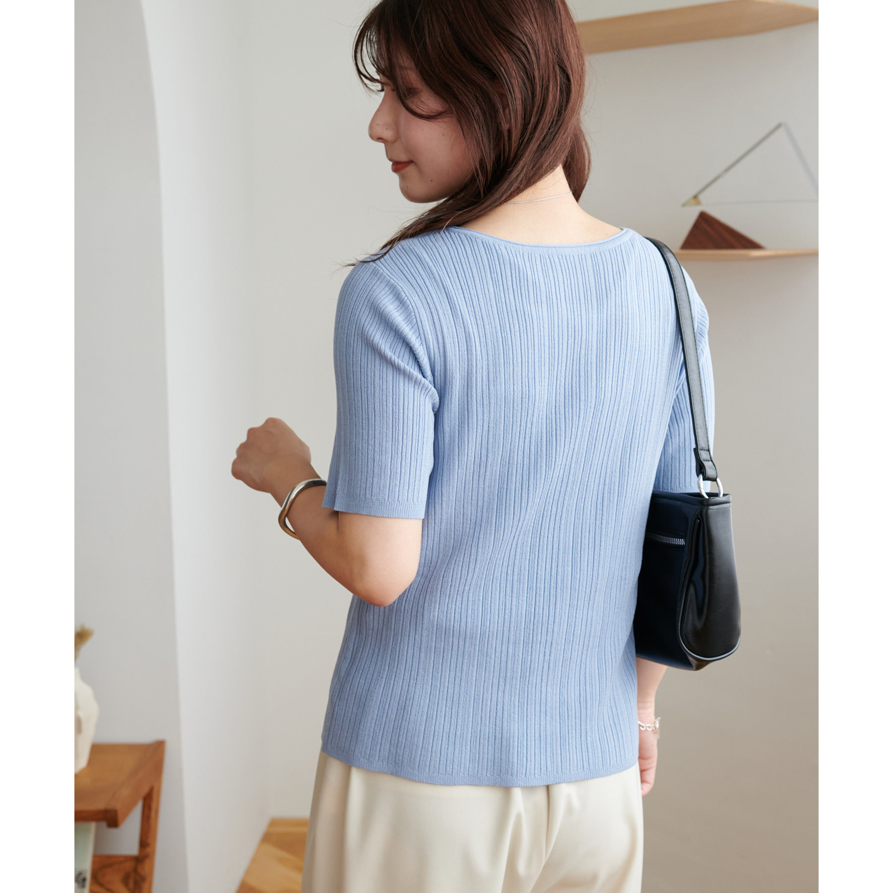 155cmスタッフ:リブのおかげで細見えしつつ、動きやすさもあります。一枚でコーデが完成して簡単におしゃれ見えが叶うアイテムです☆