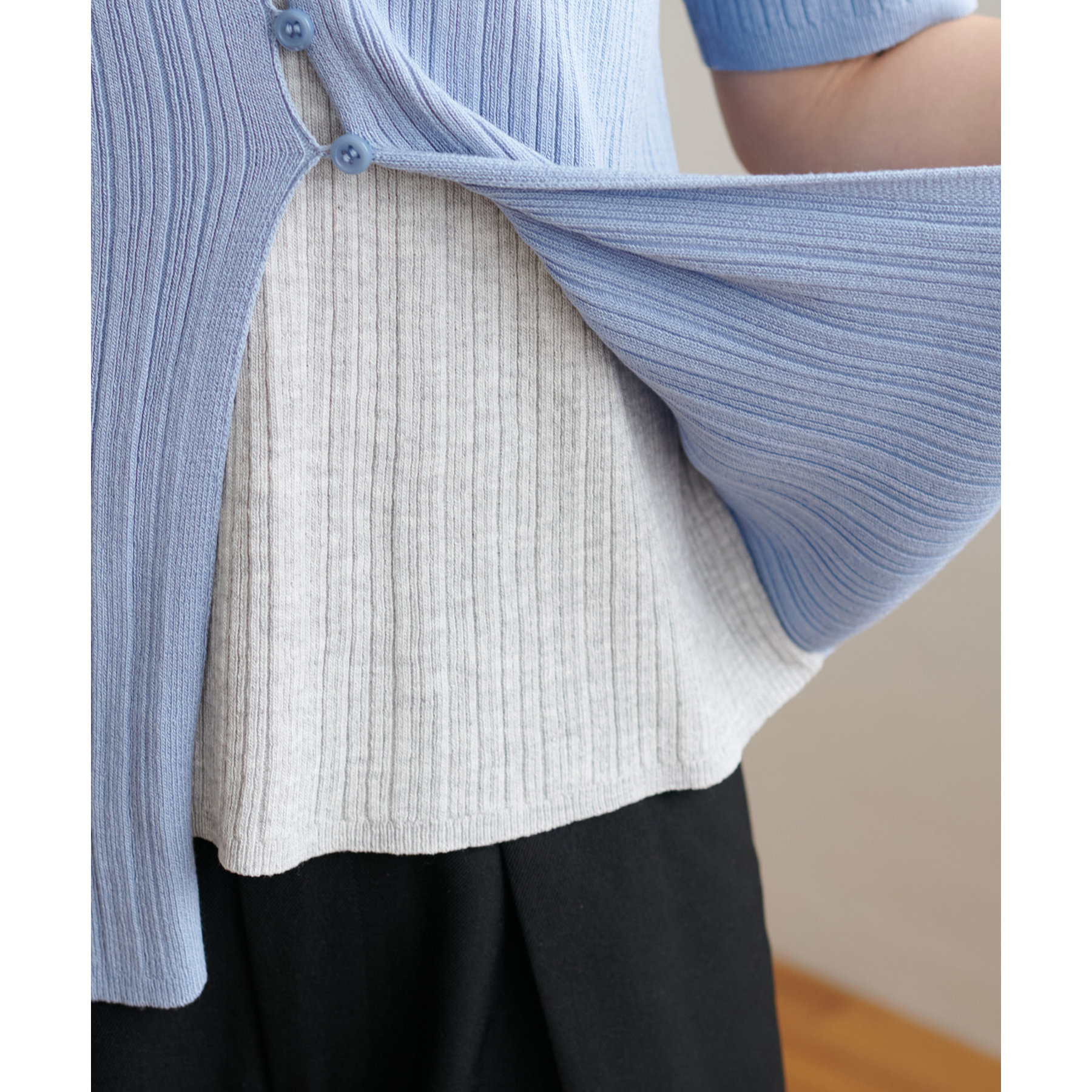 リブレイヤード風半袖プルオーバー