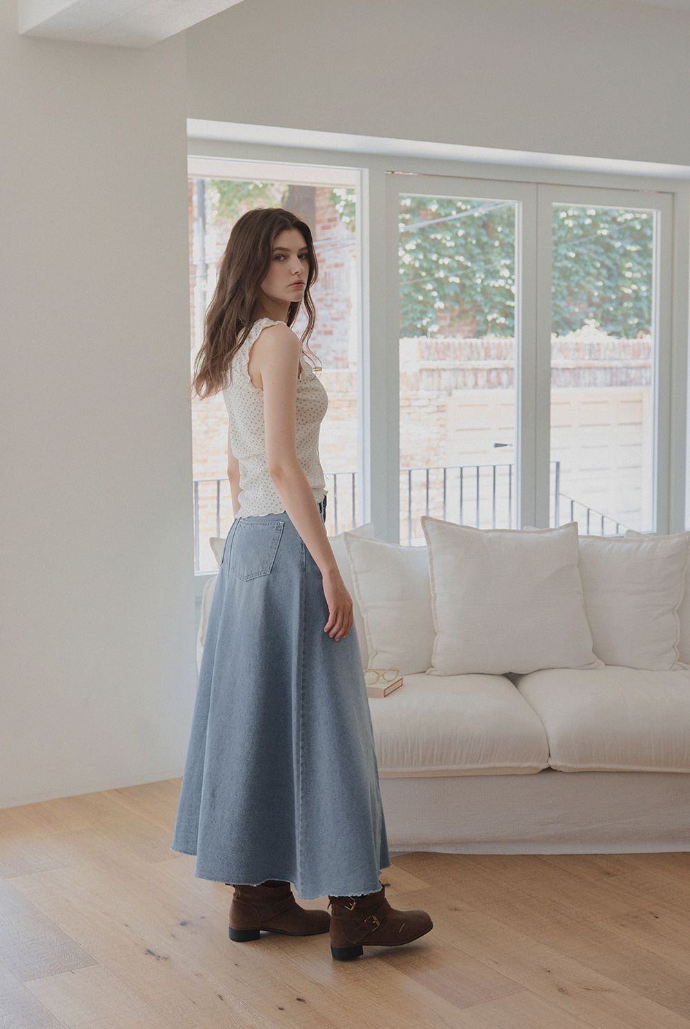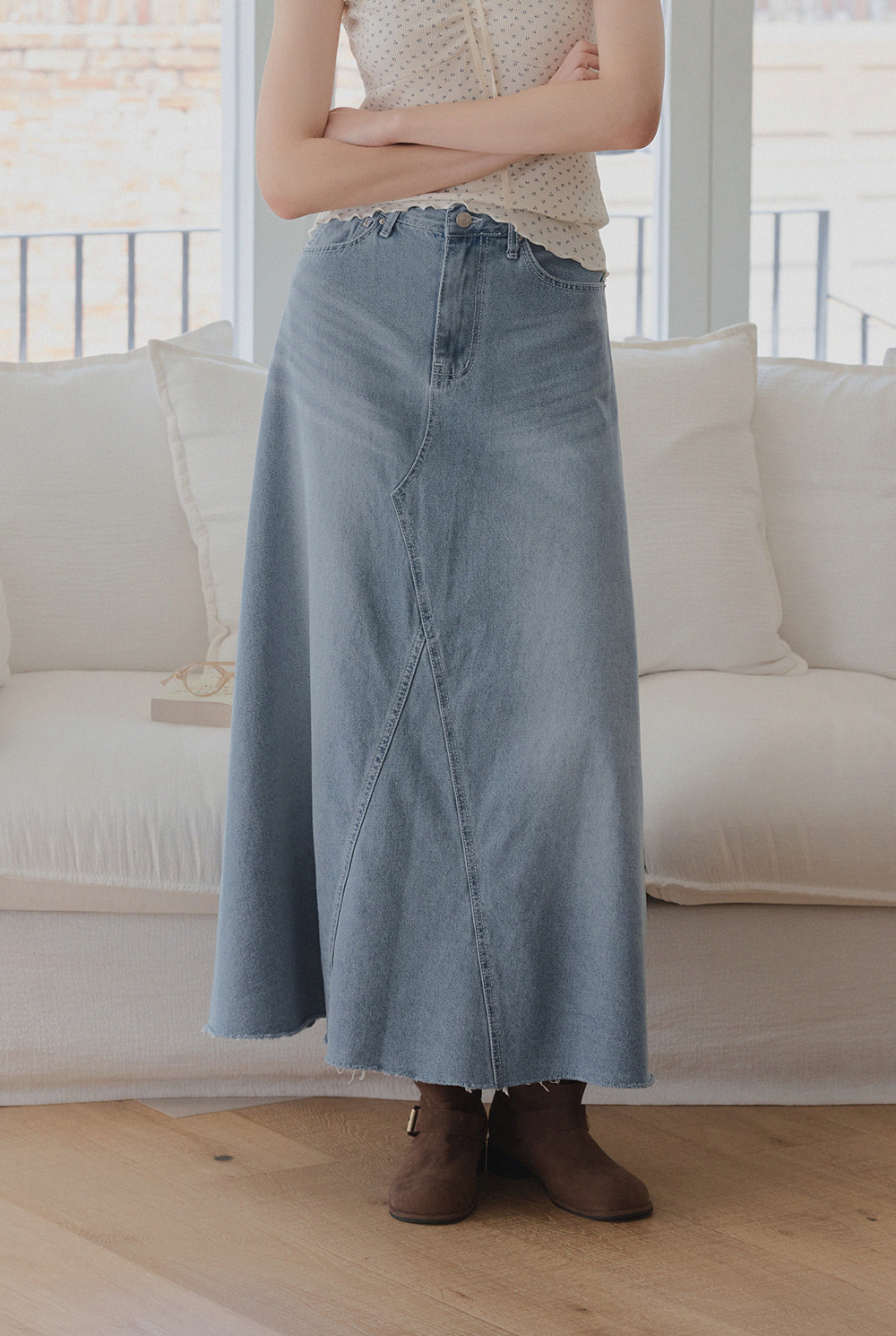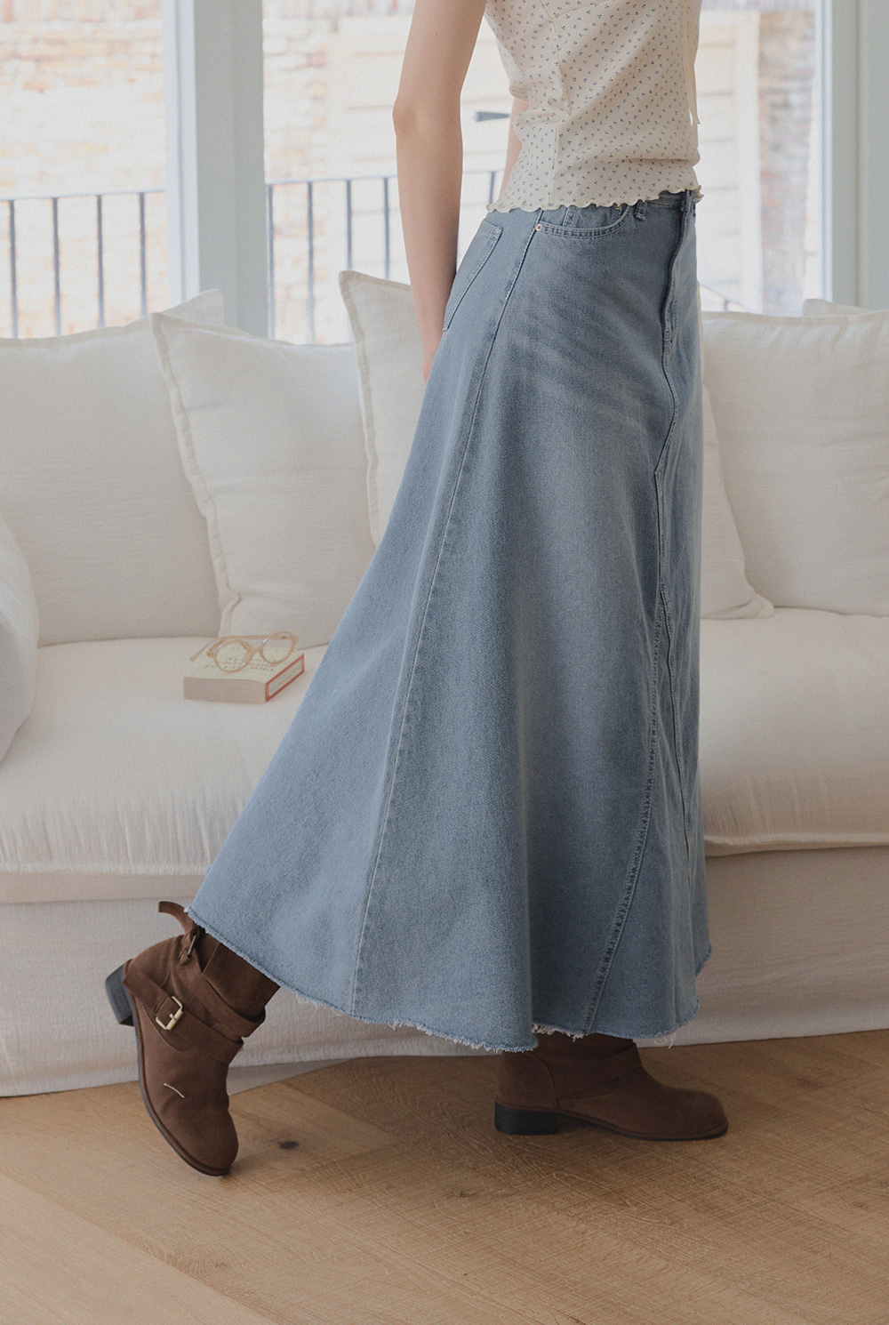 Leti Flare Denim Long Skirt