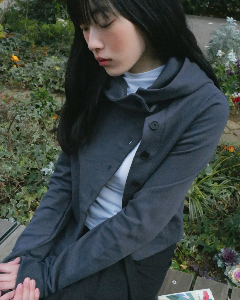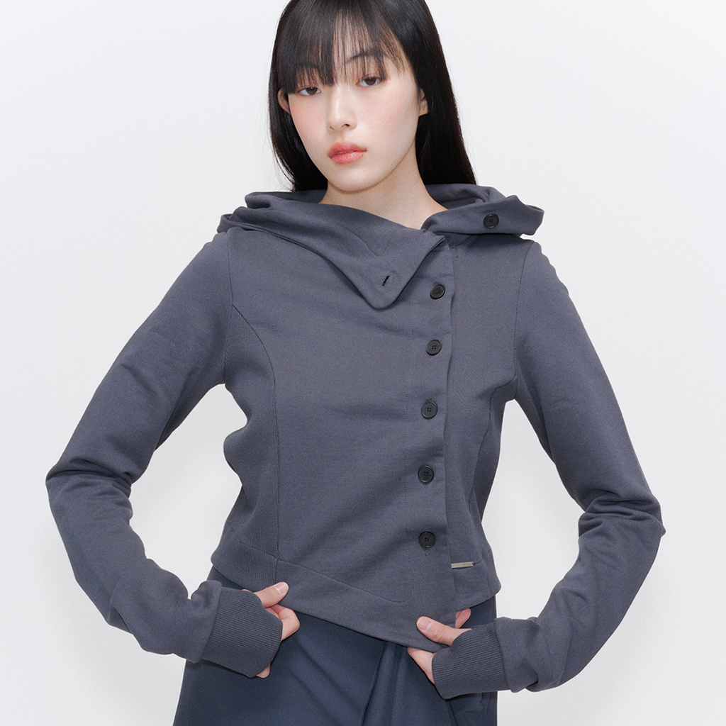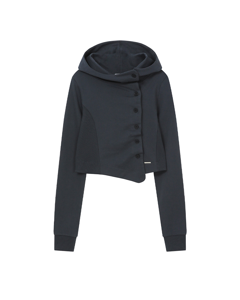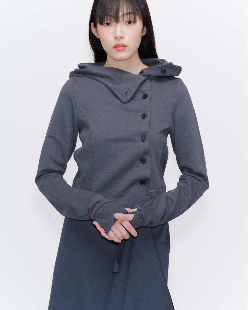 Cowl neck botton hoodie CHARCOAL