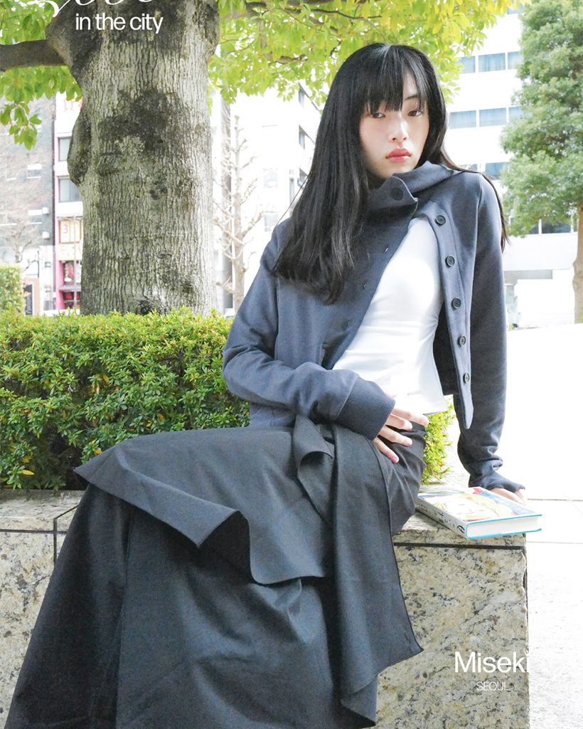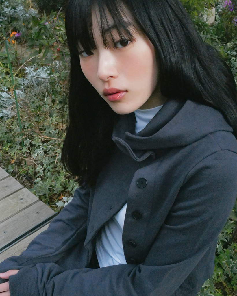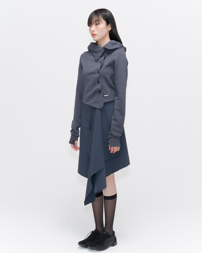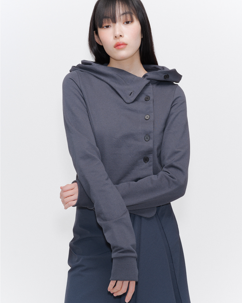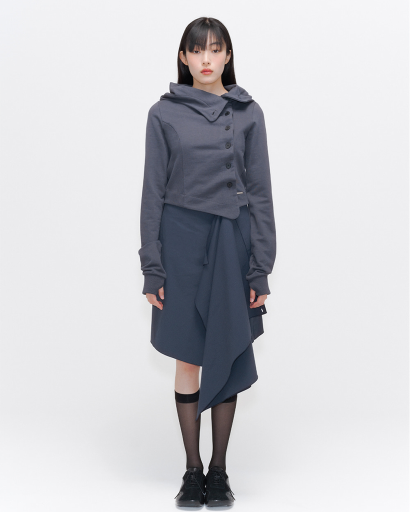 Cowl neck botton hoodie CHARCOAL