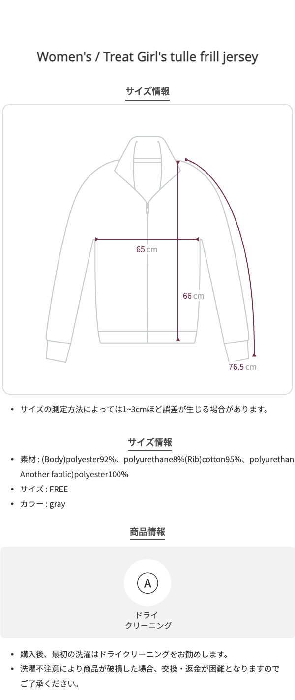 ラフに着用できるシルエットのトラックジャケットにチュールで甘さをプラスしたTreat Ürselfならではのカジュアル×ガーリーなジャージアイテムが登場。