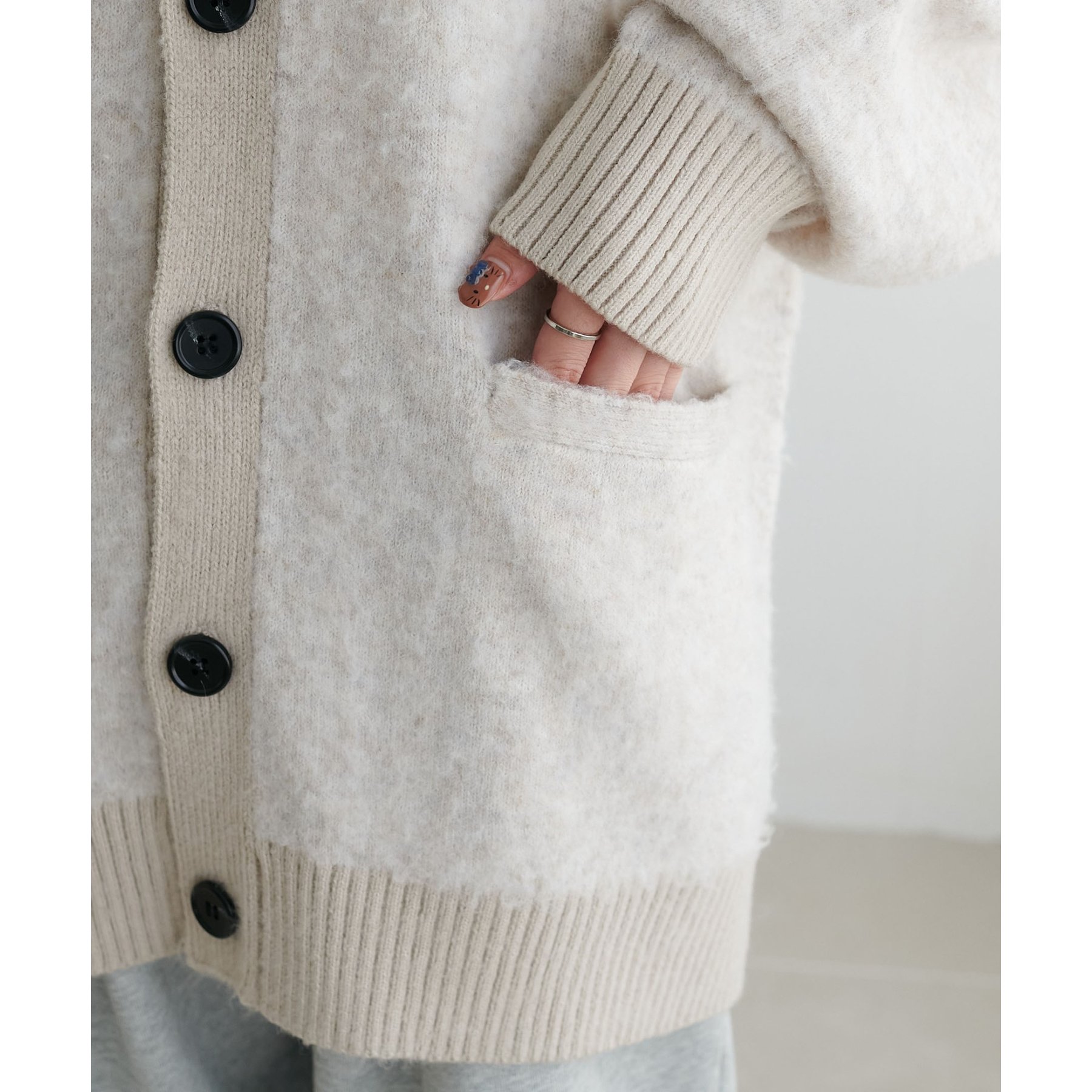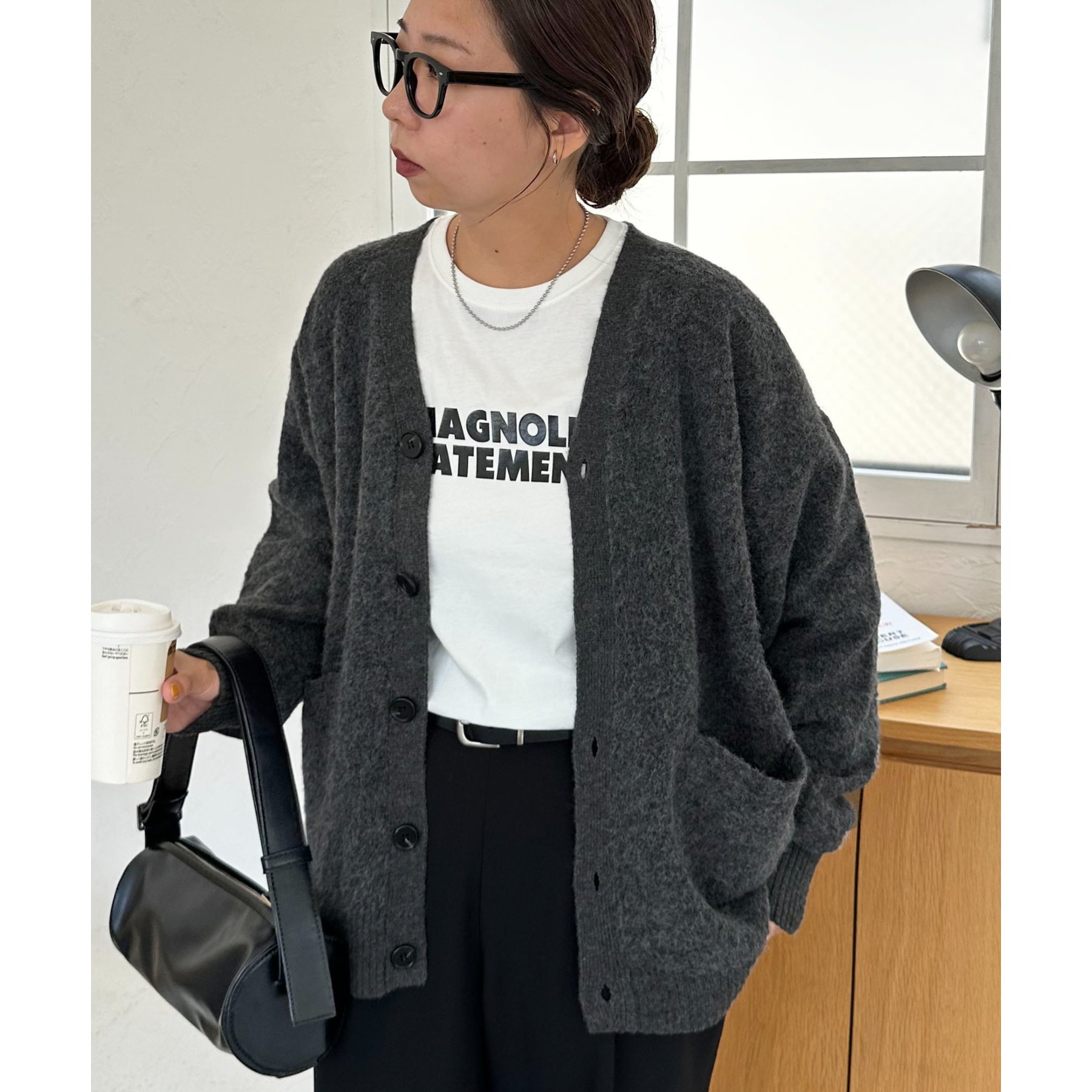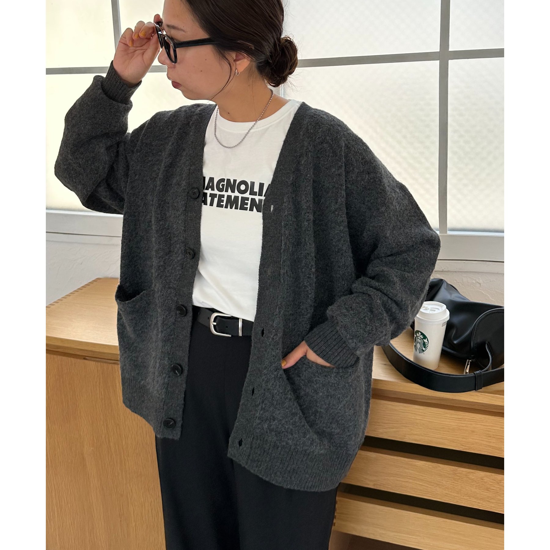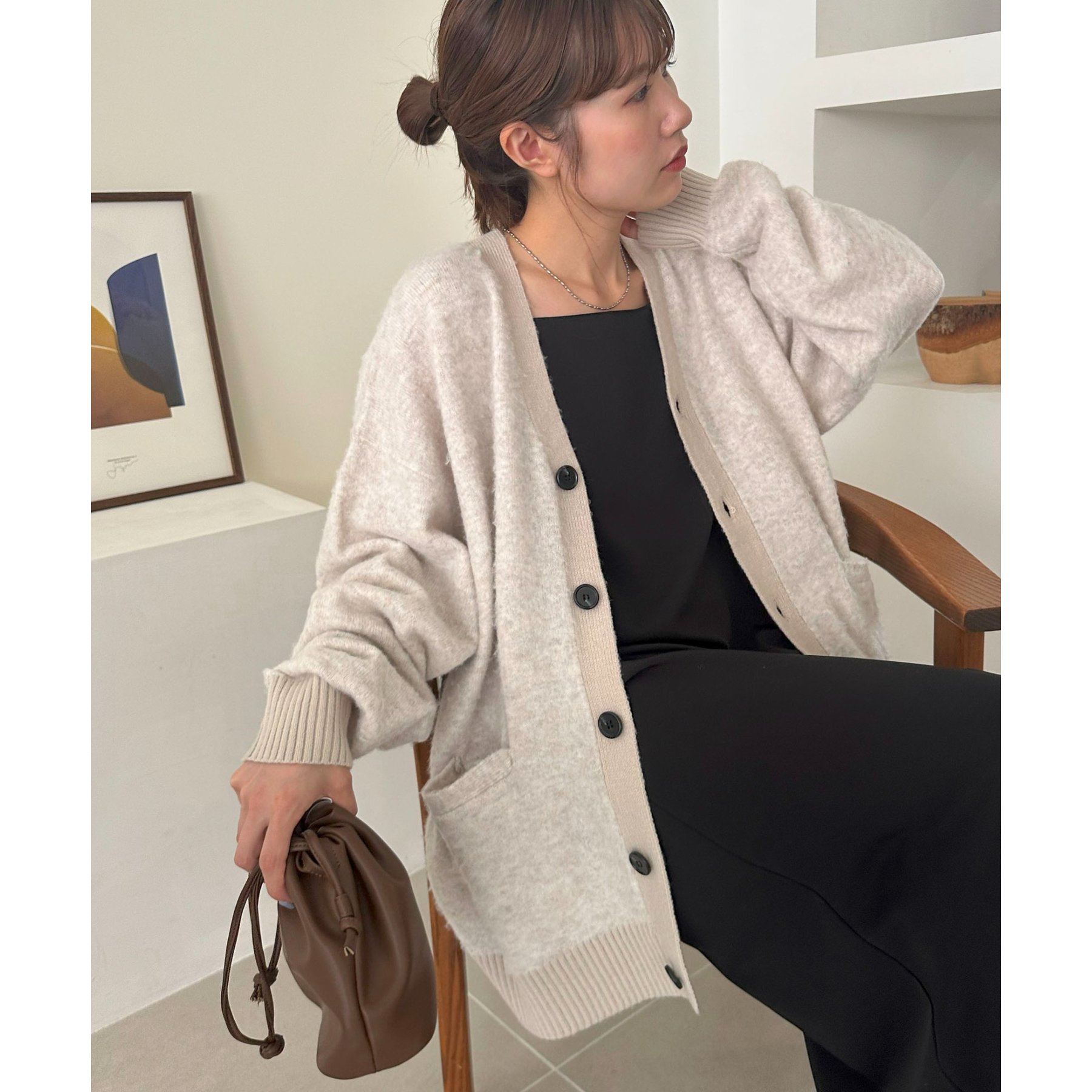 ふわっとした柔らかな風合いが魅力のニットカーディガン。