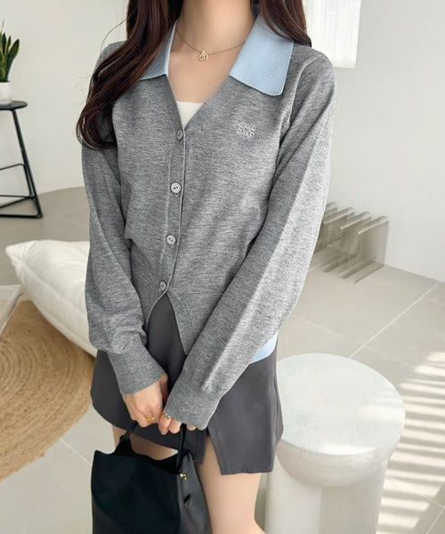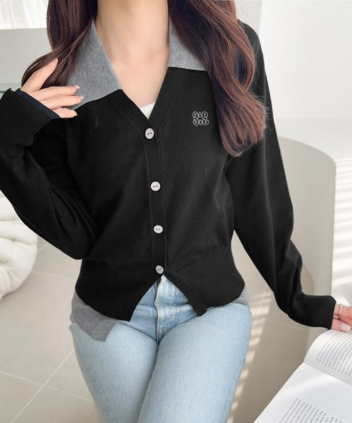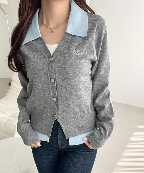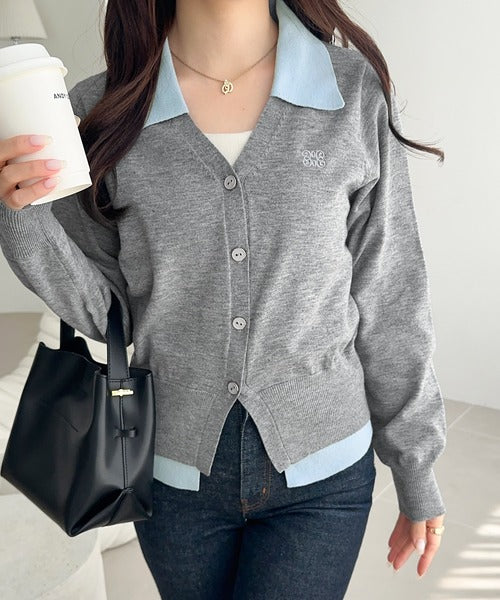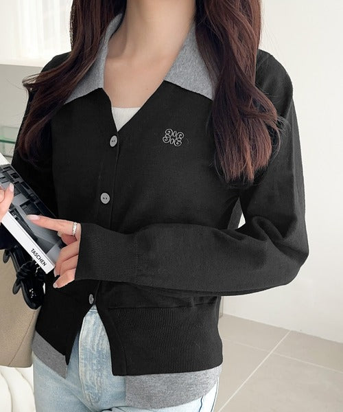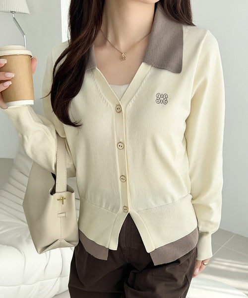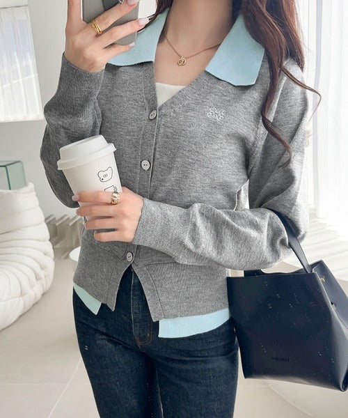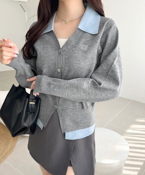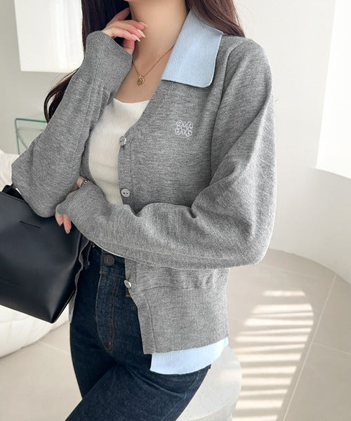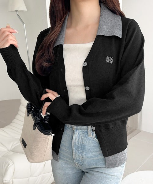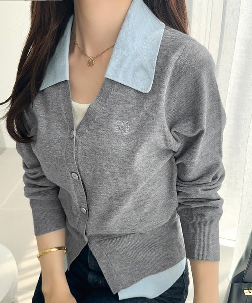 【mily bilet】着るだけ完成、コーデ迷子にさよなら♪胸刺繍ダブルカラーレイヤードニットカーディガン(長袖) mi1359021