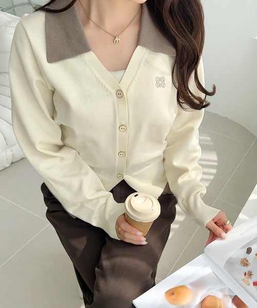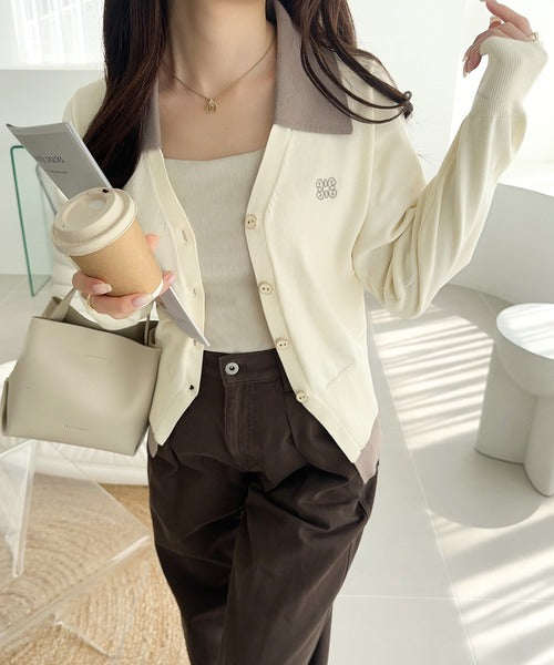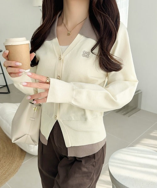 配色カラーが可愛いニットカーディガン♪