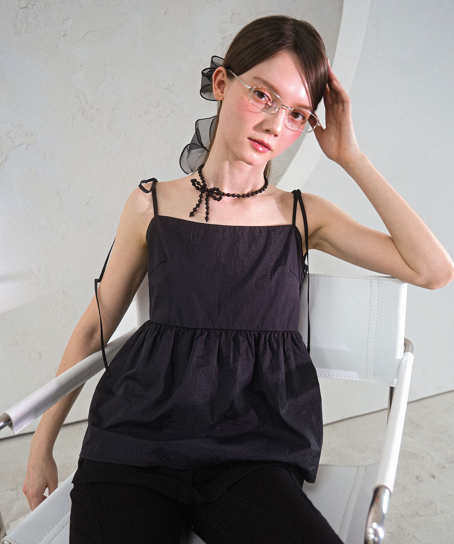 Ribbon Strap Prill Sleeveless BLACK